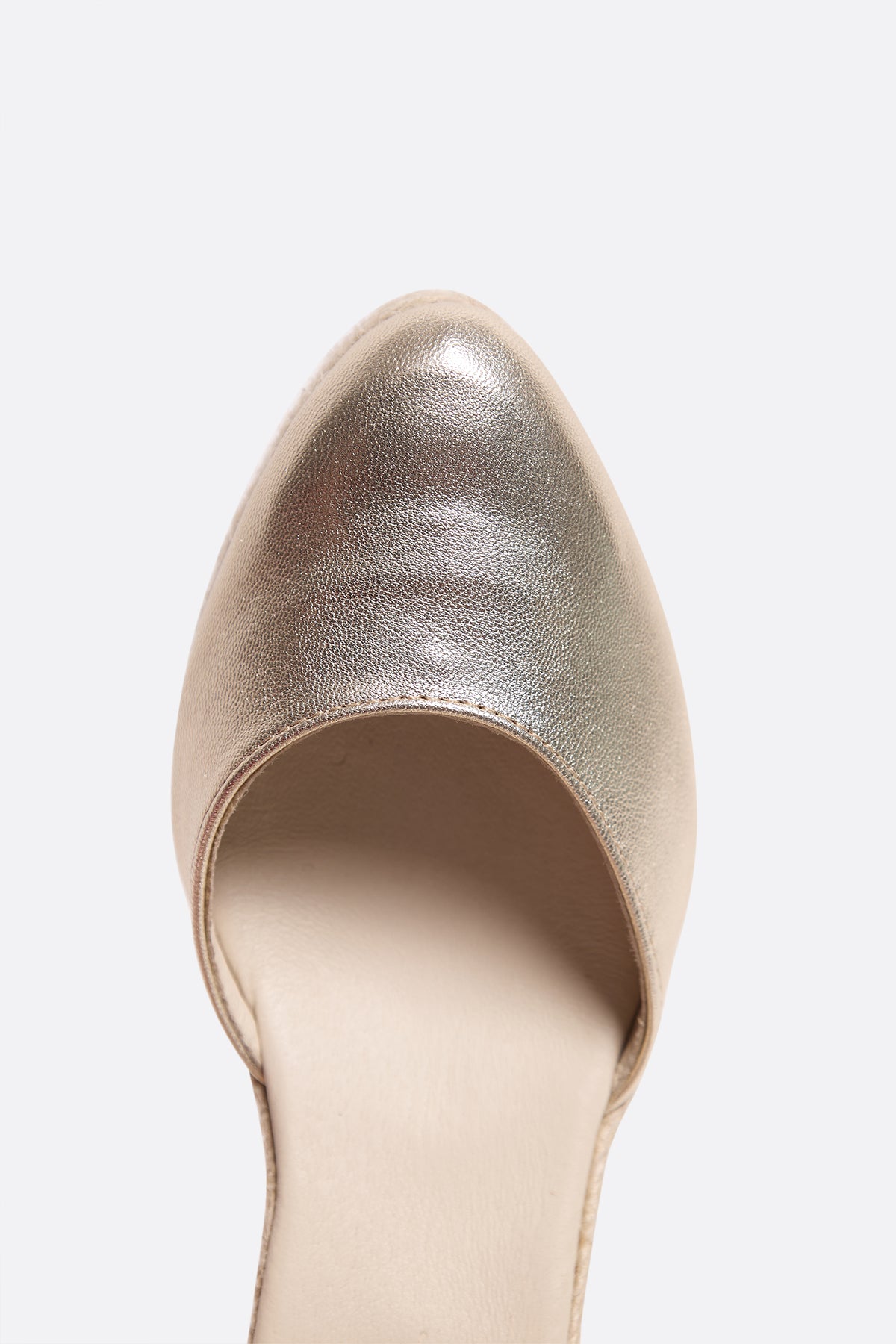 Golden leather espadrille with medium wedge heel