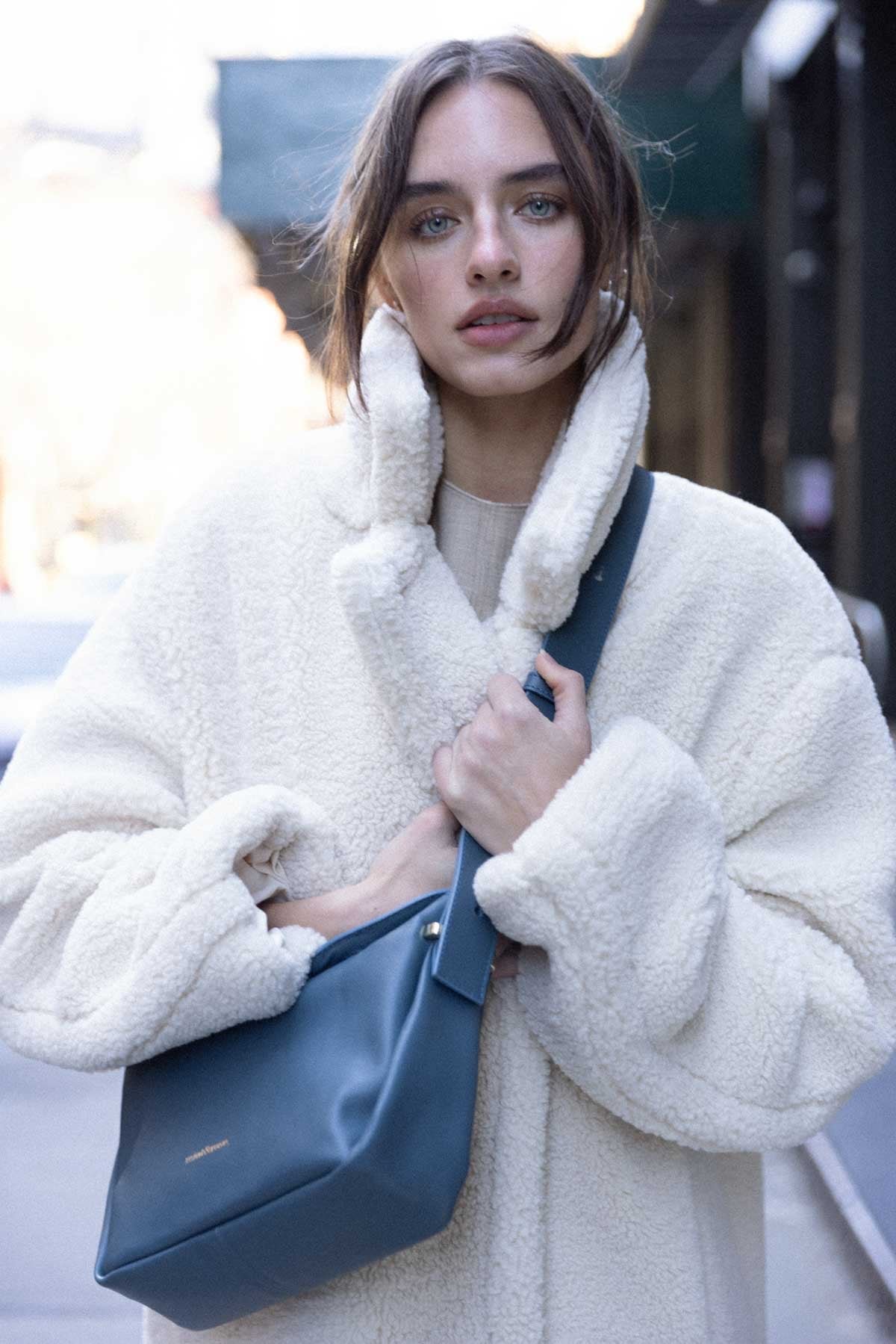 In this bag, with its minimalist silhouette, less is more. All its details help to create that air of subtlety: tone-on-tone stitching, fire engravings, personalized trimmings, adjustable handle and double hook-and-eye closure. The interior is linen and has an internal pocket. Measures 24 cm x 17 cm x 28 cm.