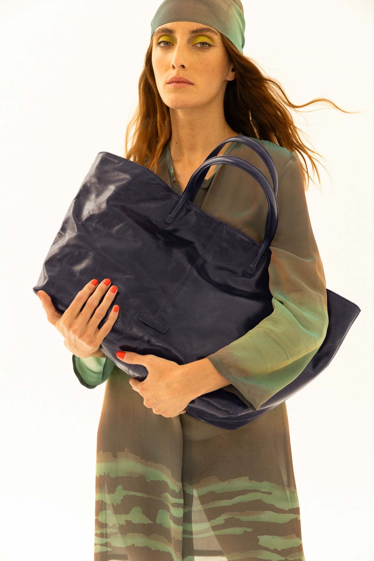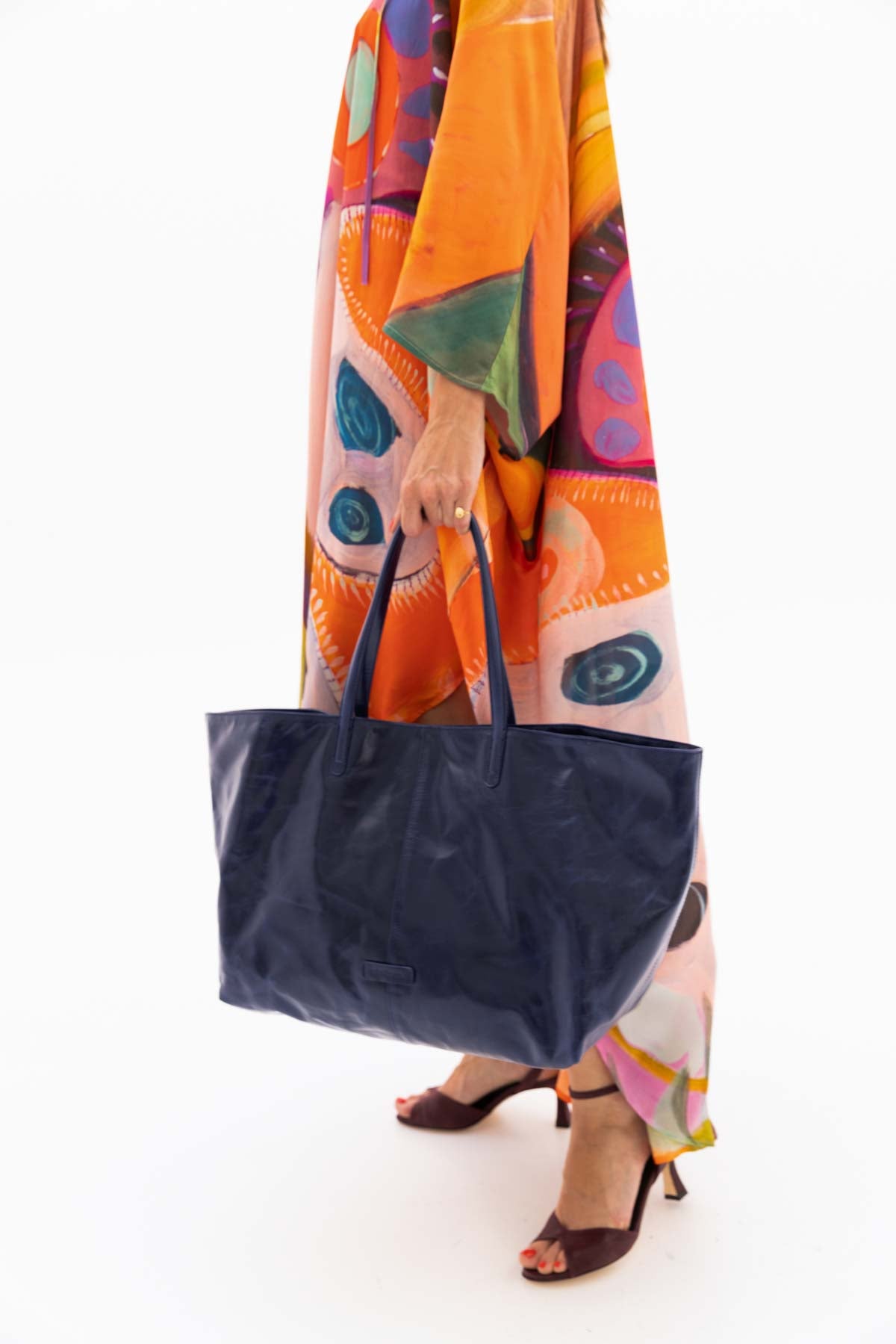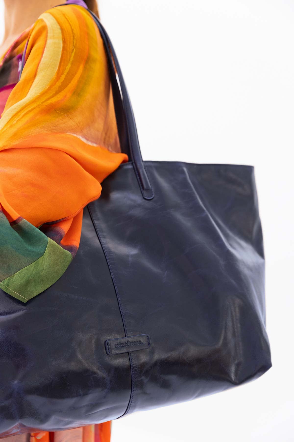 Navy leather shopper bag