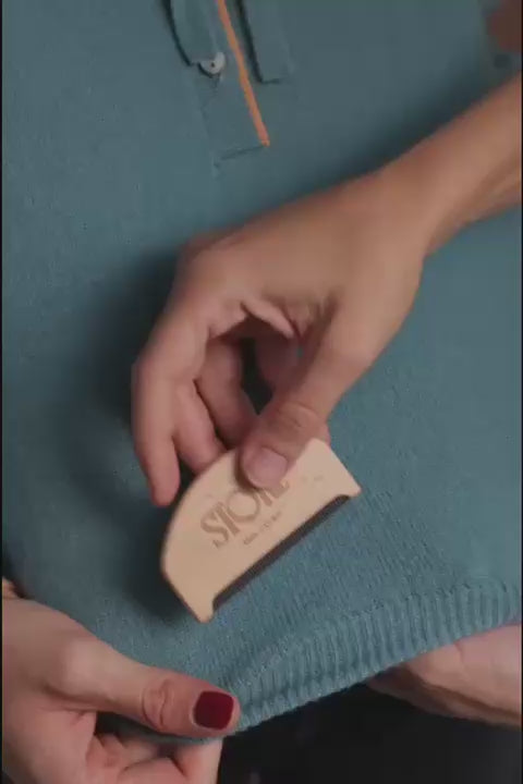 Use the special cashmere brush to gently remove pilling—the tiny fuzz balls that appear naturally from friction on the fibers.