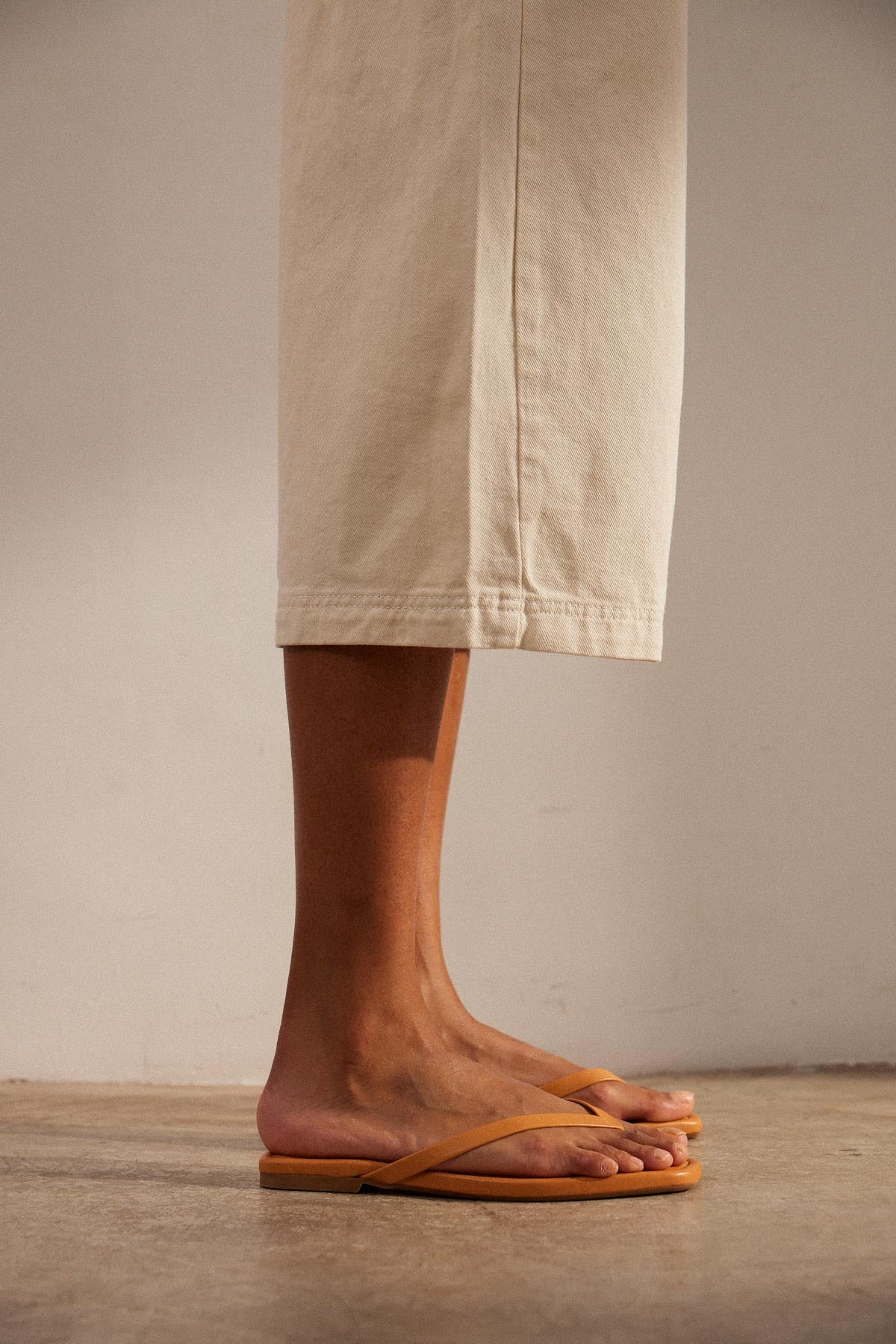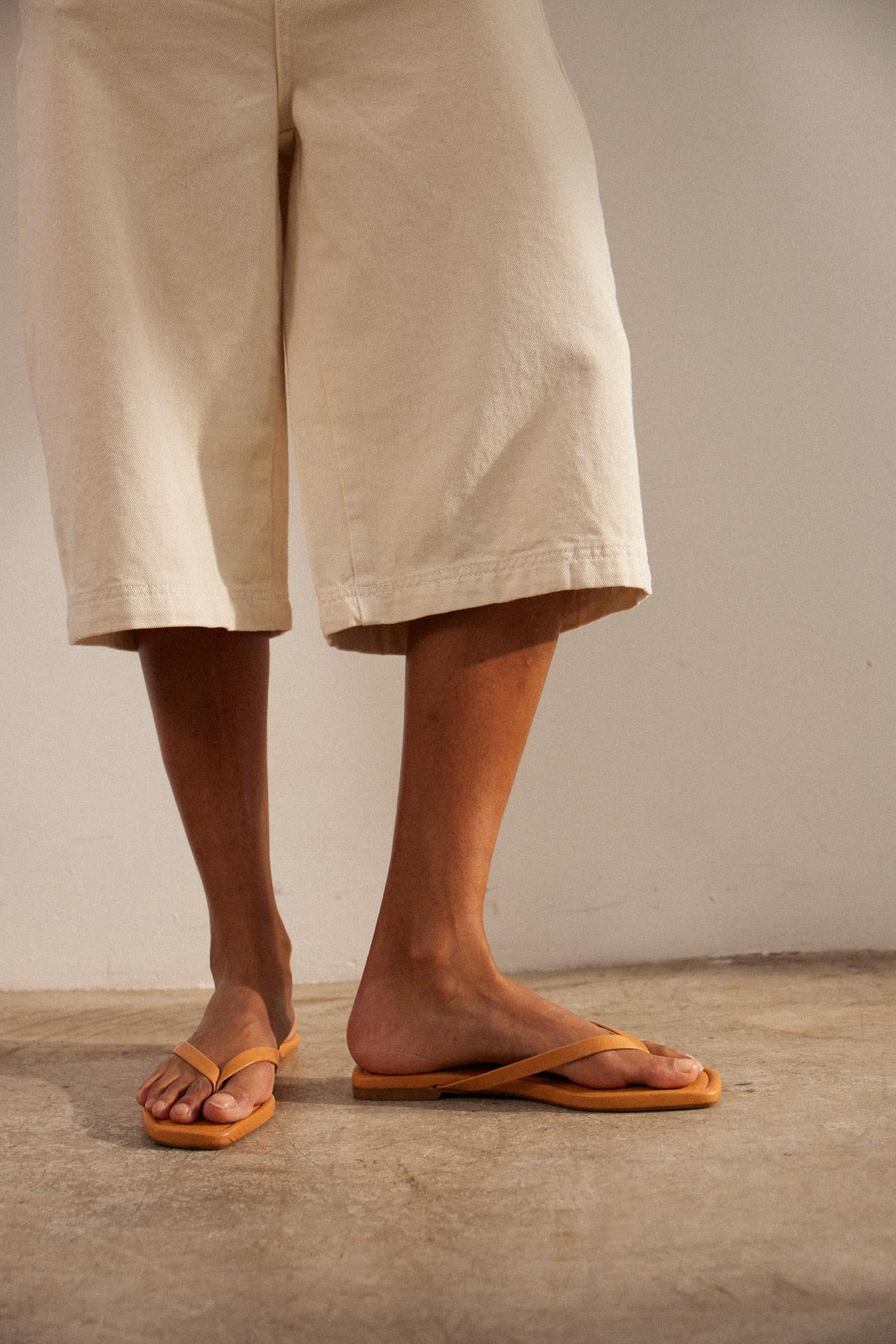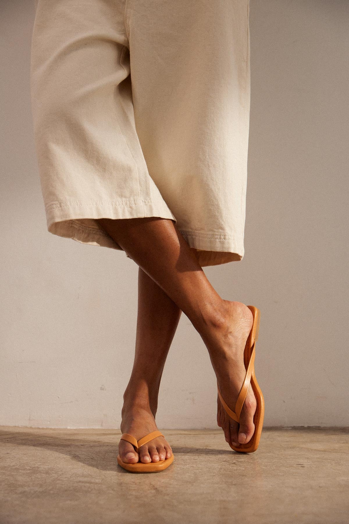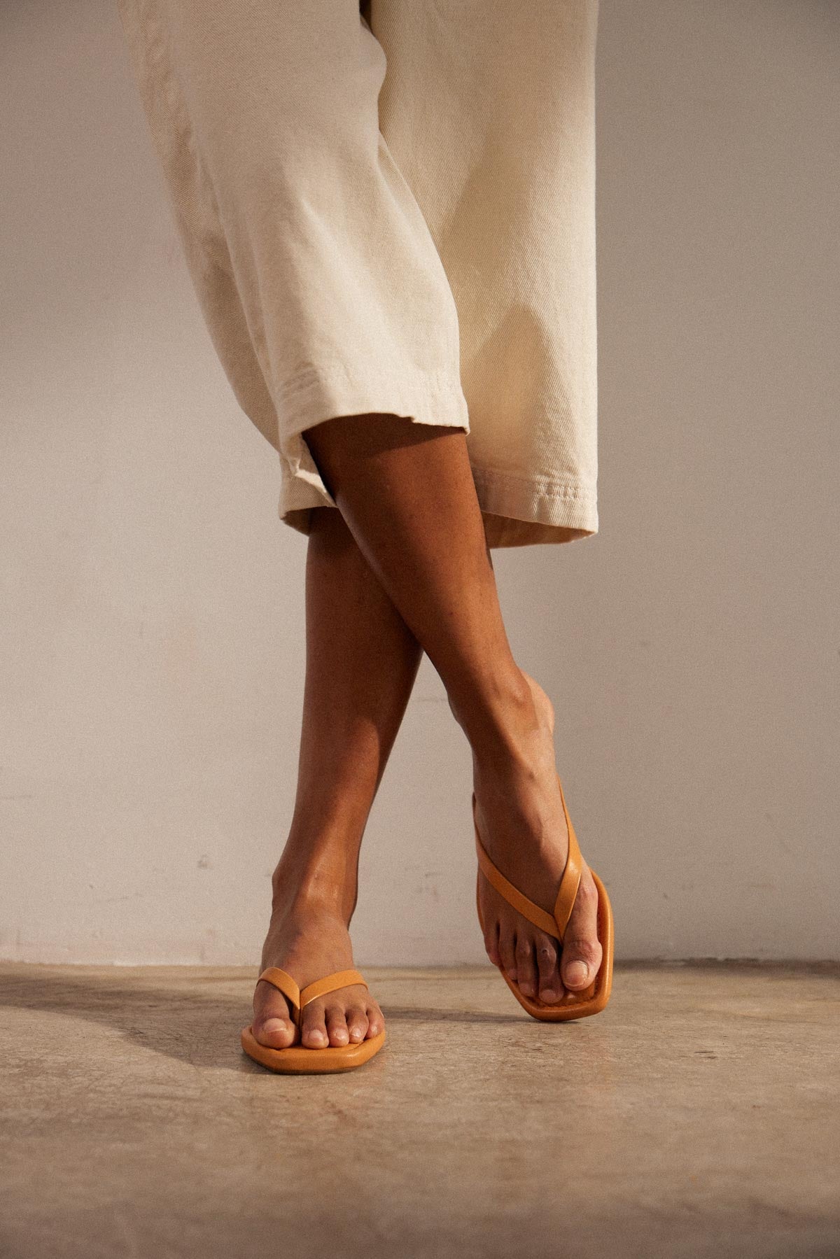 Ari flat sandals are made by Spanish artisans following centuries-old traditional techniques. They are made of soft leather, are minimal in style with a front strap for the toe, and have a sole height of 0.5 cm.