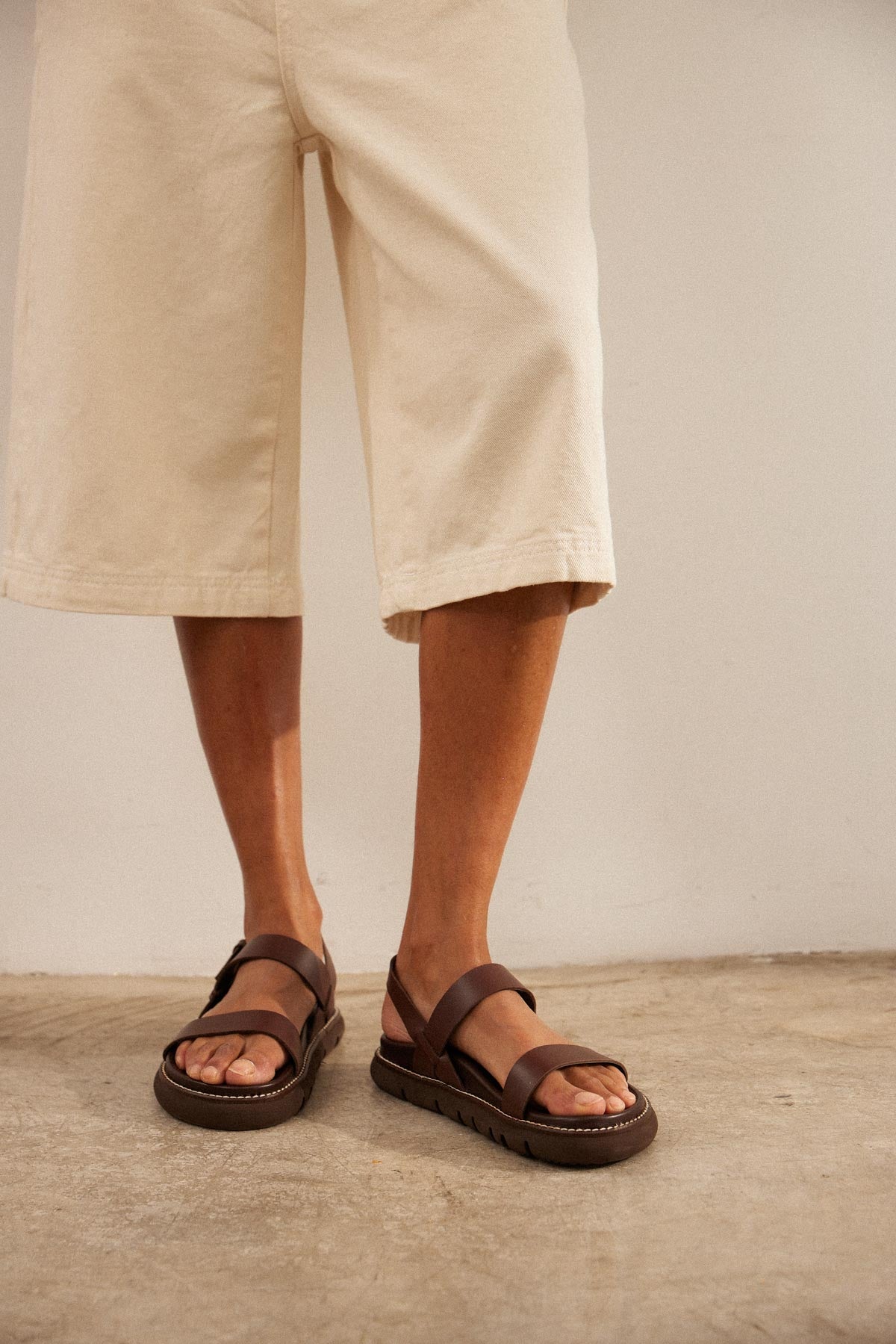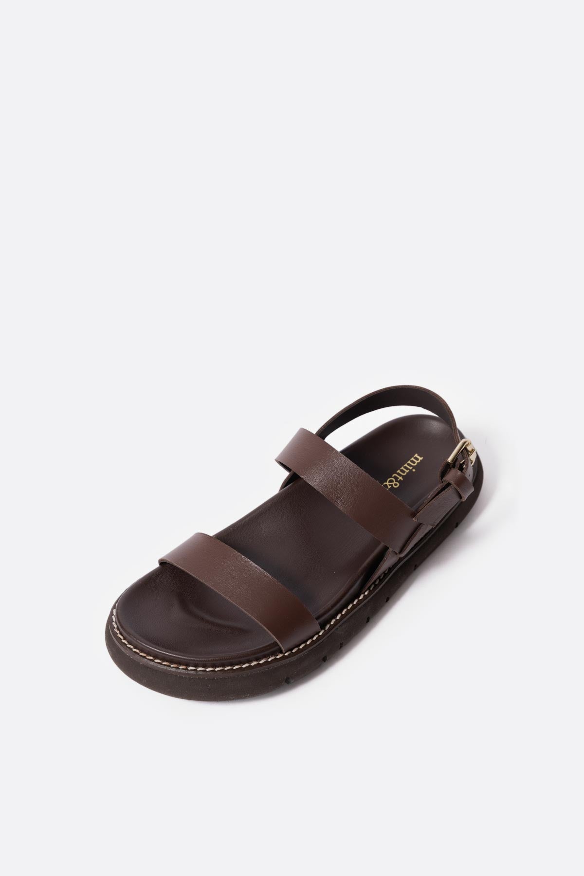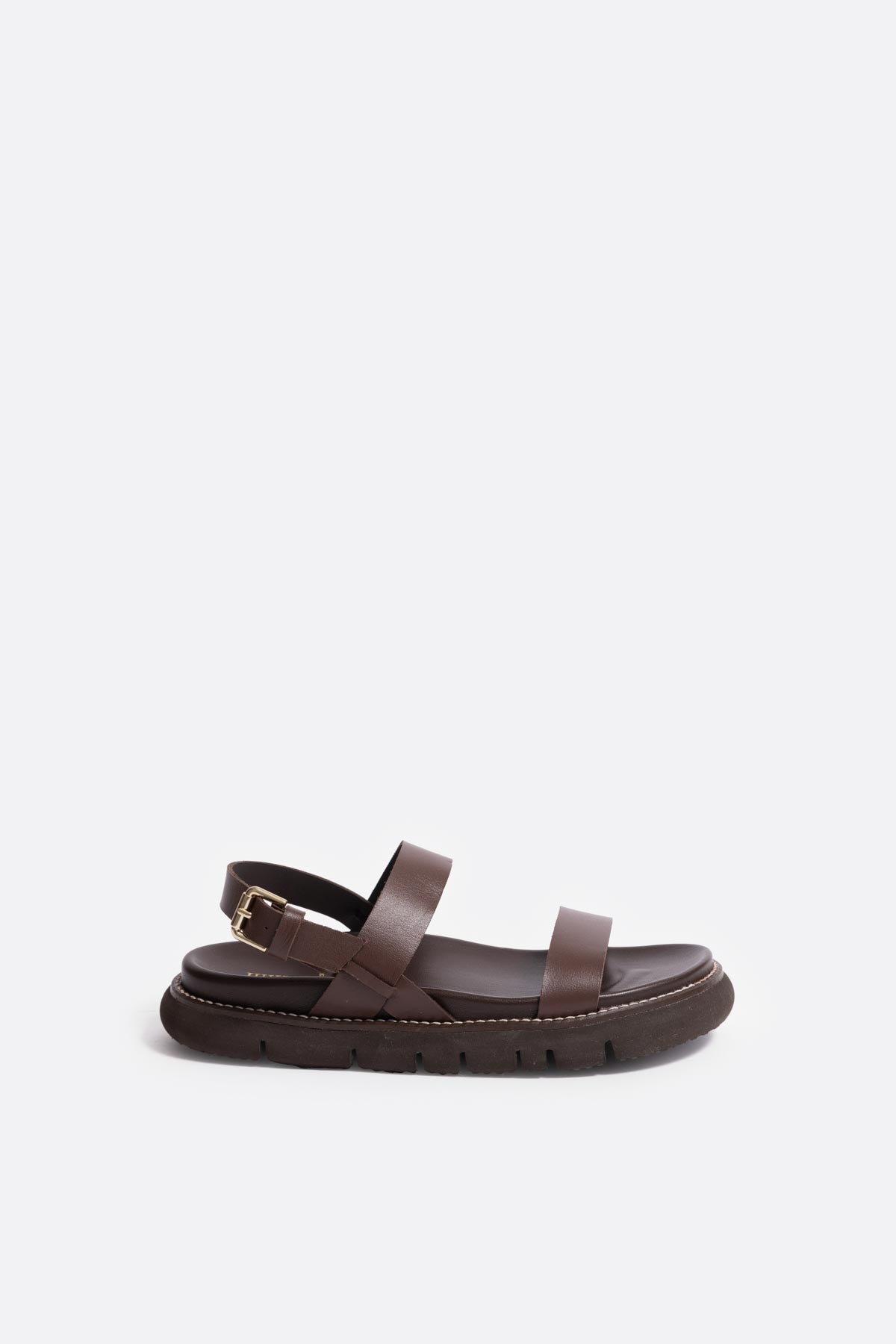 Sandalia plana con plataforma en piel marron chocolate