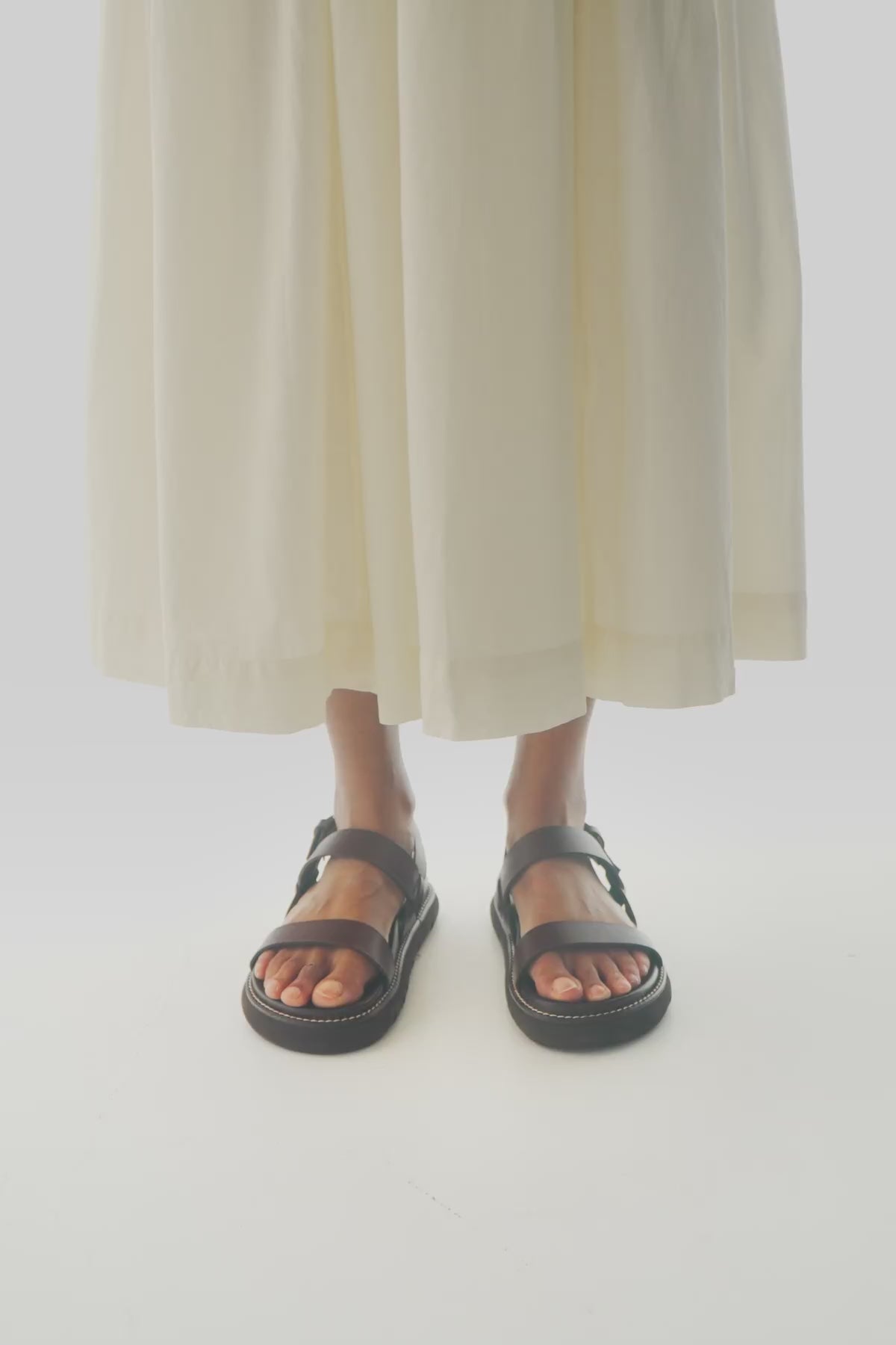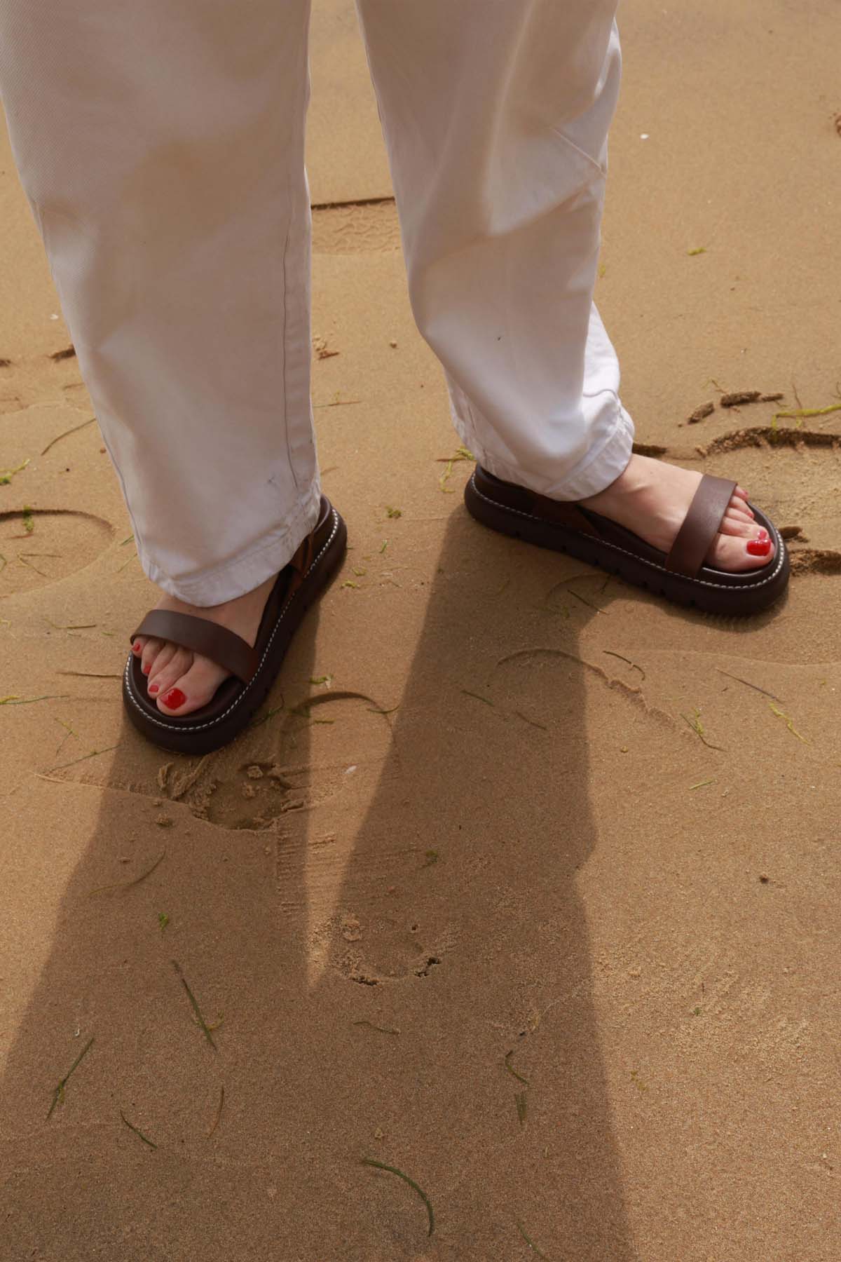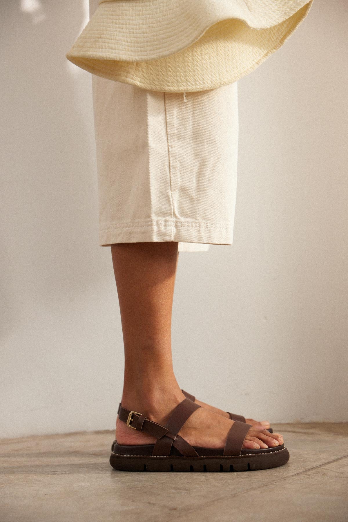 Sandalia plana con plataforma en piel marron chocolate