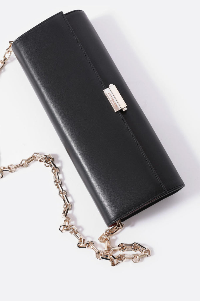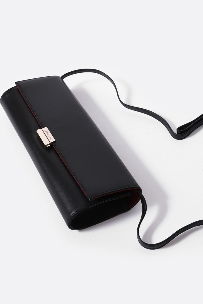 Handcrafted production made in Spain by experts in leather treatment, carefully selected materials and extremely soft leather are Baguette's calling card.. This rectangular bag you can wear at events has a golden clasp, flap with garnet velvet lining and textile interior. You can choose between its golden link strap or the leather strap. Measures: 26,5x12 cm. You can adjust the strap length with the interior tabs: 42-59 cm.