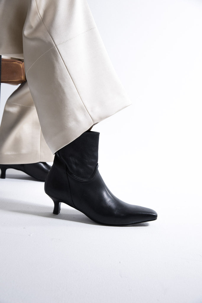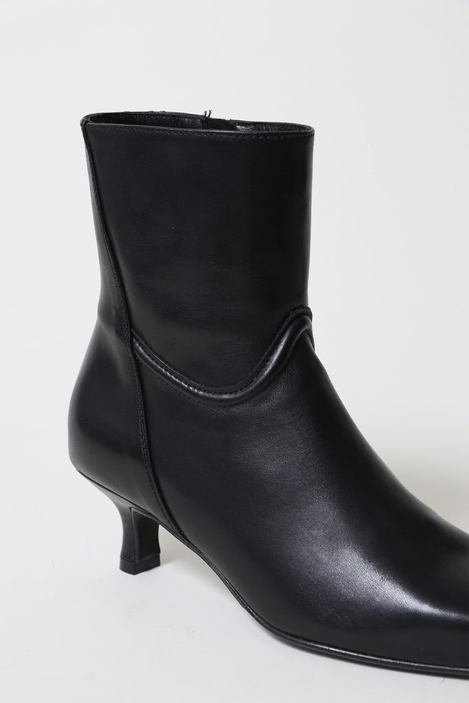 Black leather ankle boot with heel