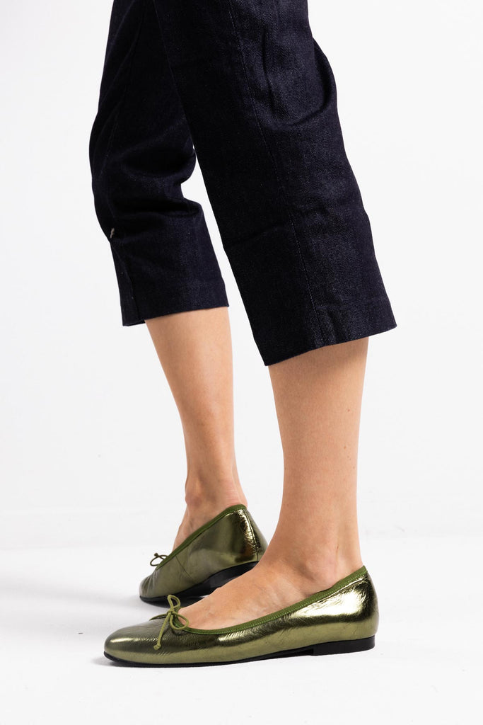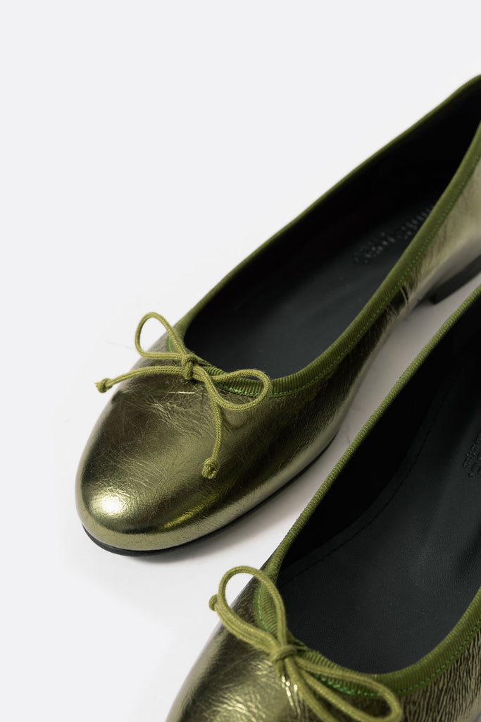 Bailarina de punta redonda en piel verde metalizada