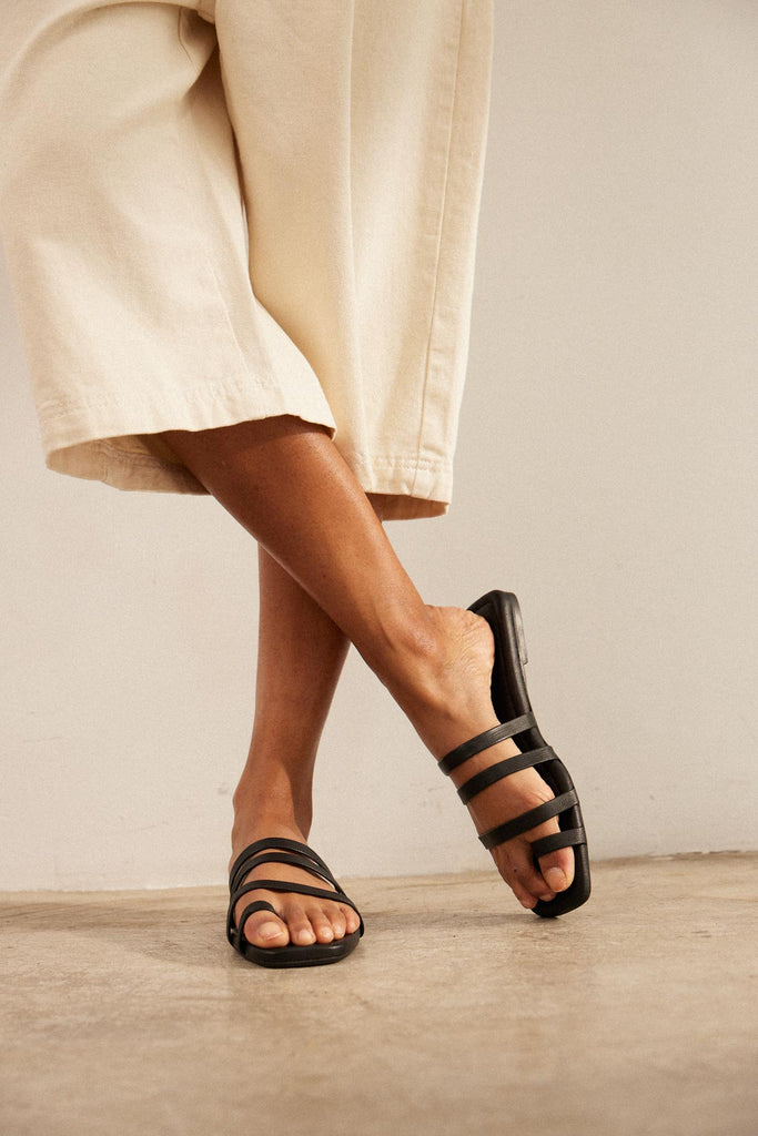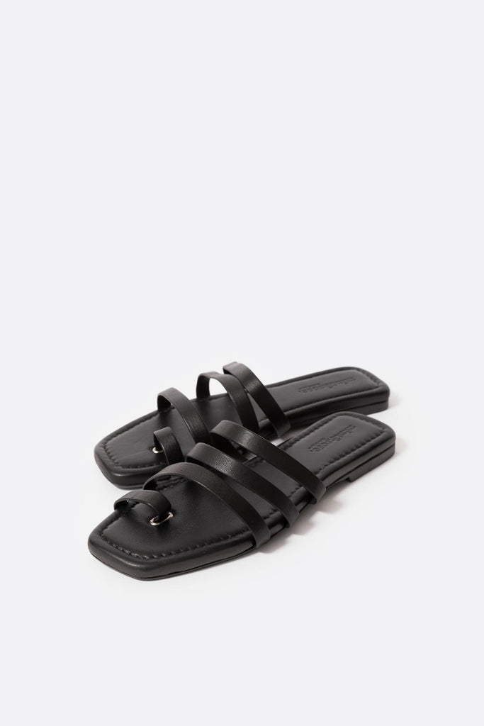Sandalia plana en piel negra