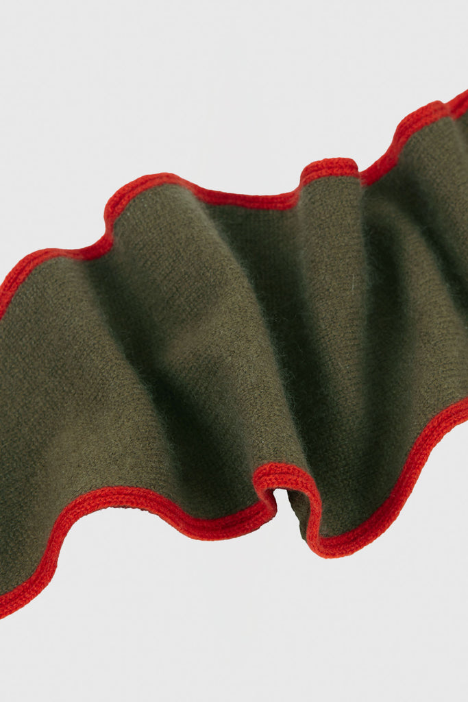 What we like the most: Feeling its softness around the neck and its olive color with the orange edge.