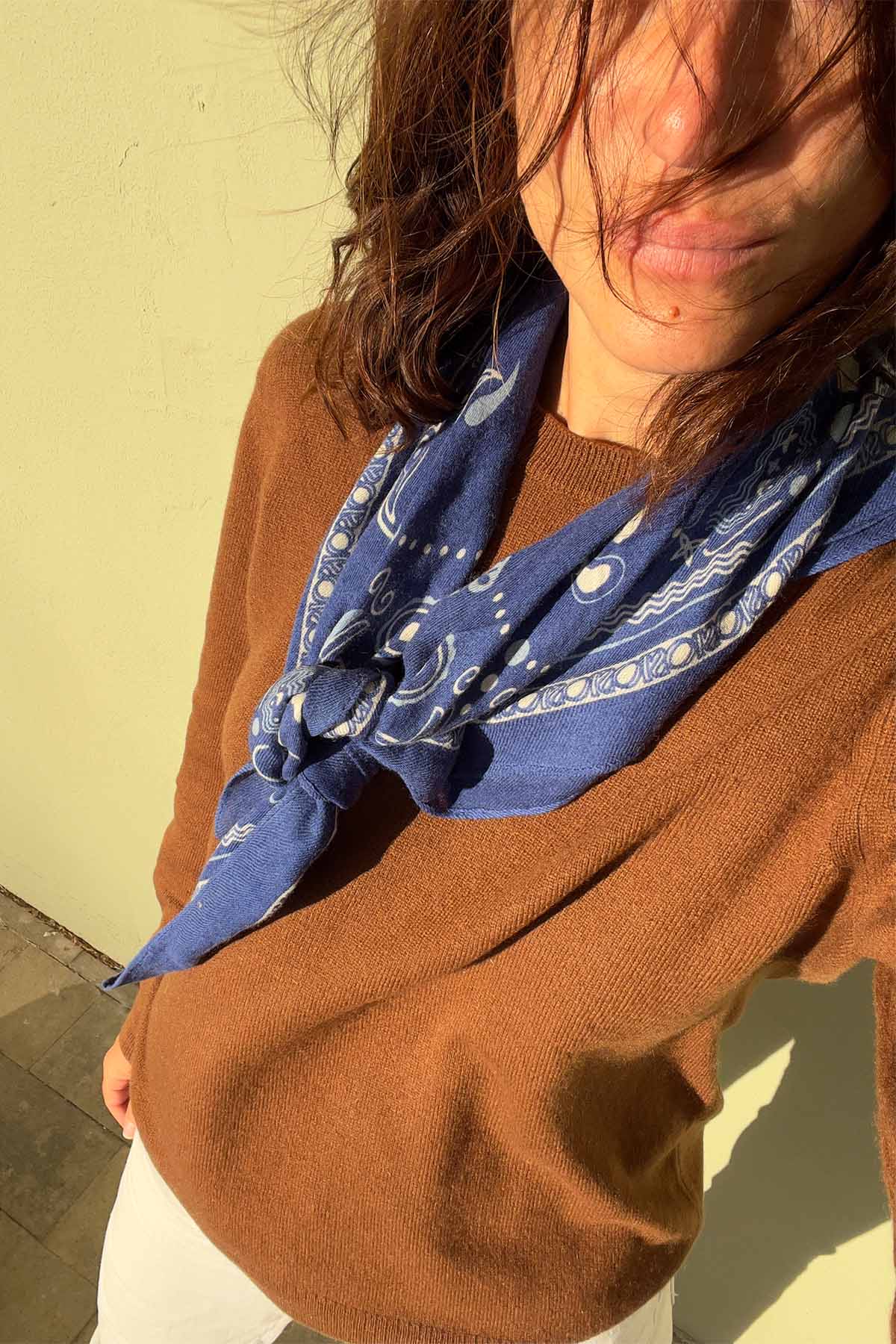 What we like most: Feeling its softness around the neck and the combination of different shades of blue.