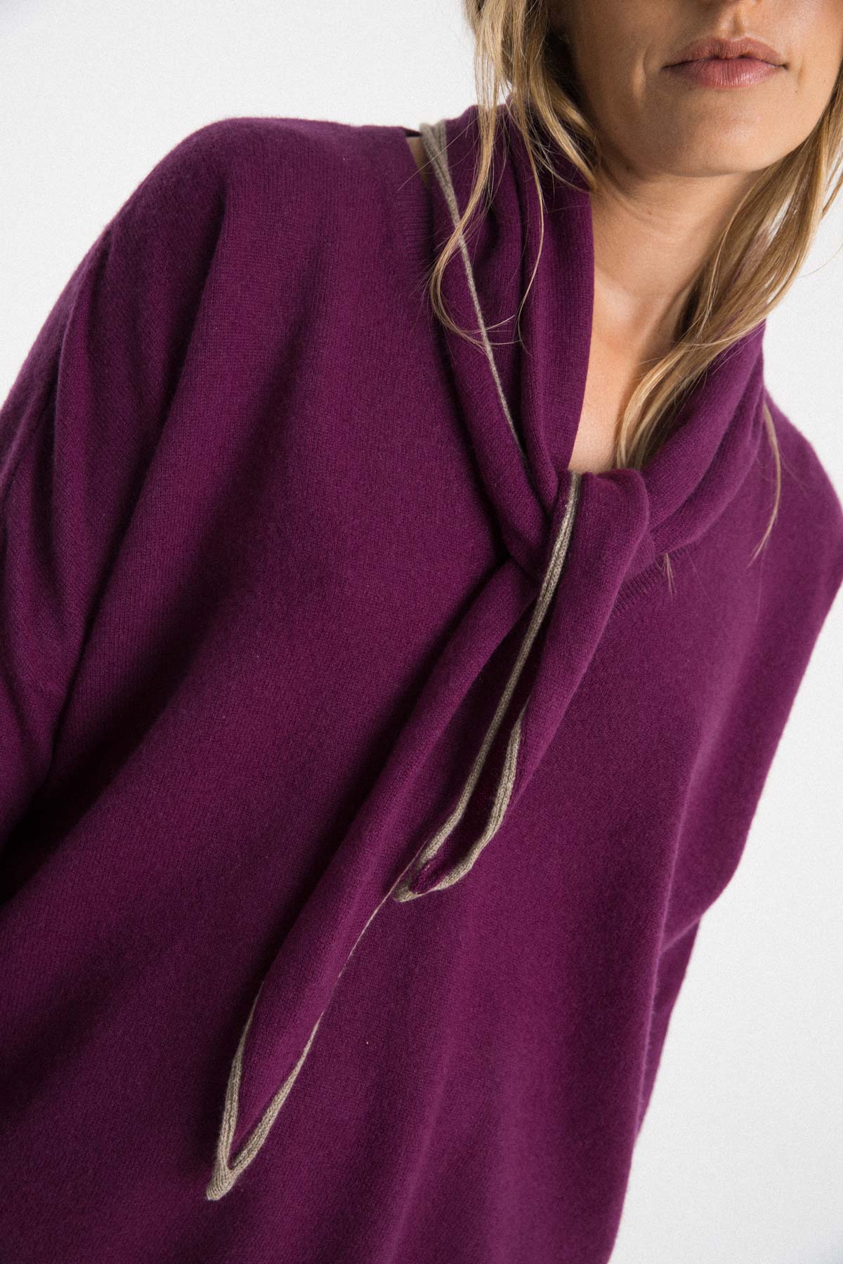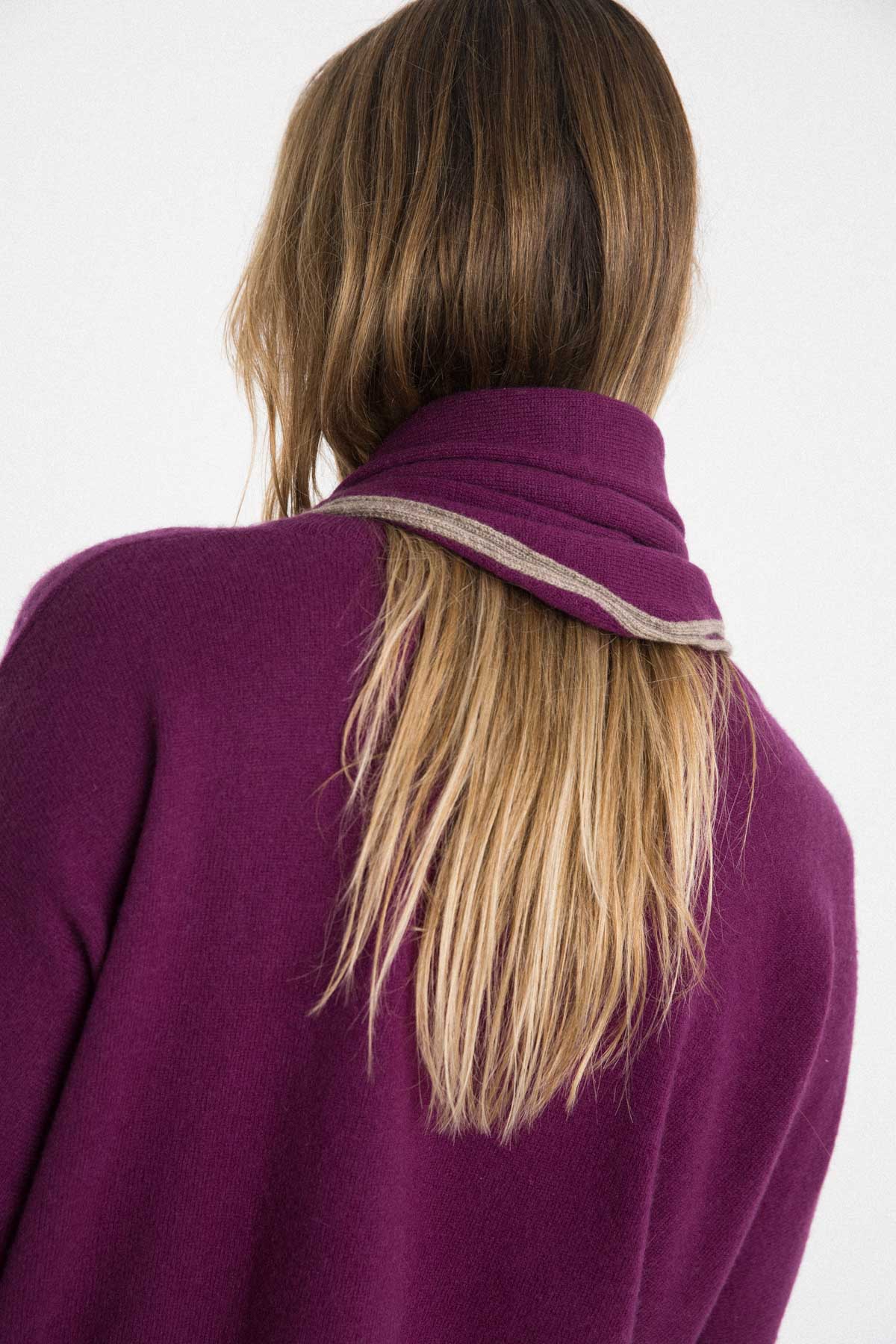 What we like the most: feeling its softness on the neck and its purple color and beige border.