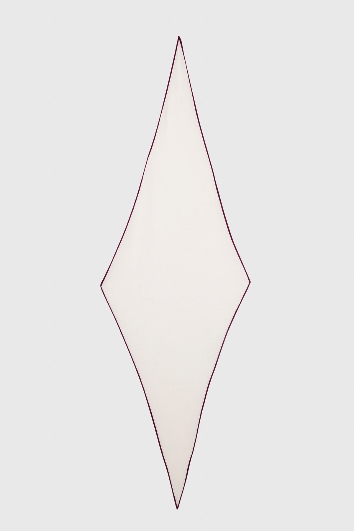 Elongated diamond shape with black trim and white inside. Measurements: 130 cm long and 45 cm wide (decreasing).