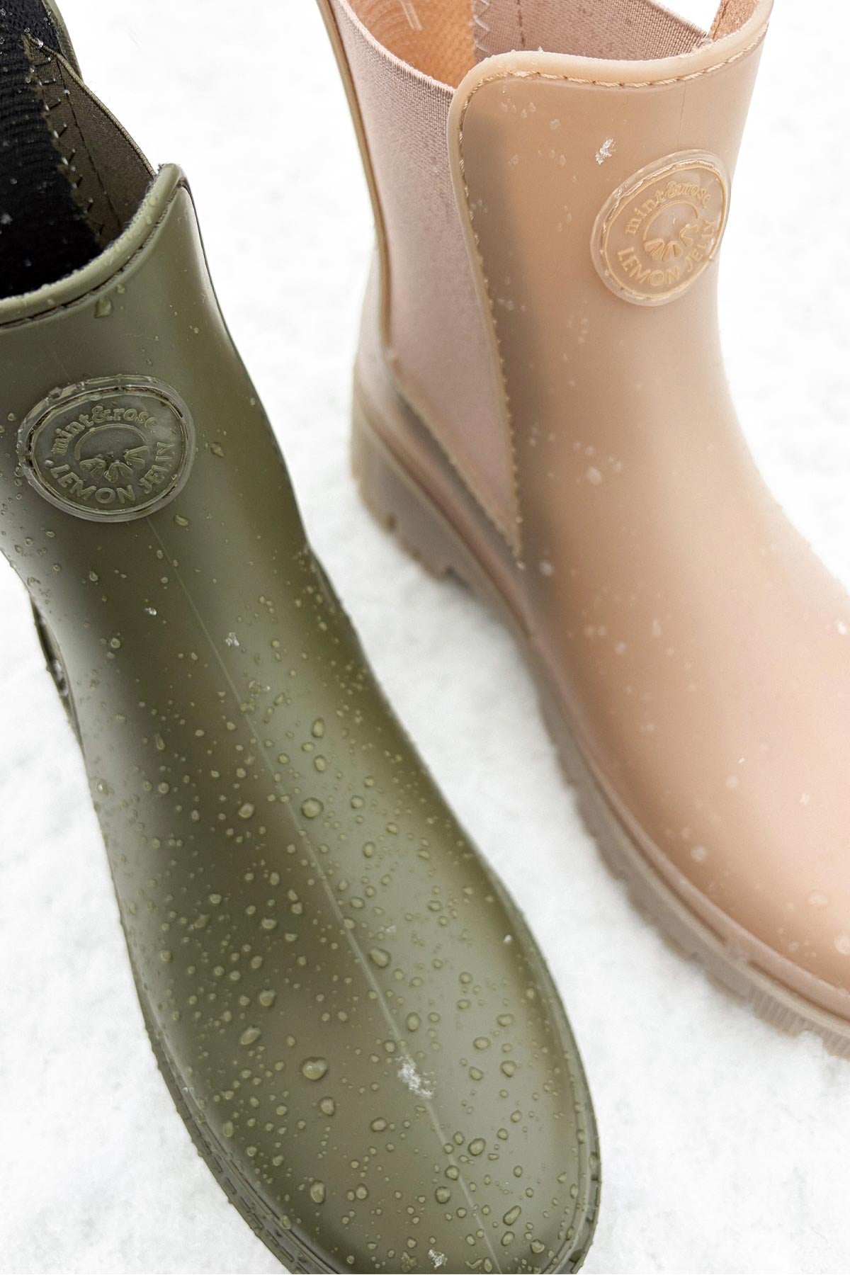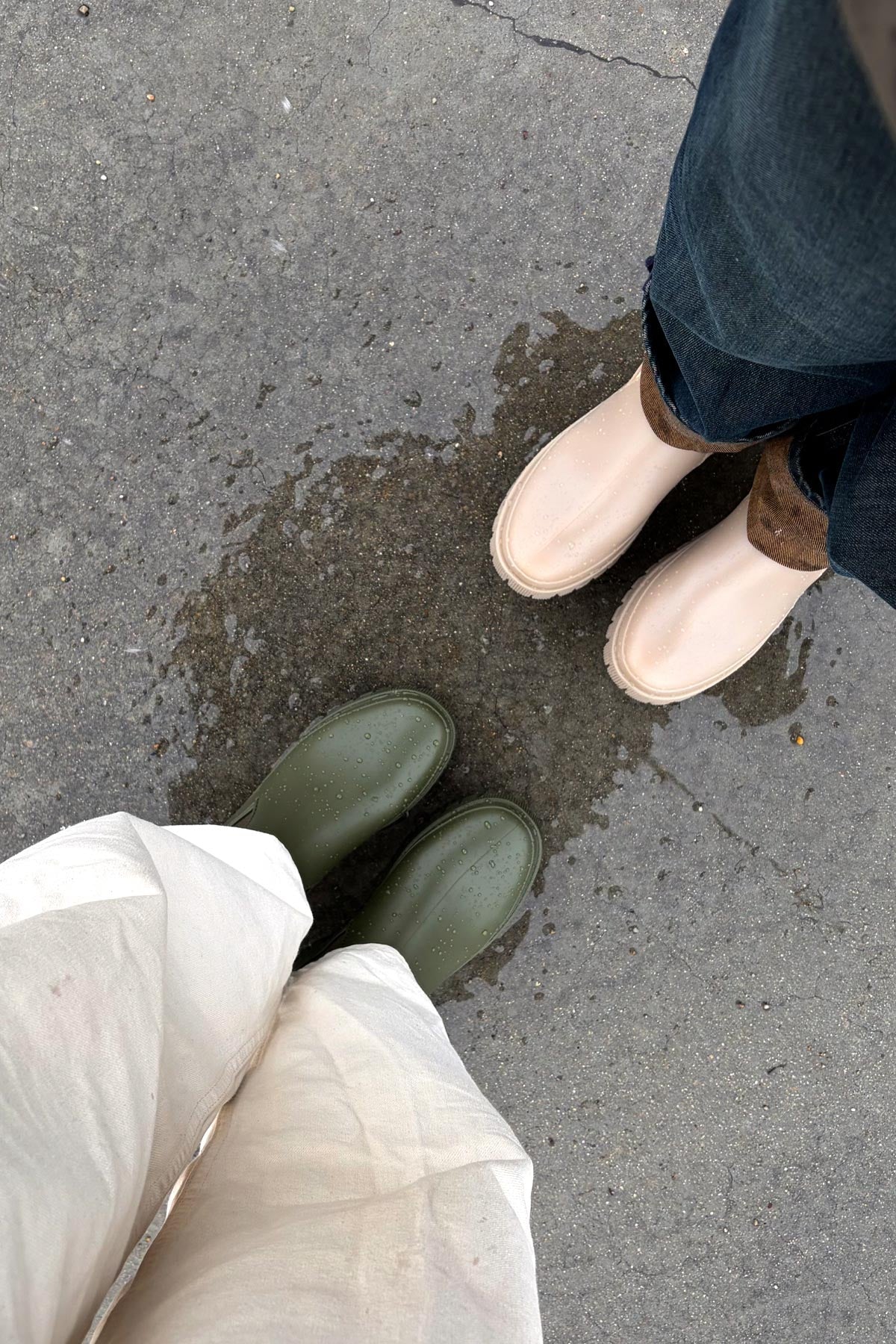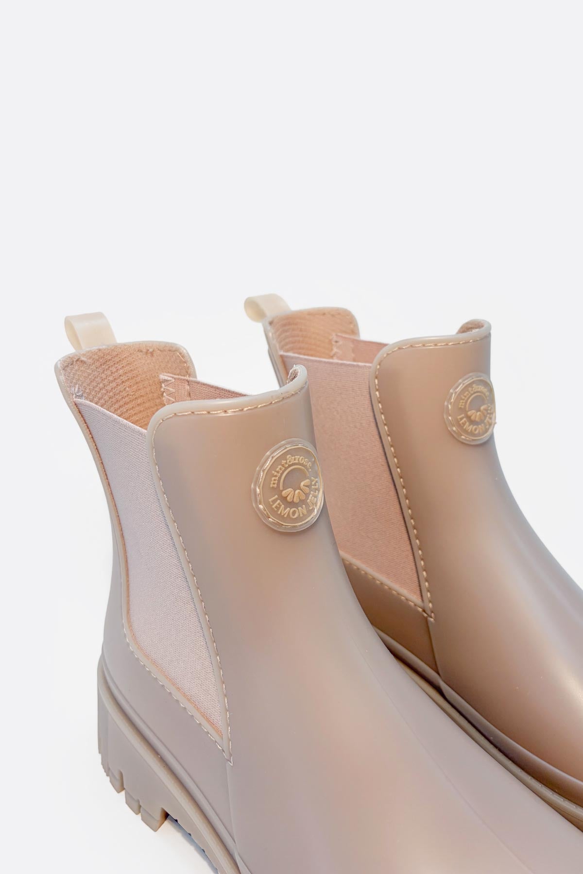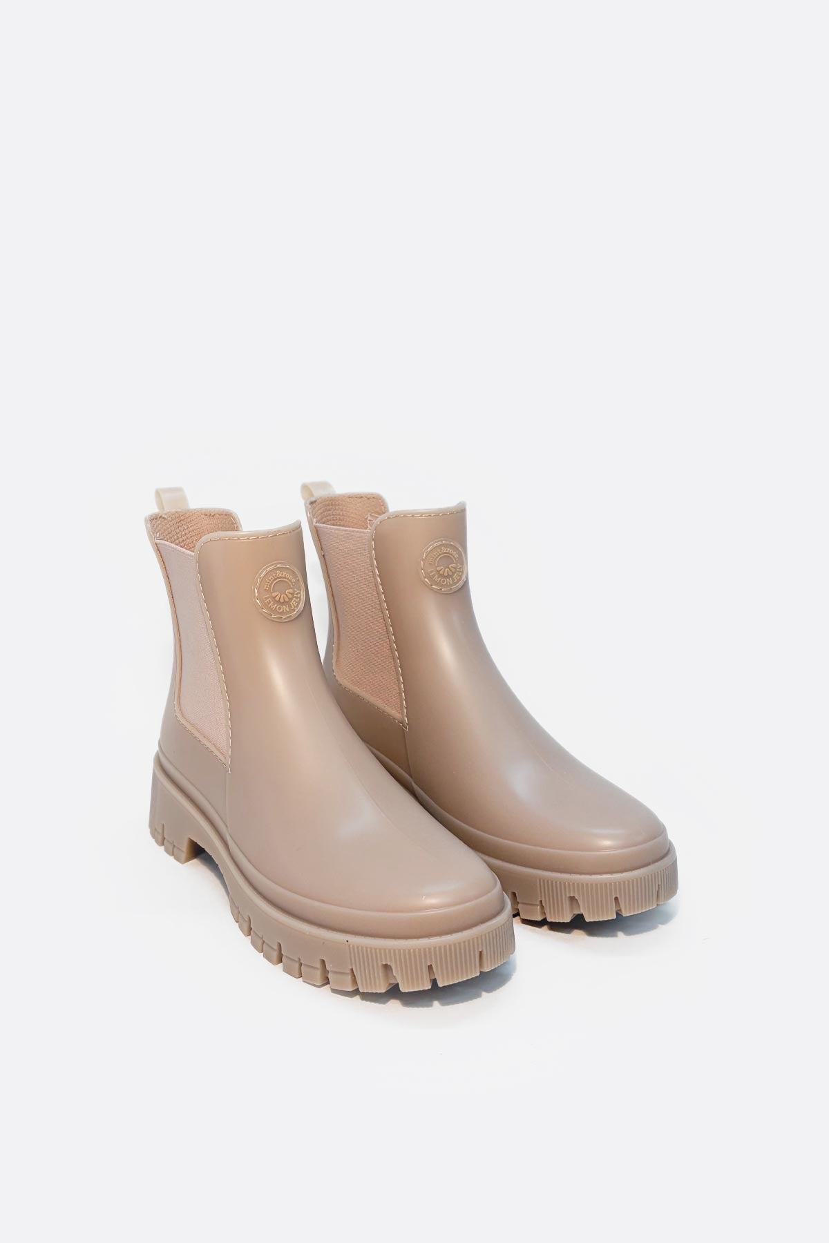 Beige rain boots