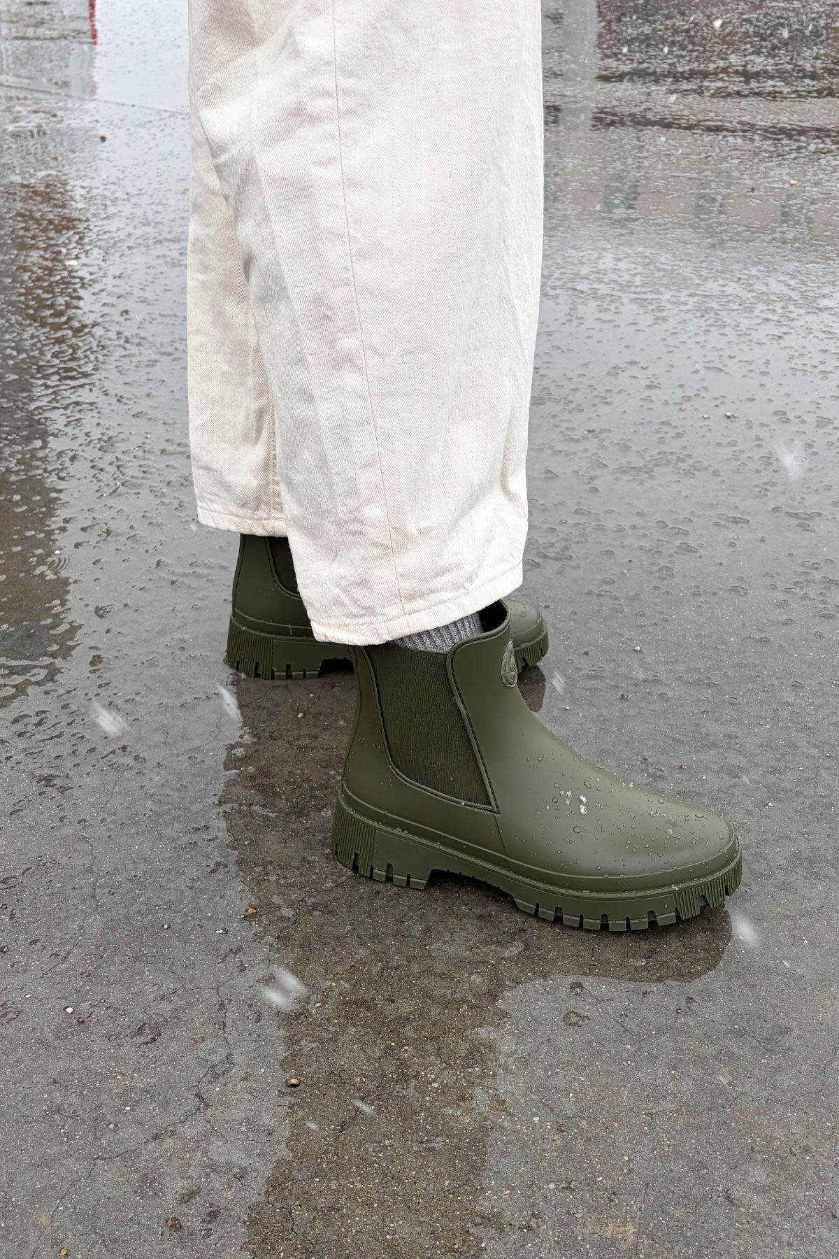Green rain boots