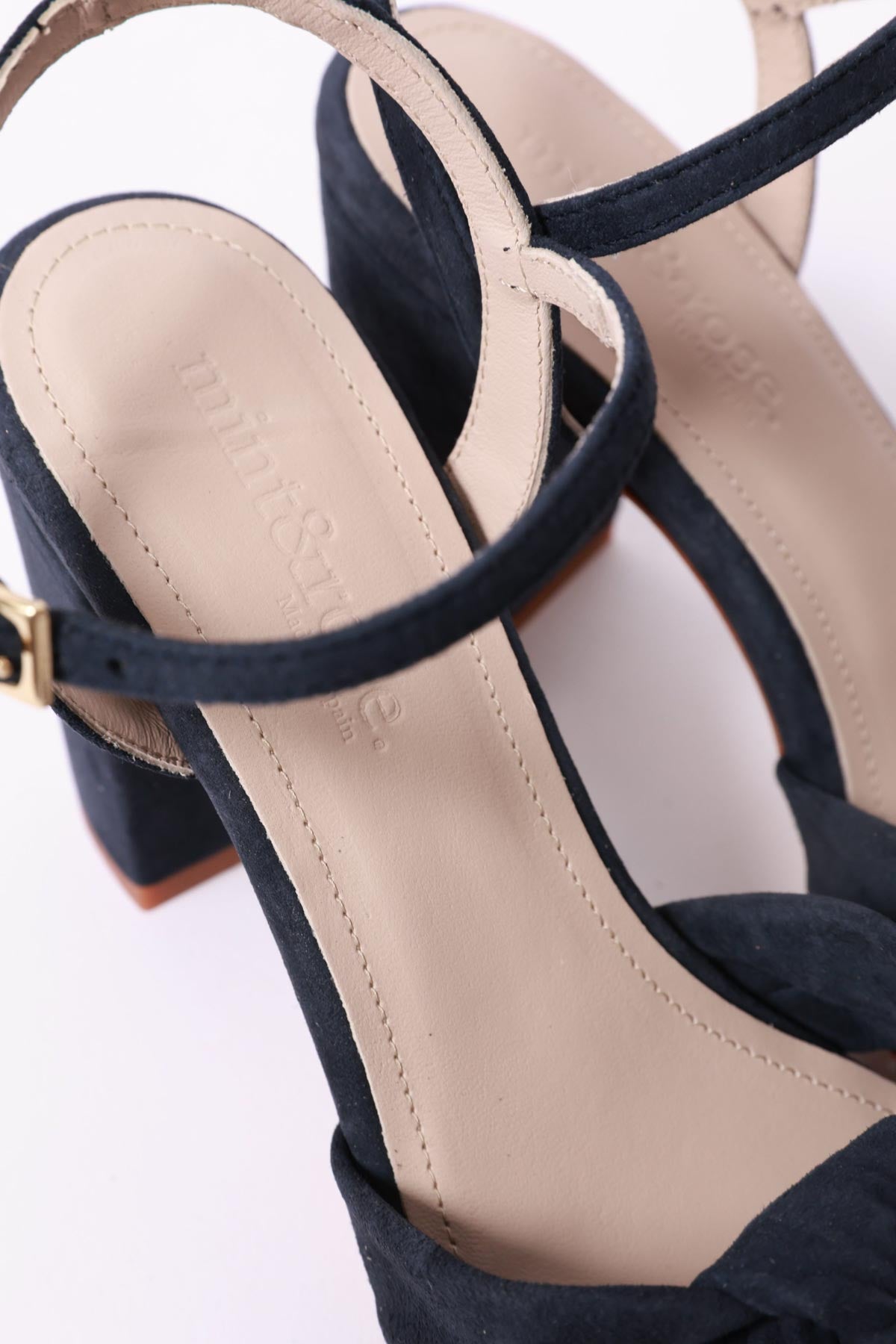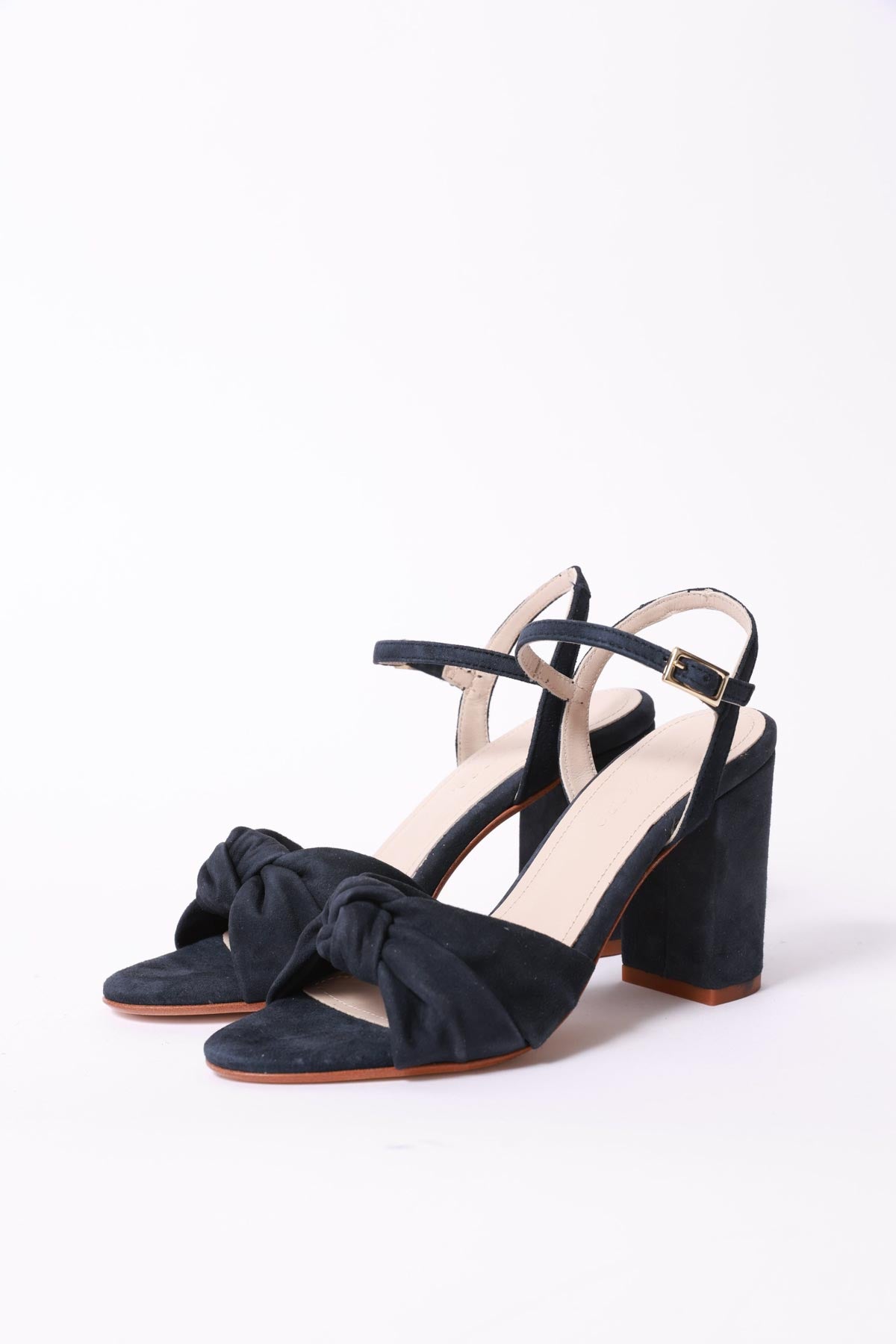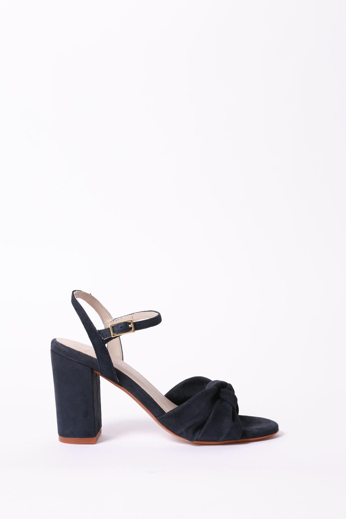 Sandalia alta en piel ante azul marino