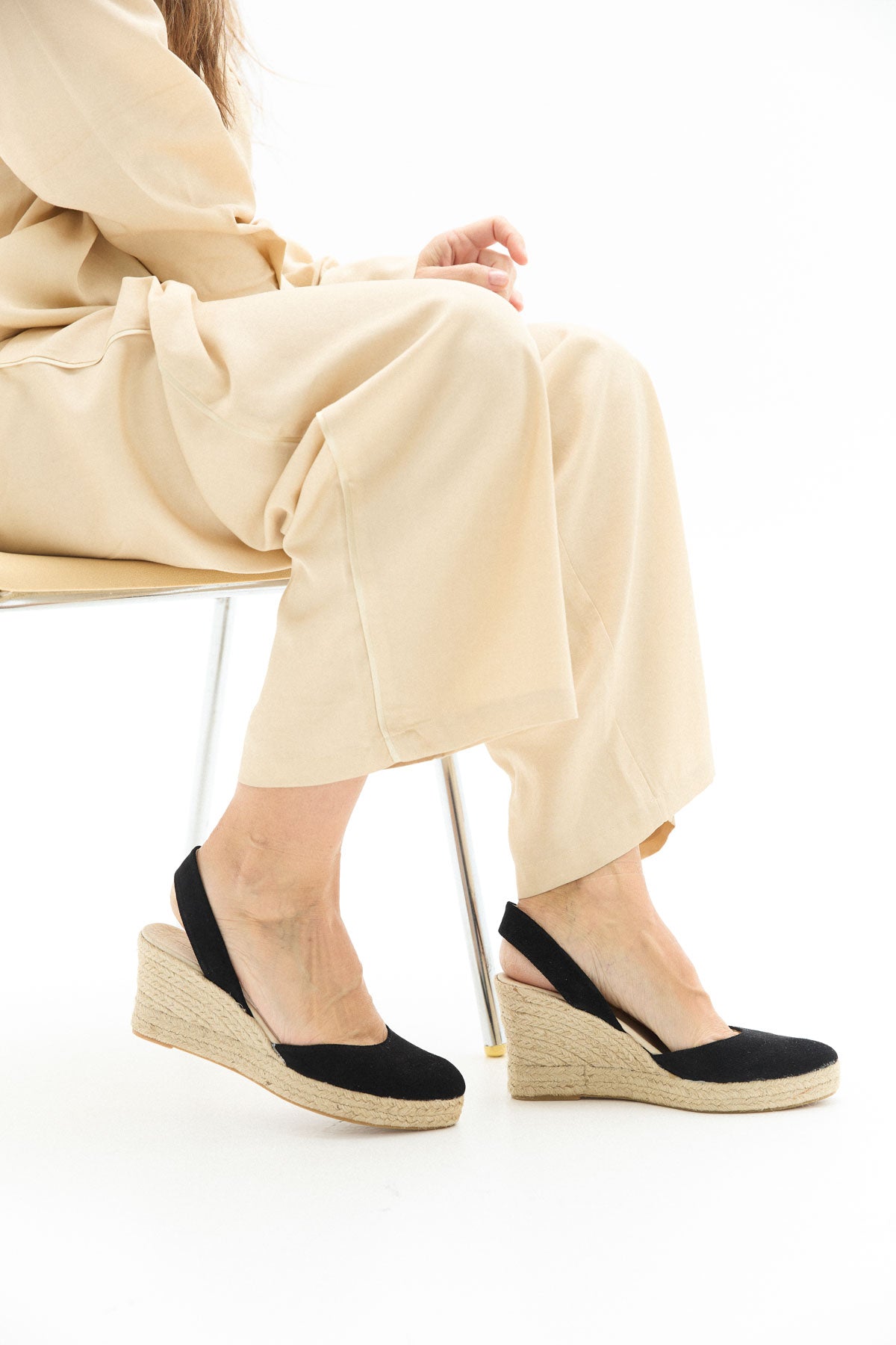Alpargata cuña baja en piel serraje negrao - 7 cm