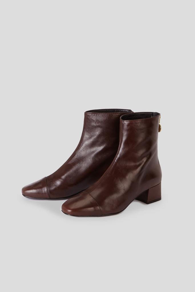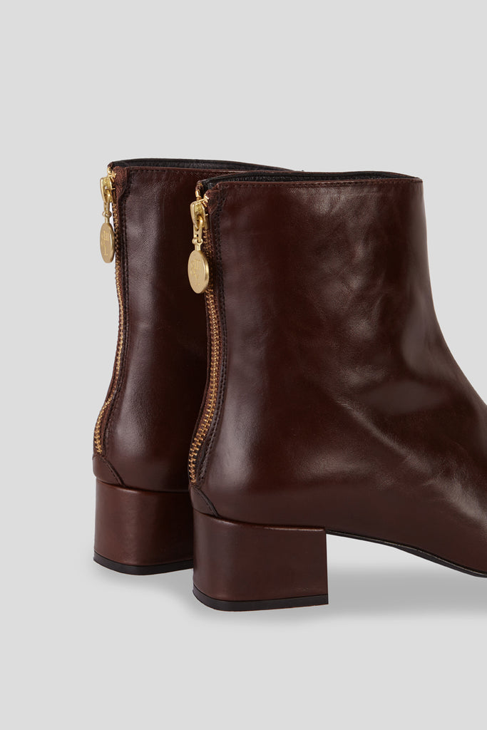 Sol boots are made by Spanish craftsmen from the best quality leather. Their design is timeless but with a multitude of small details. Subtly squared toe, ankle-high tapered shaft, golden zip with puller at the back, and 4.5 cm block and U-shaped heel. Cloud cushioned insole for maximum comfort. Shaft height: 15 cm. Shaft width: 5 cm.