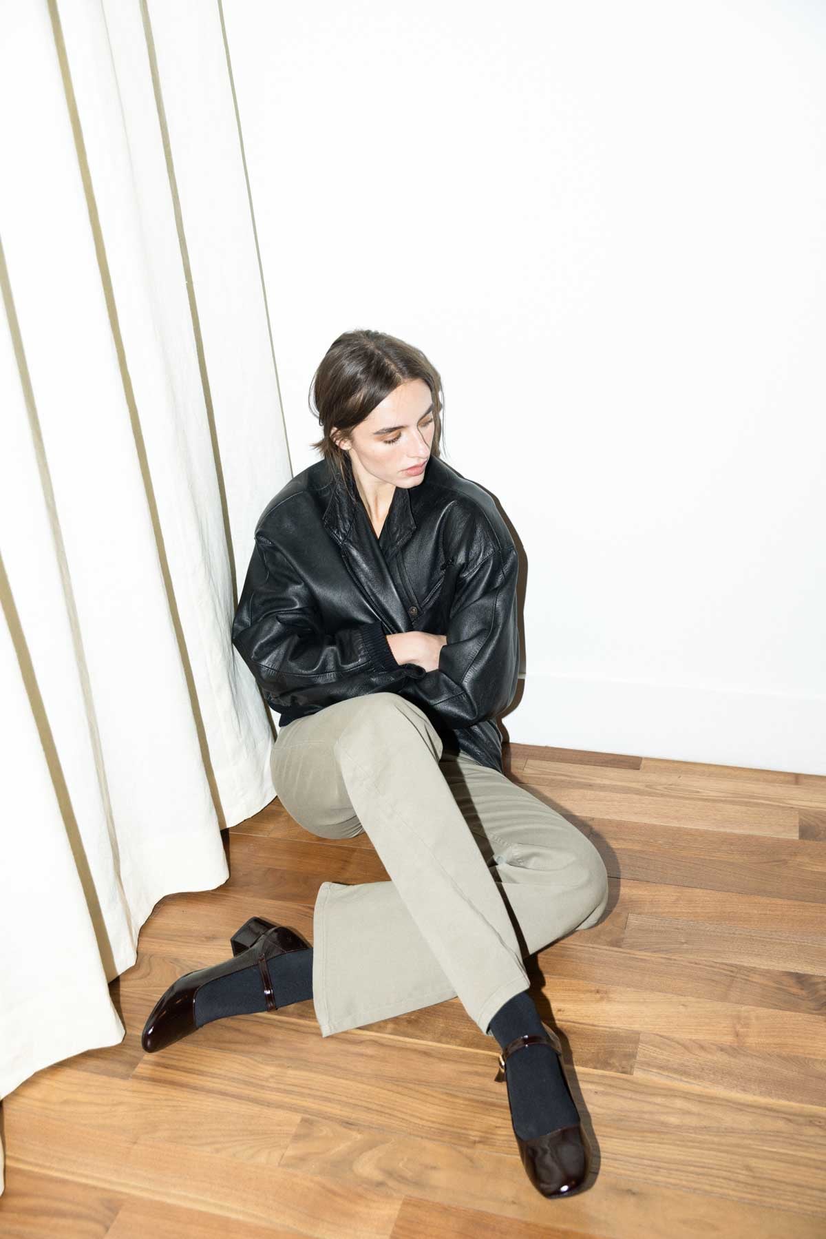 Ballerines Mary Jane en cuir aubergine