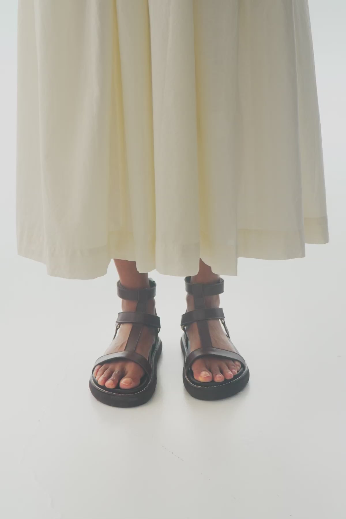 De inspiración romana, esta sandalia no te dejará indiferente. Su diseño combina una tira delantera de piel con tiras que se entrelazan alrededor del tobillo, creando una silueta sofisticada y con carácter. El cierre lateral con velcro asegura una sujeción cómoda y firme.