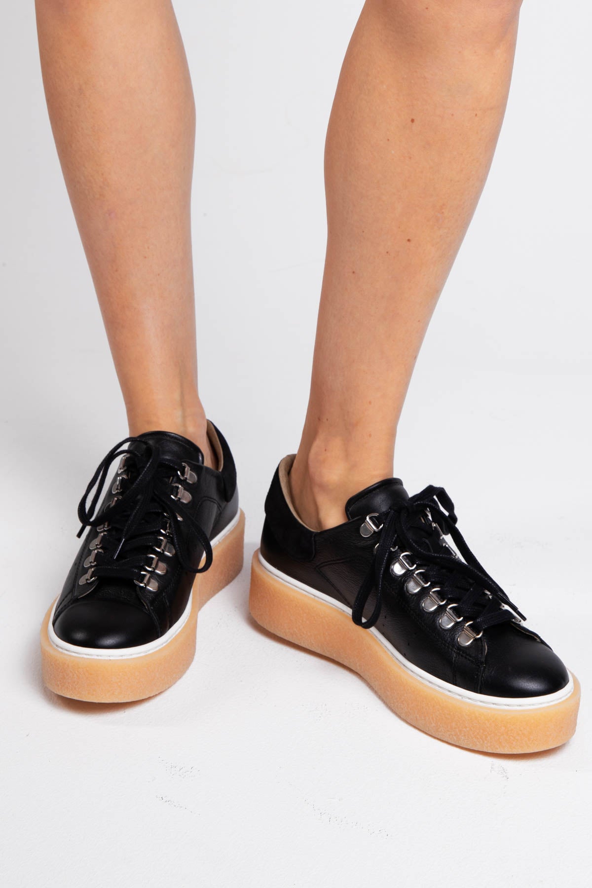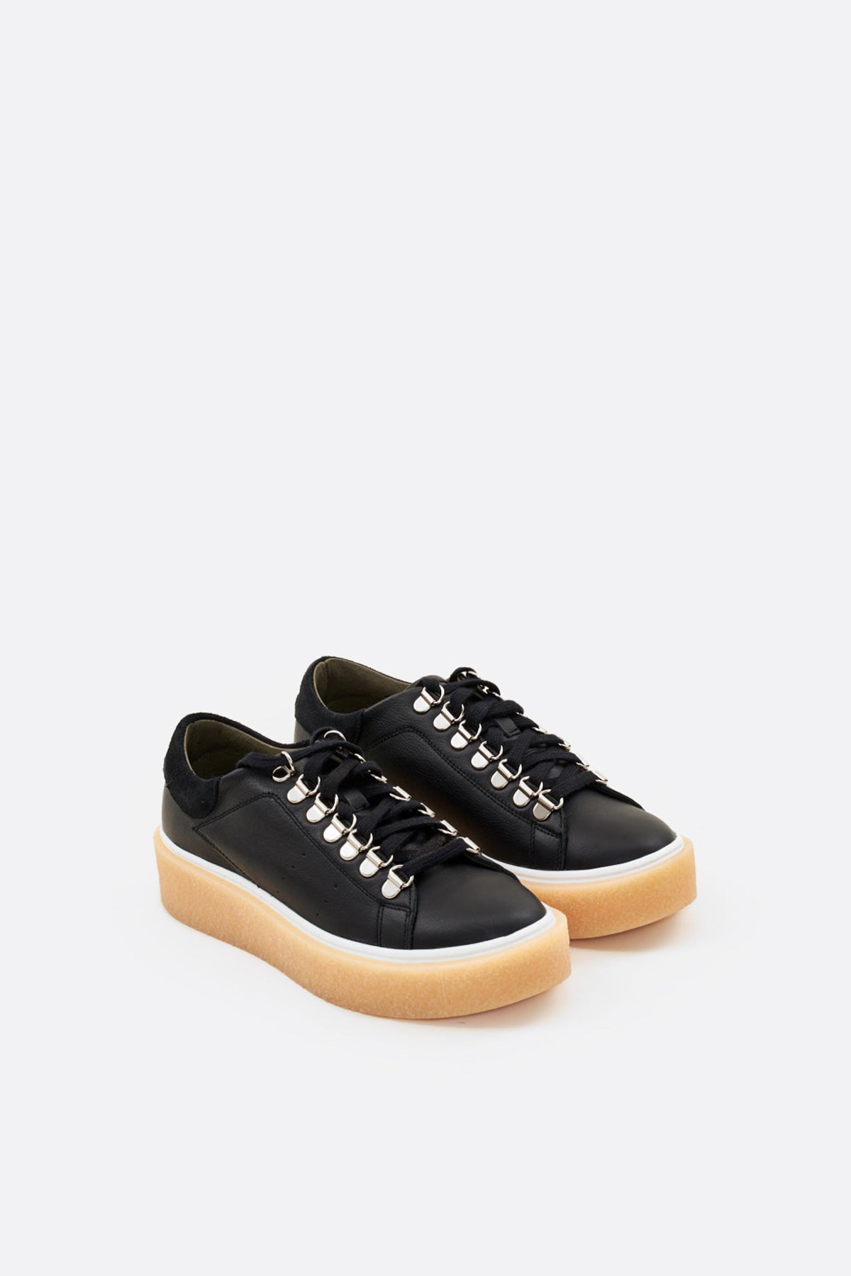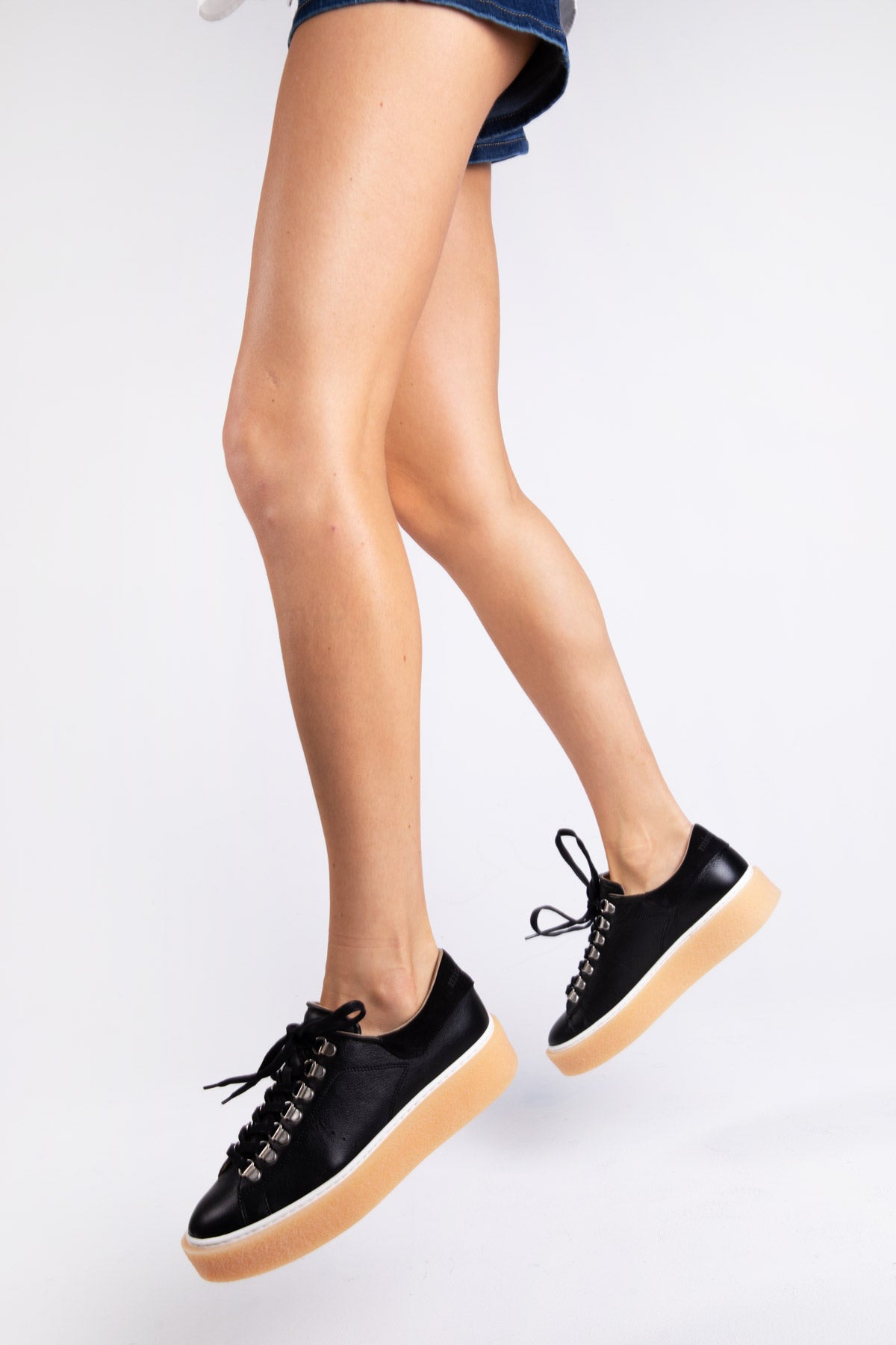 Un style méditerranéen, une fabrication artisanale et des matériaux sélectionnés avec soin, voici les sneakers Marianne. Un classique revisité. Elles sont dotées de clous métalliques contrastés, de lacets ton sur ton et d'une double semelle de 4 cm.