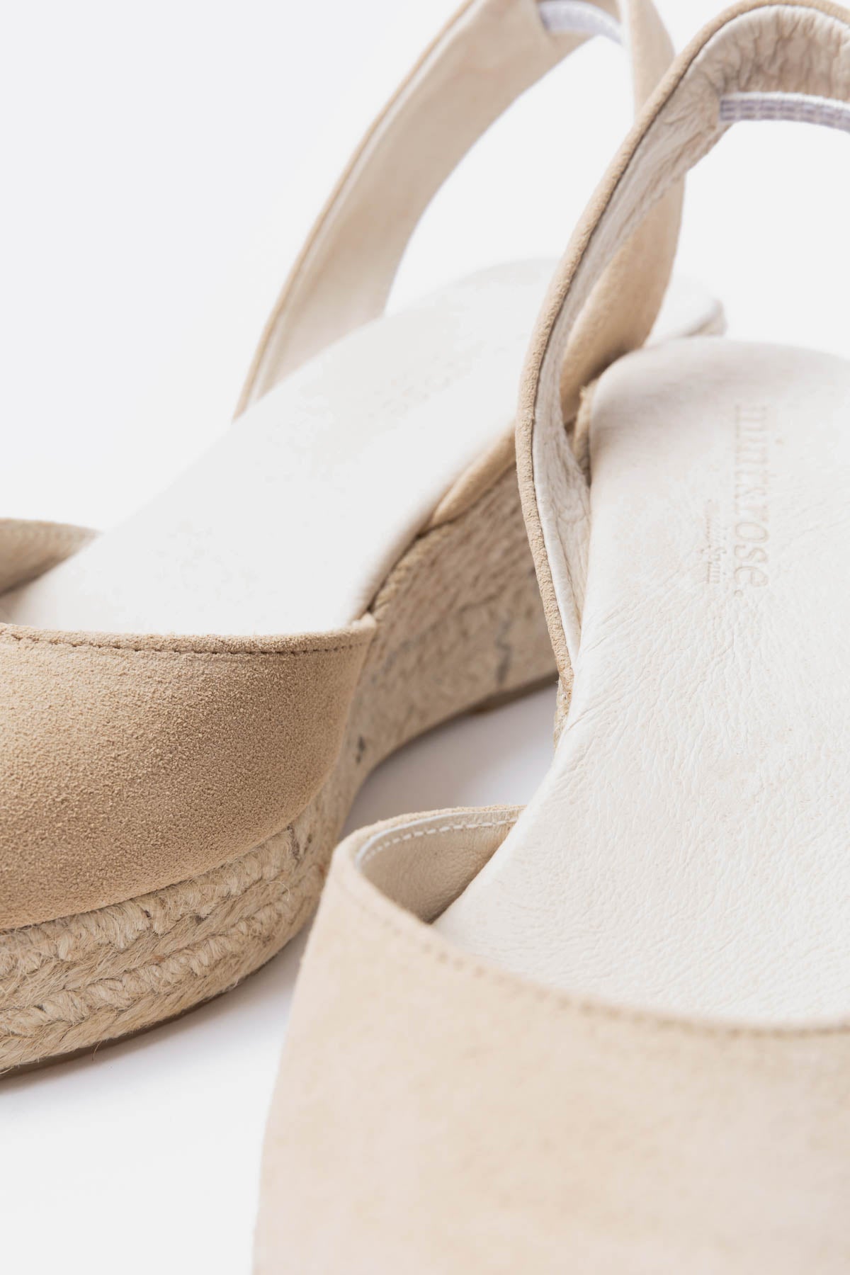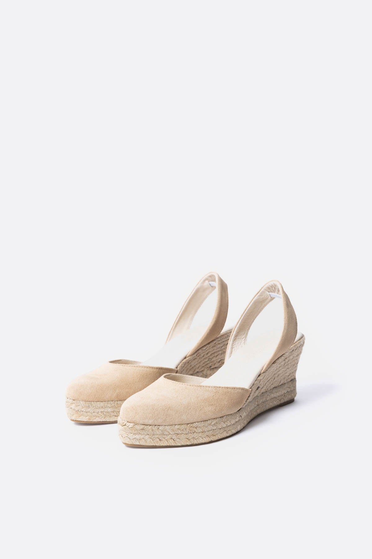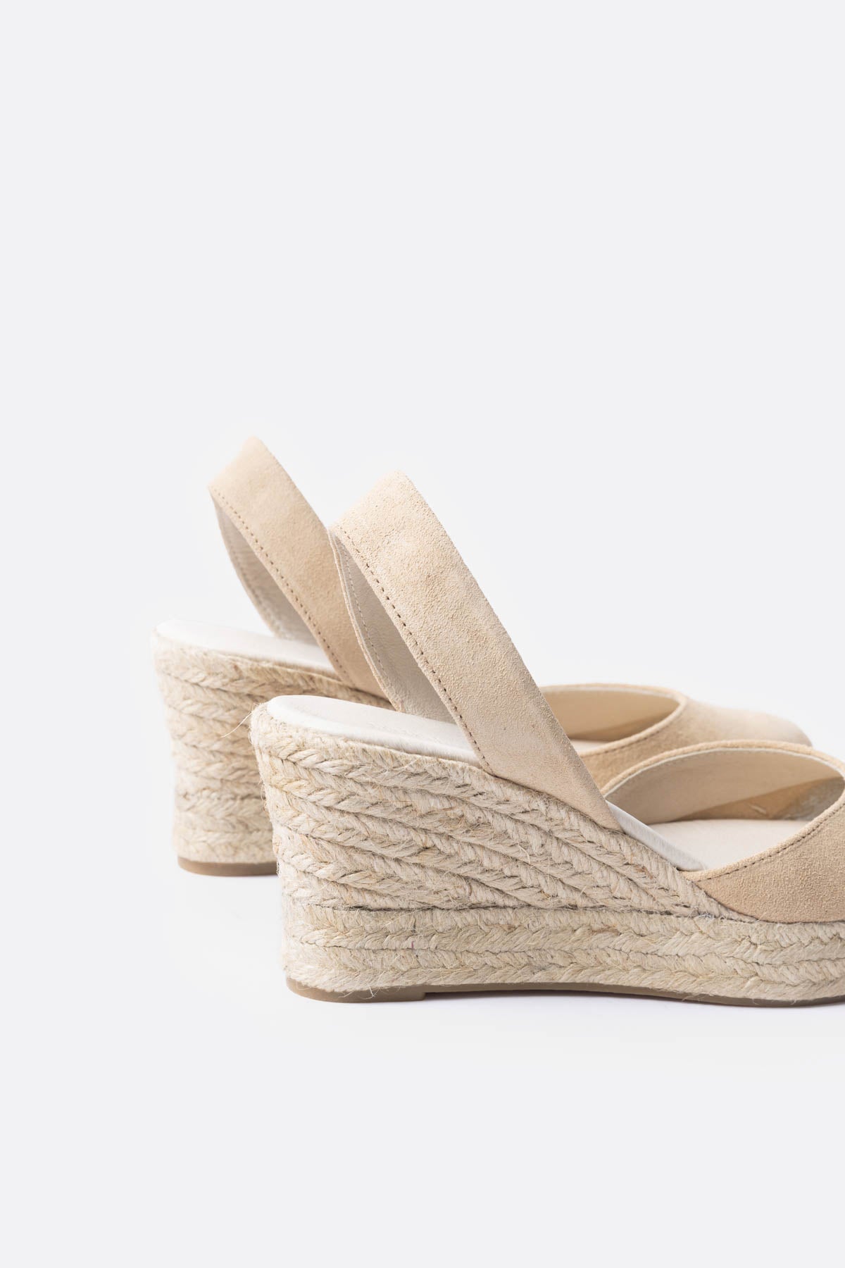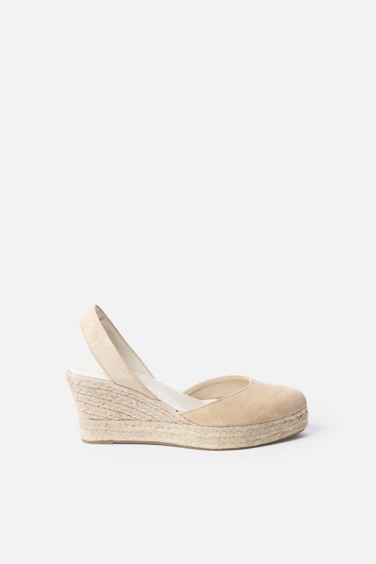 Alpargata cuña baja en piel serraje beige - 7 cm