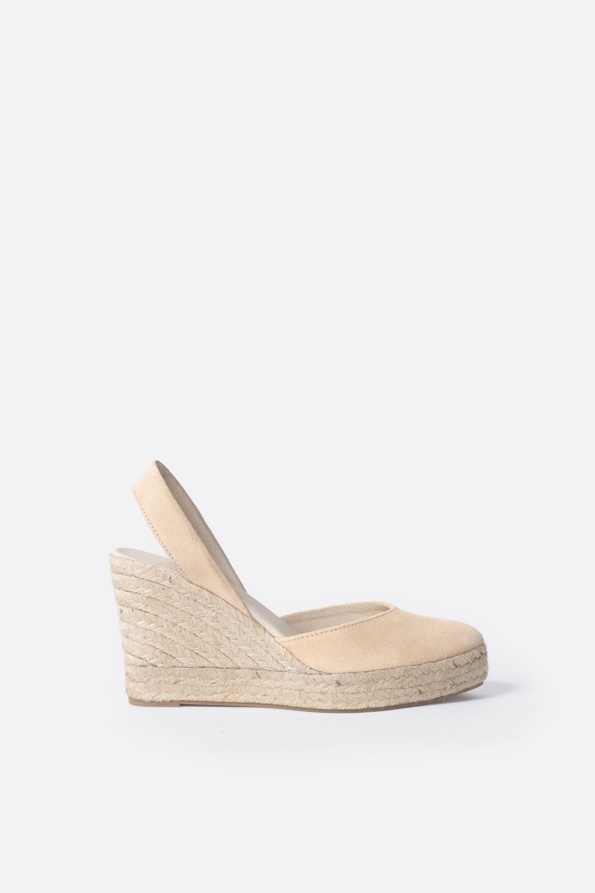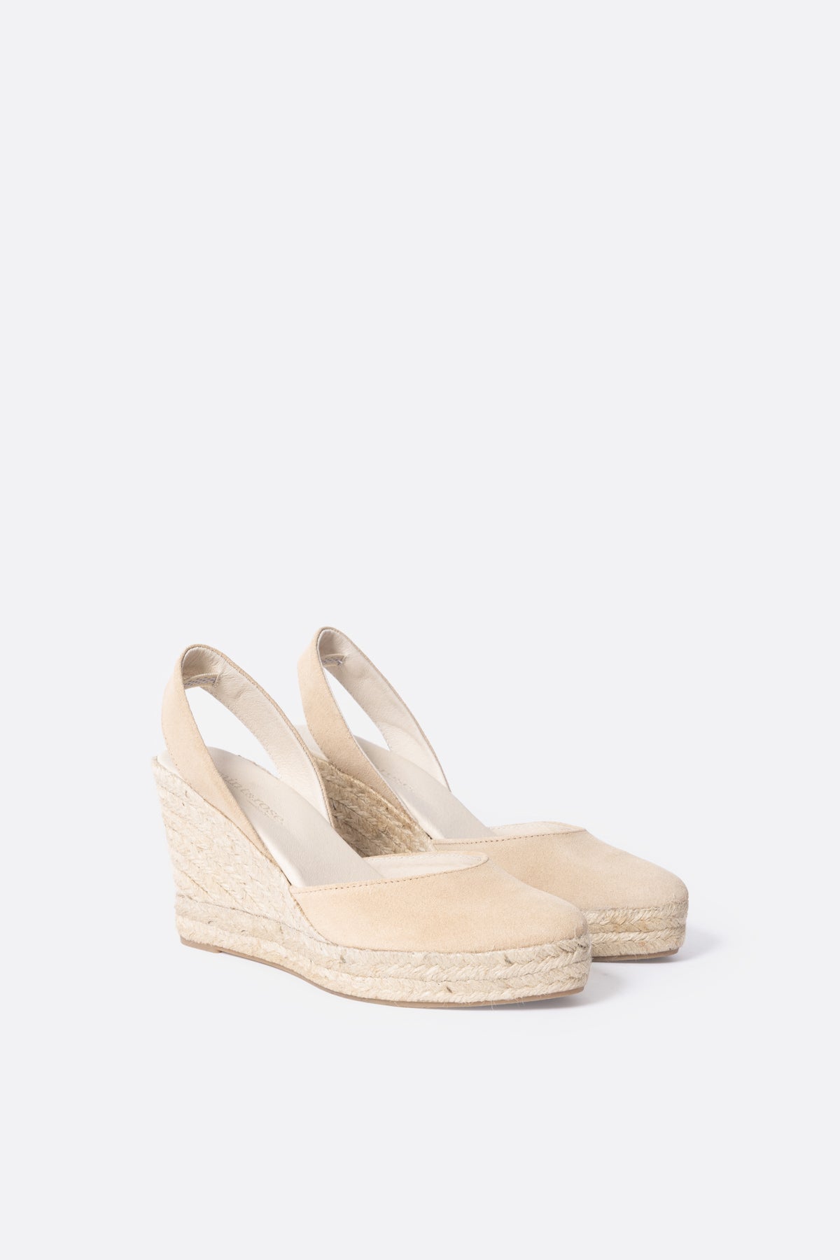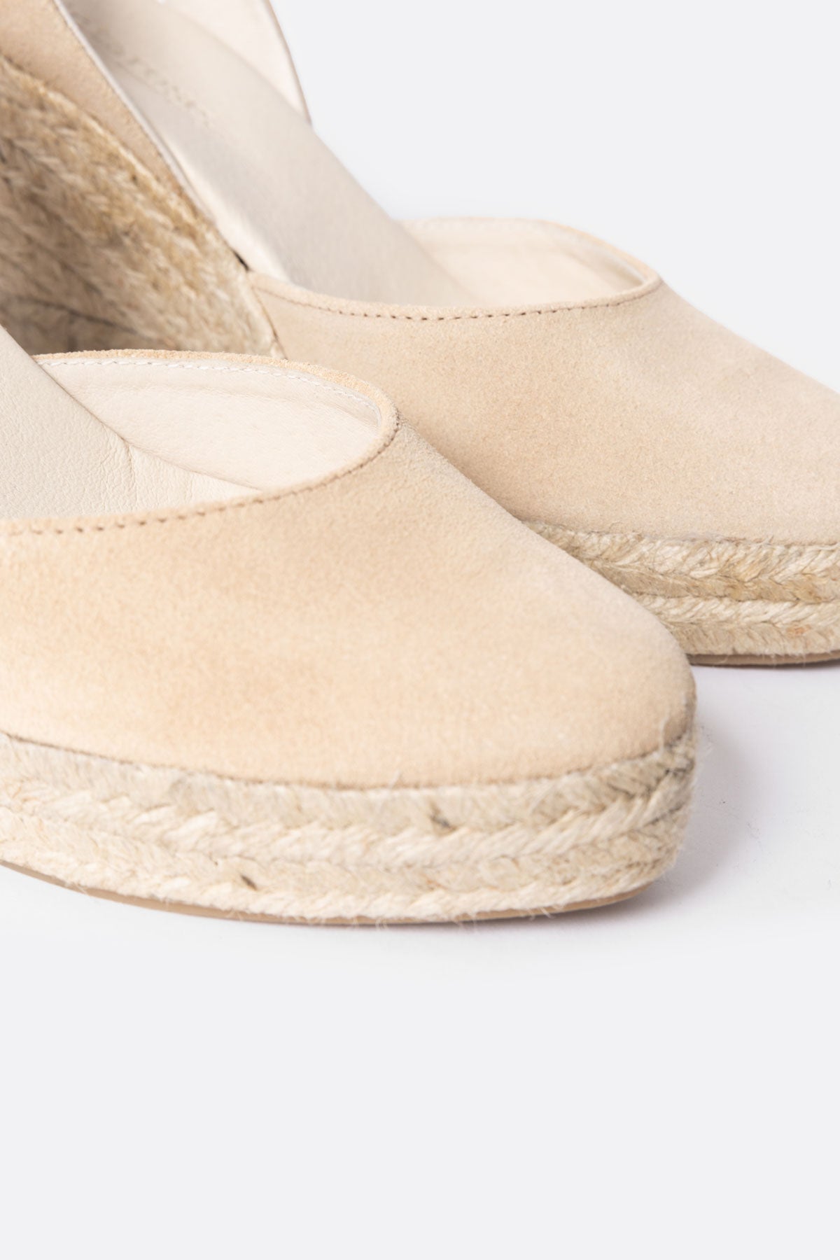 Alpargata cuña alta en piel serraje beige - 9 cm