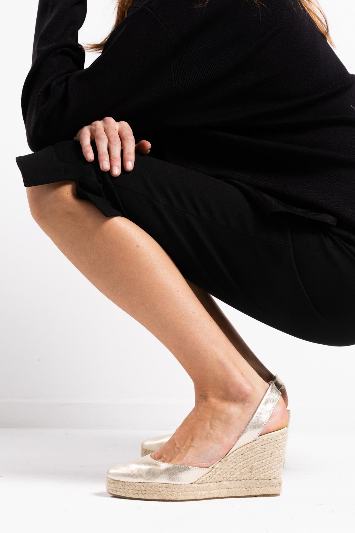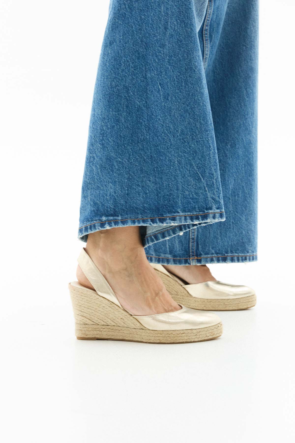 Alpargata cuña alta en piel dorada - 9 cm