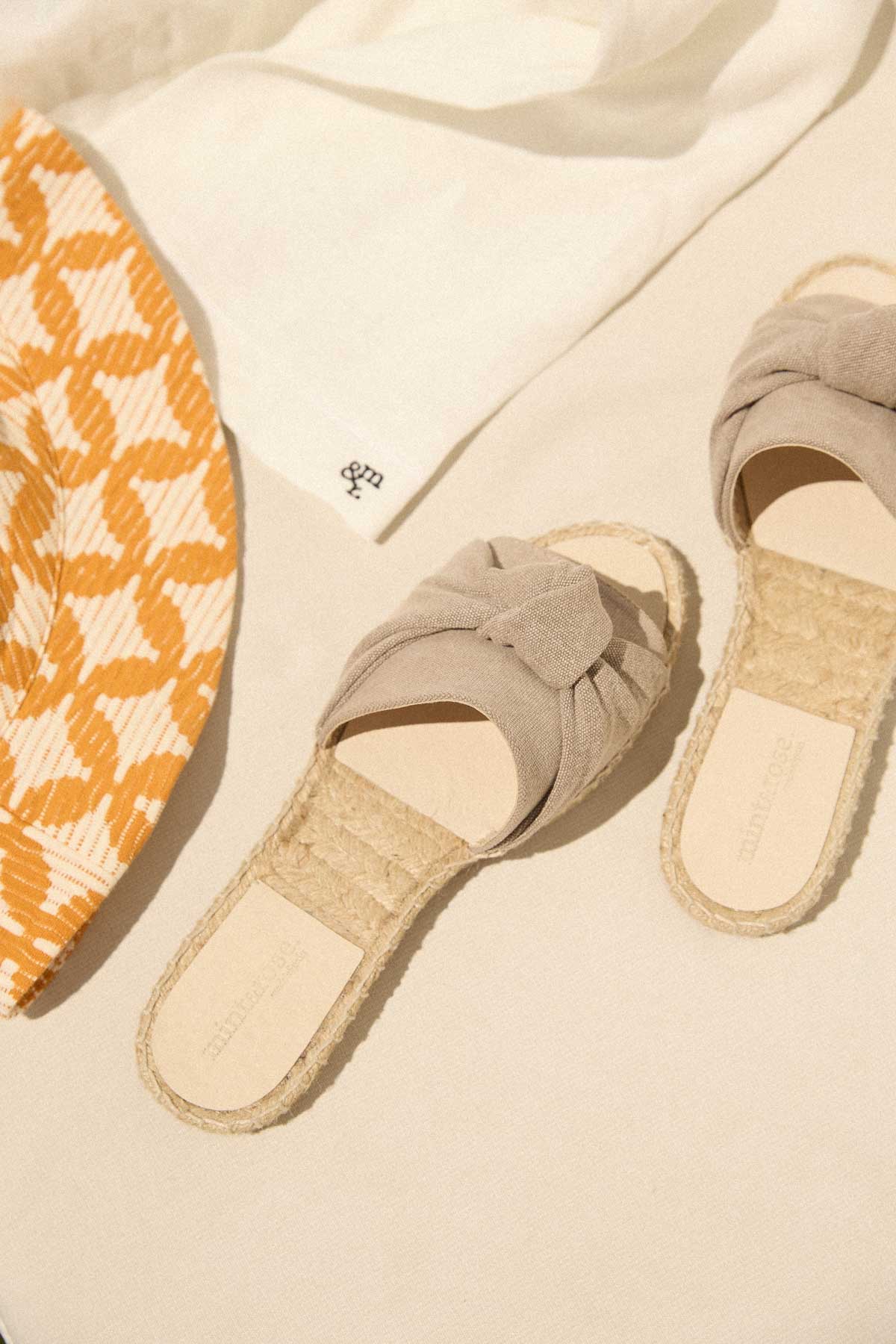 Sandalia plana en lona gris