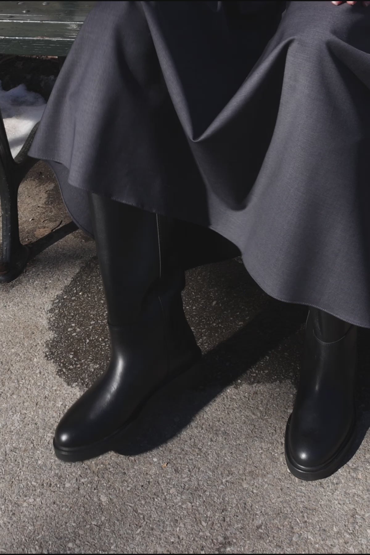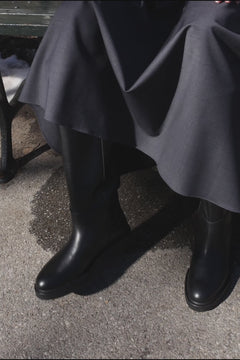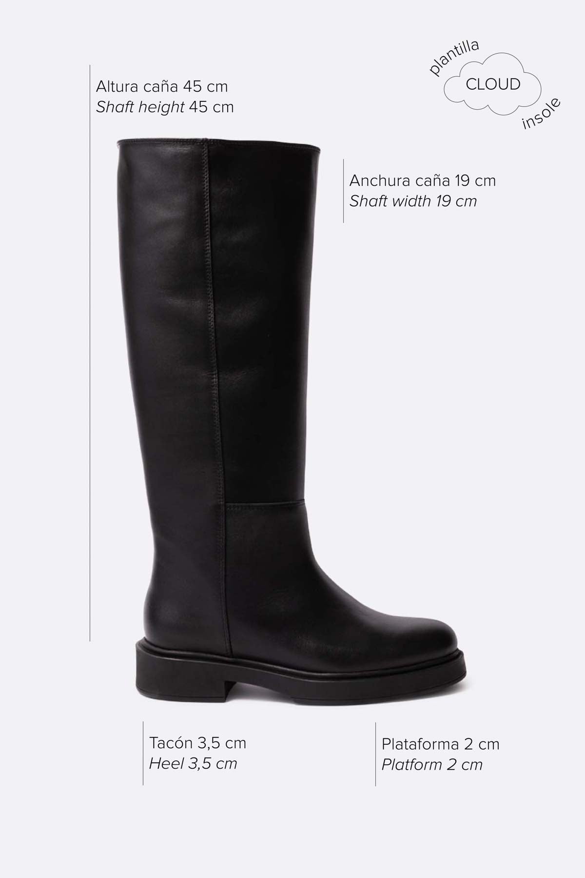 Dans ces bottes minimalistes, où moins c’est plus, le cuir doux se distingue. Hauteur de tige : 45 cm, largeur de tige : 19 cm. Talon : 3,5 cm avec plateforme de 2 cm.