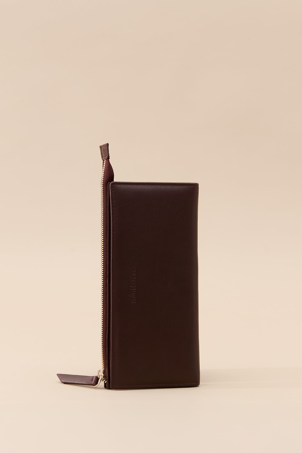 Pochette en cuir résistant, double poche avec fermetures éclair dorées. Poignées et fermetures éclair latérales ton sur ton et logo gravé au feu. Dimensions : 12,5 x 17,5 cm.