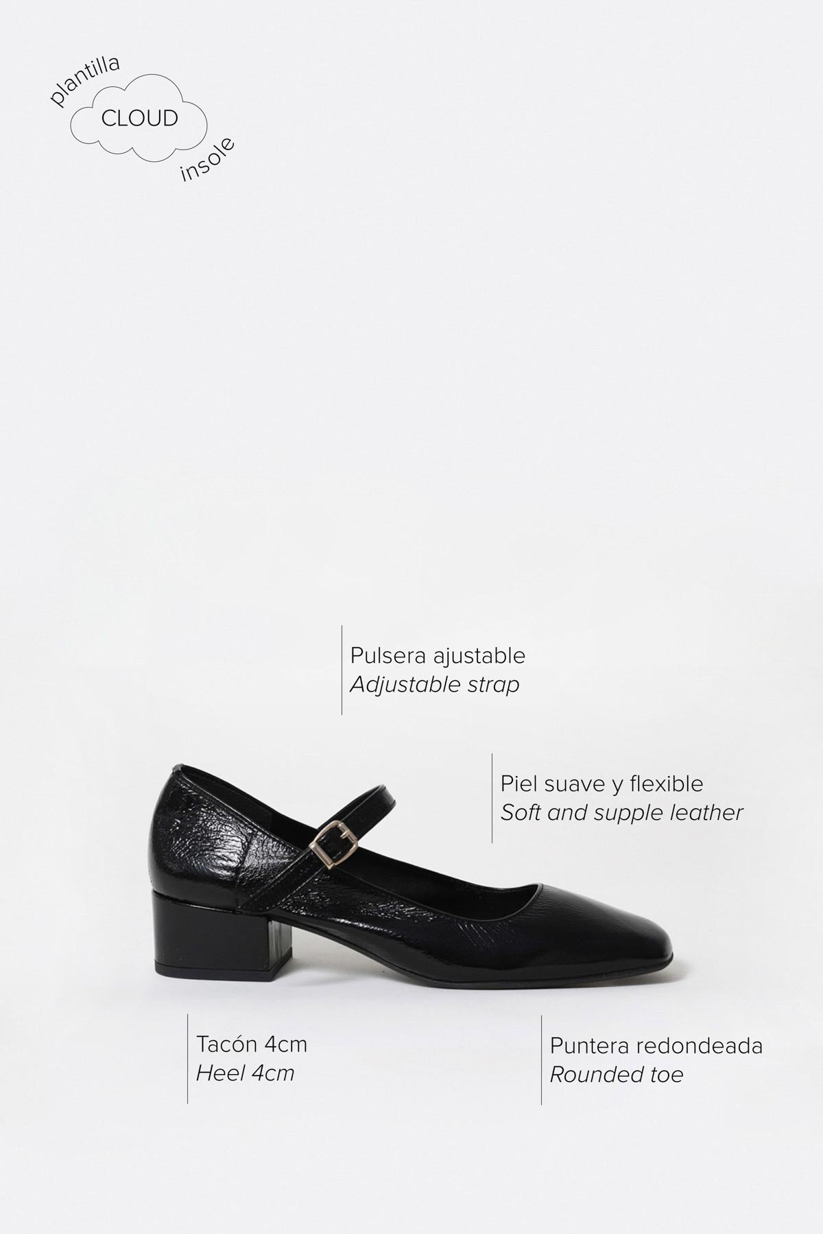 Un design versatile et intemporel, des matériaux choisis avec soin et une fabrication locale sont la carte de visite de Camila. Inspirées du ballet classique et réinventées, elles sont réalisées en cuir souple et très doux. Elles sont dotées d'un bout carré et d'une bride à boucle réglable pour un ajustement sûr. Talon de 4 cm.