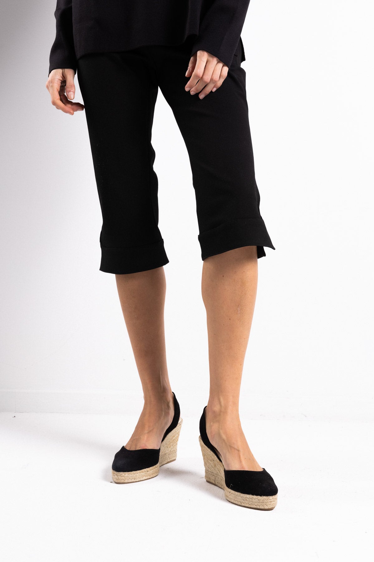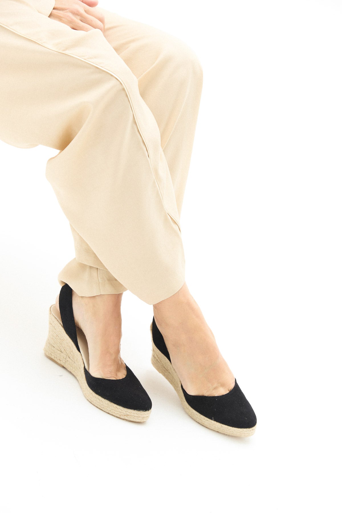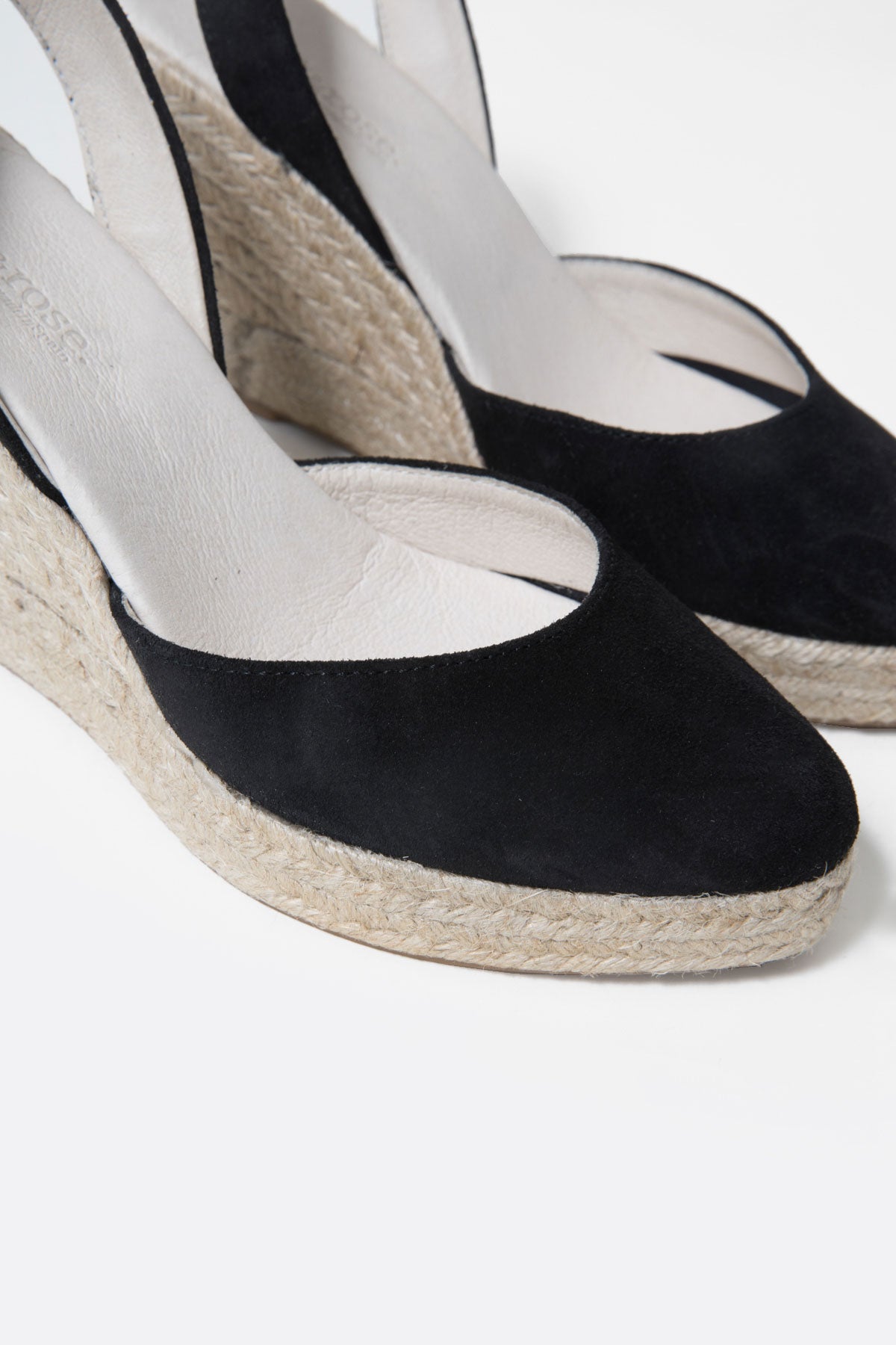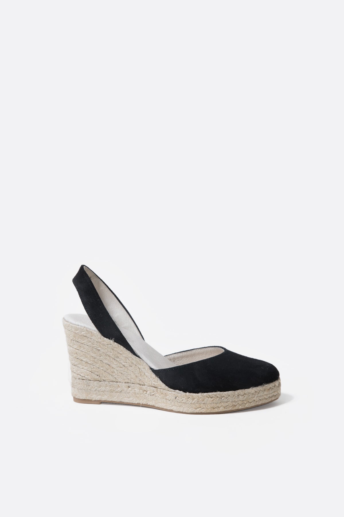 Alpargata cuña alta en piel serraje negra - 9 cm