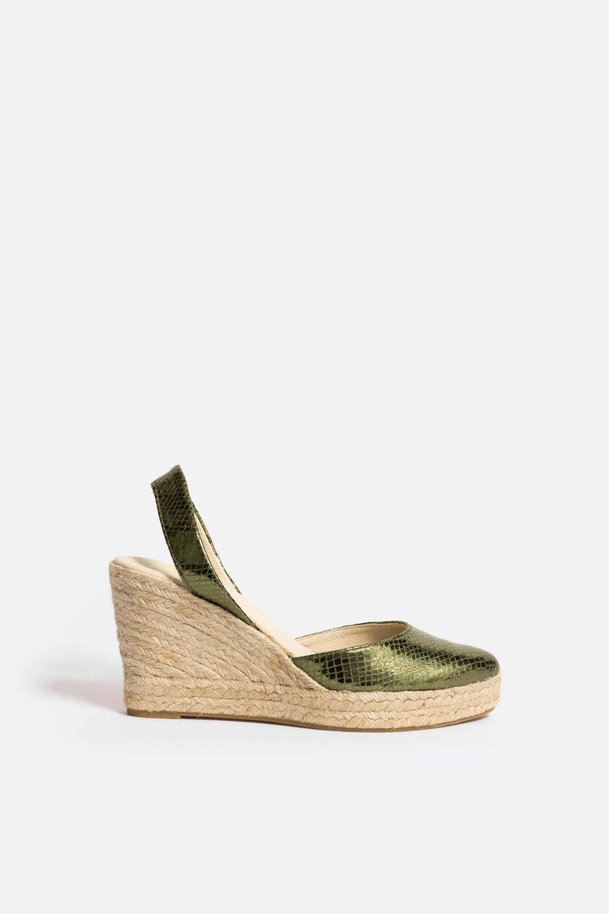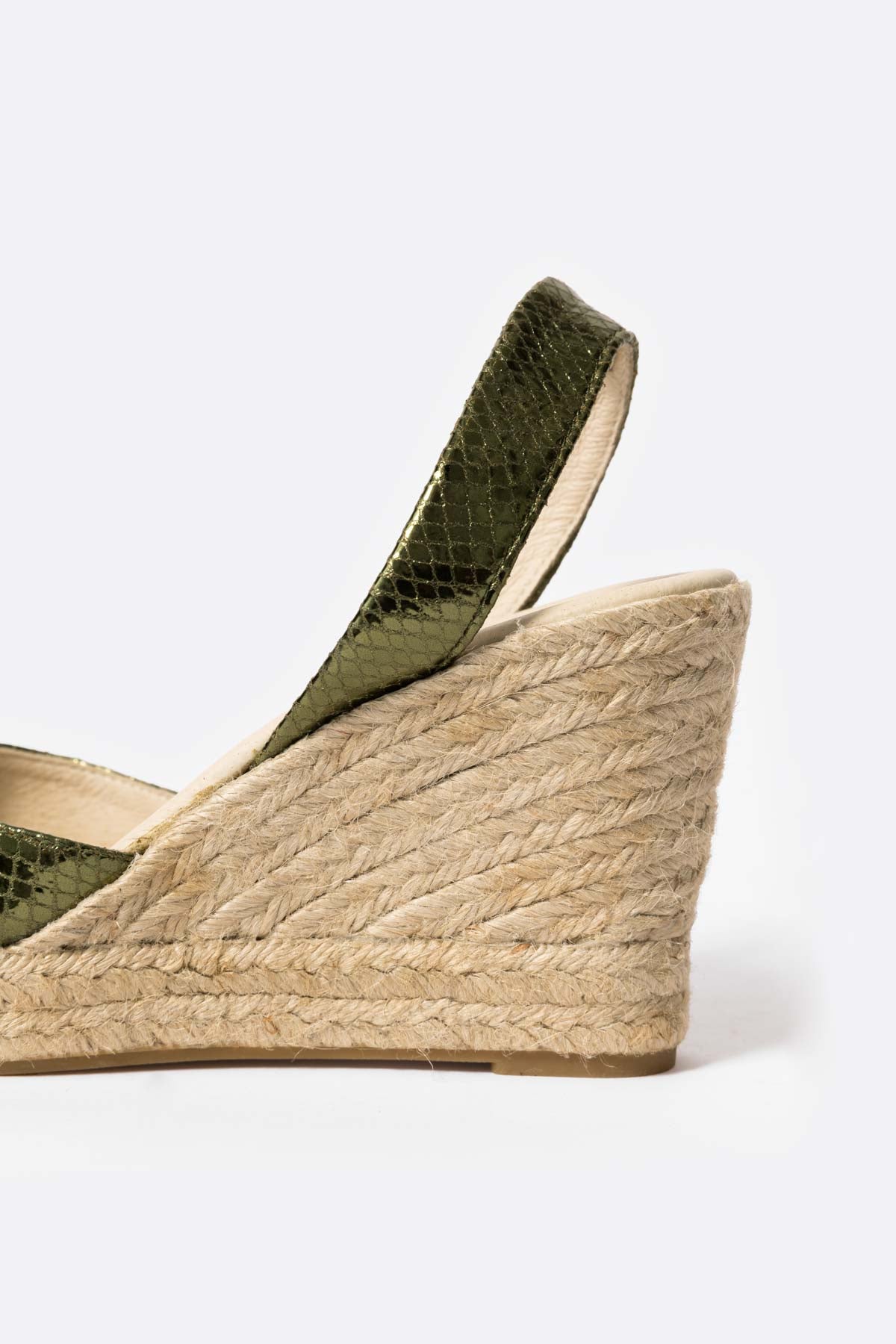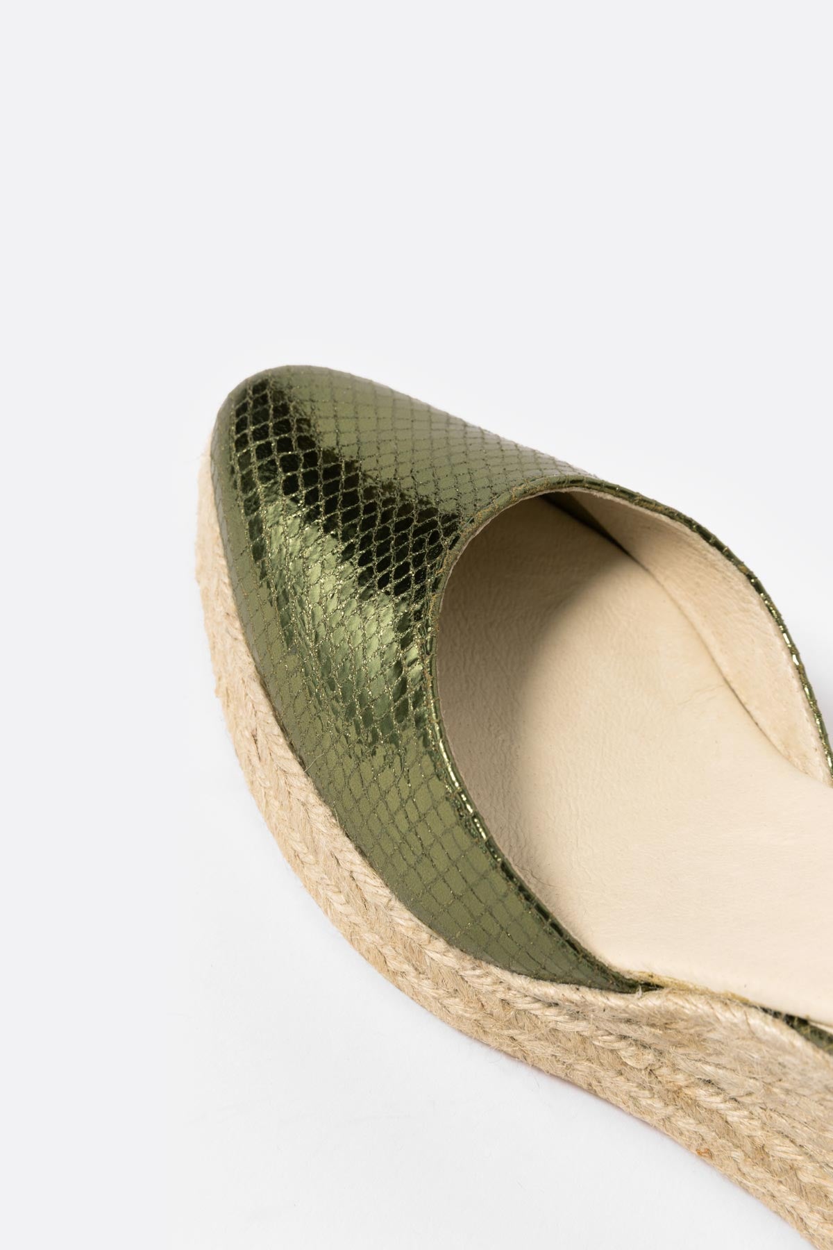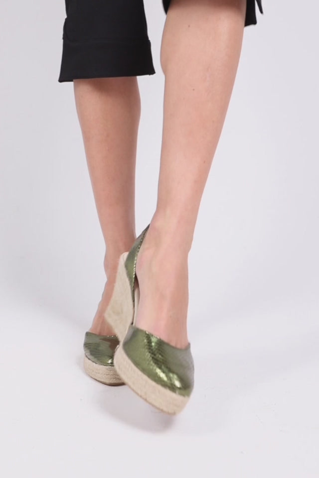 Alpargata cuña alta en piel verde metalizado - 9 cm