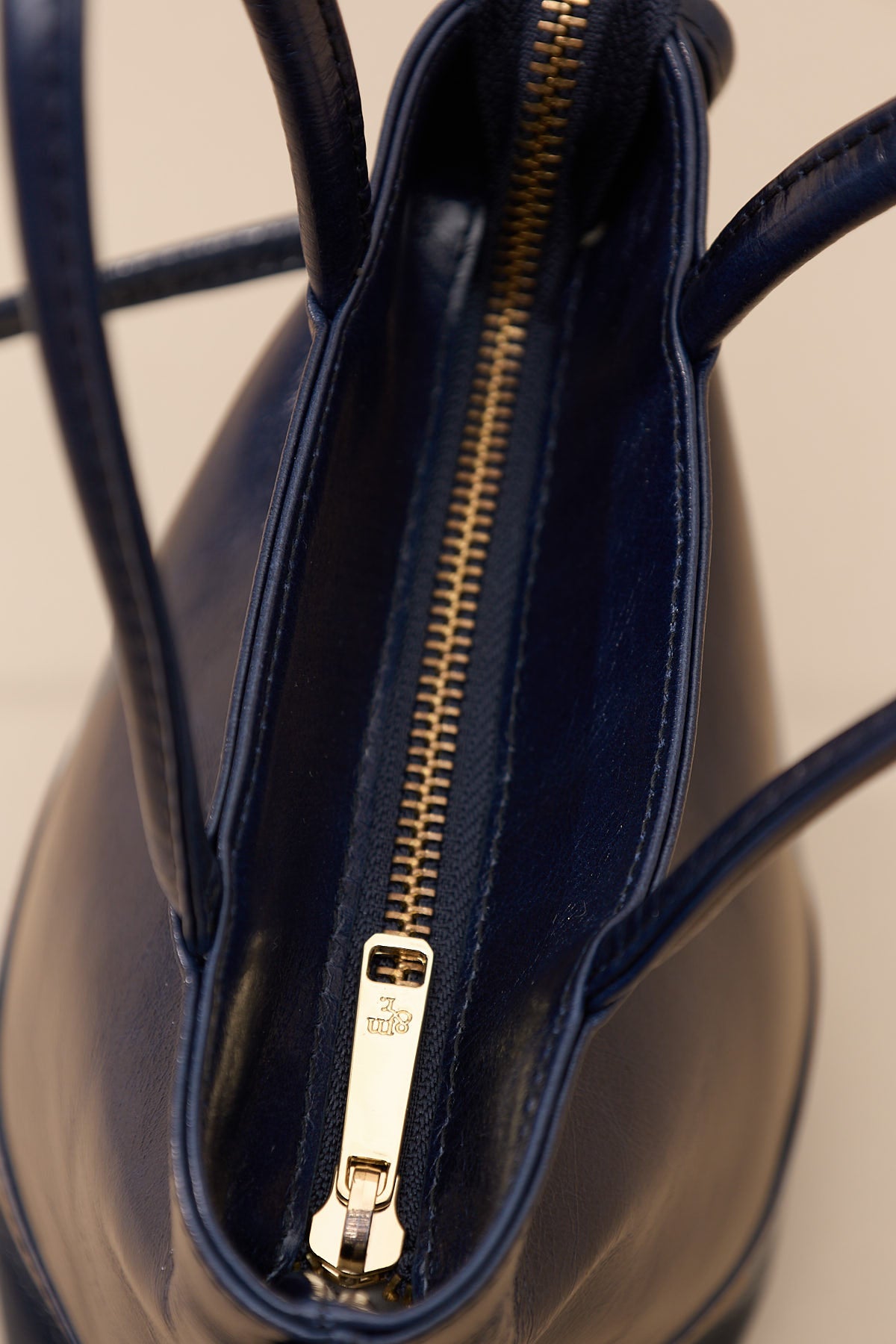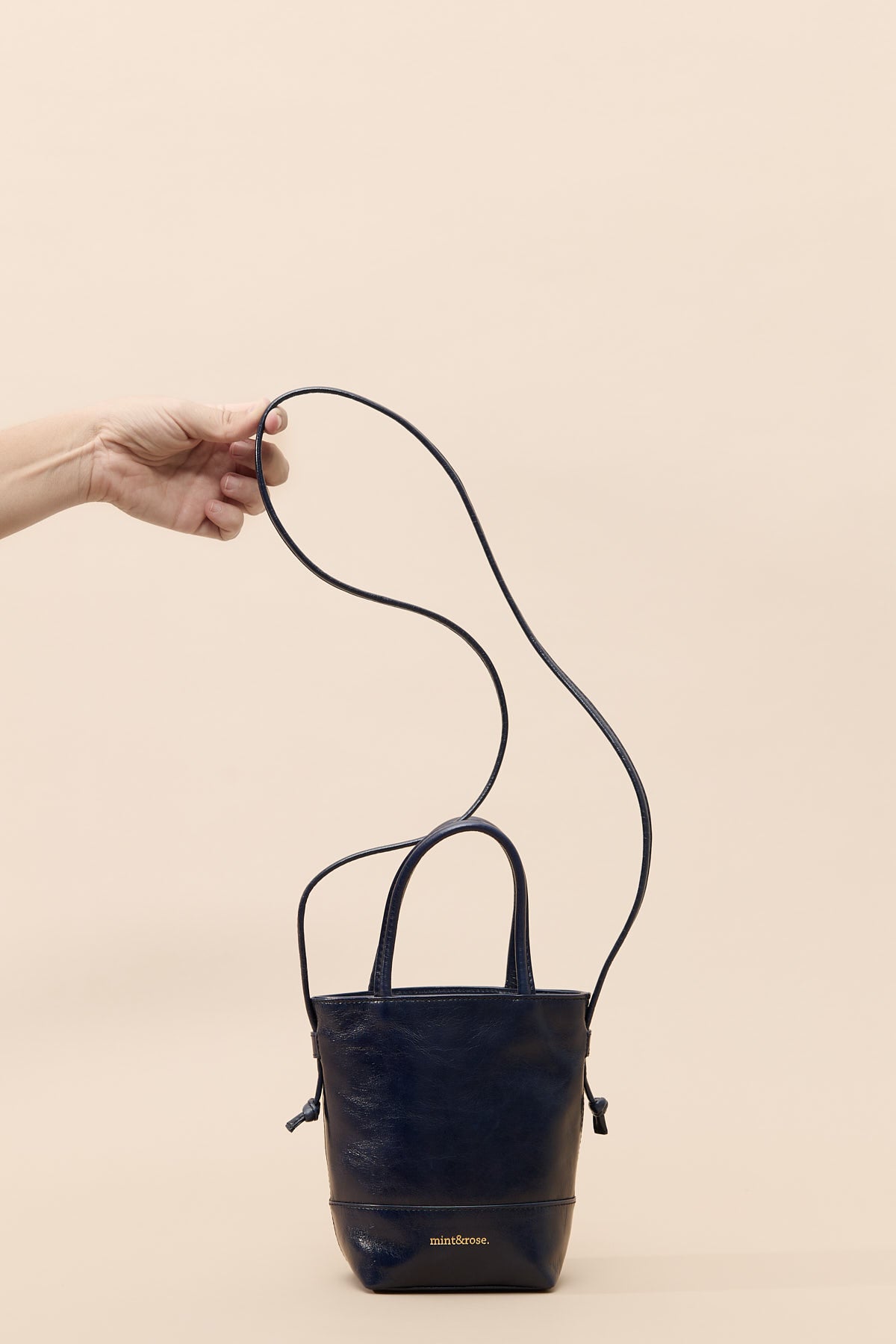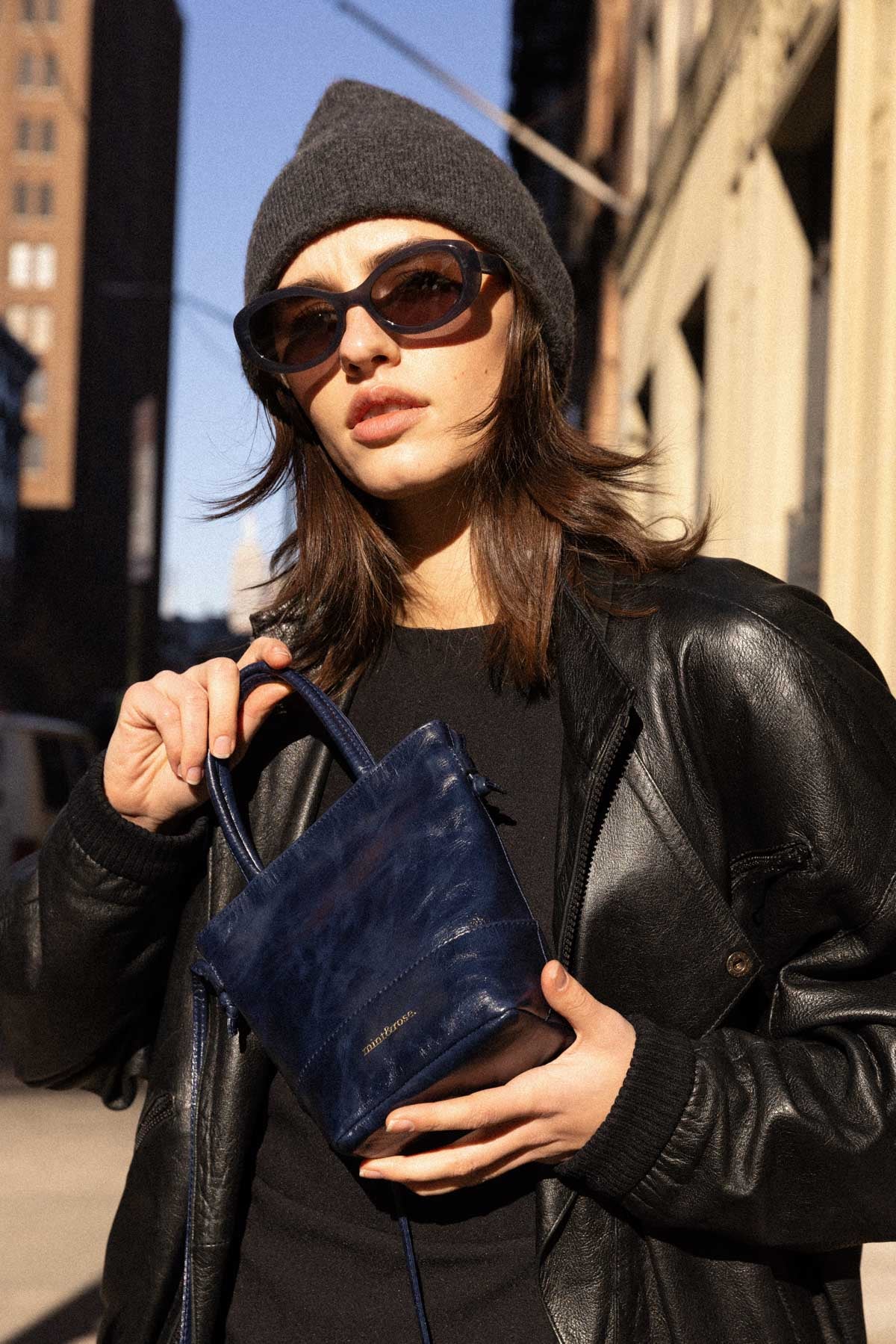 Ce qu'on aime le plus: Son cuir bleu marine et son format mini