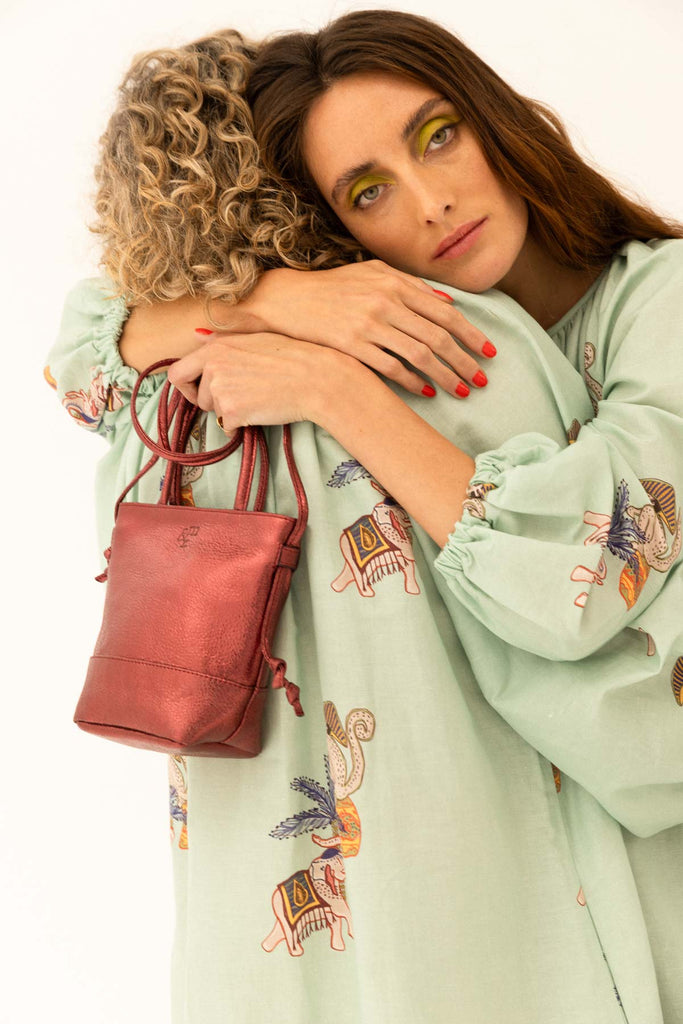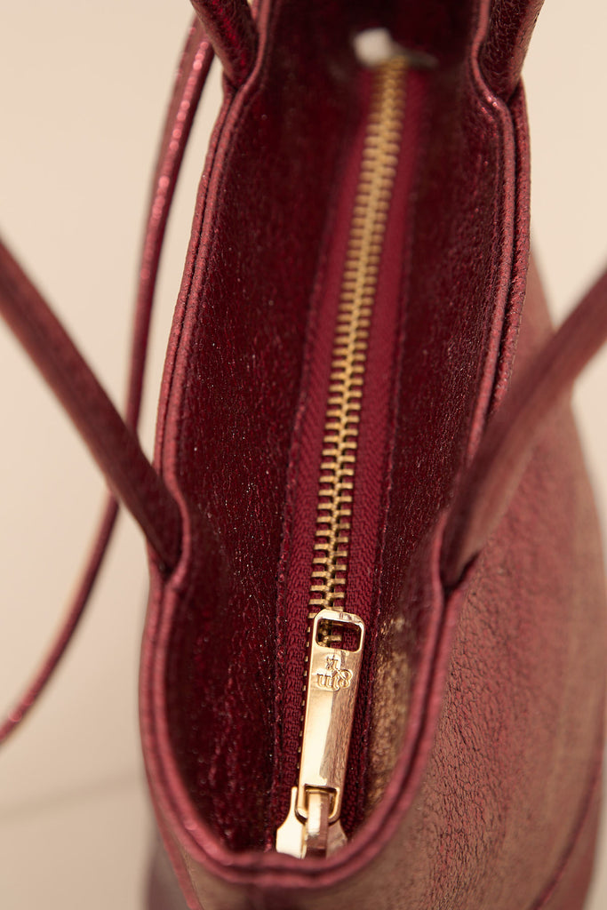 Petit sac en cuir bordeaux à double anses