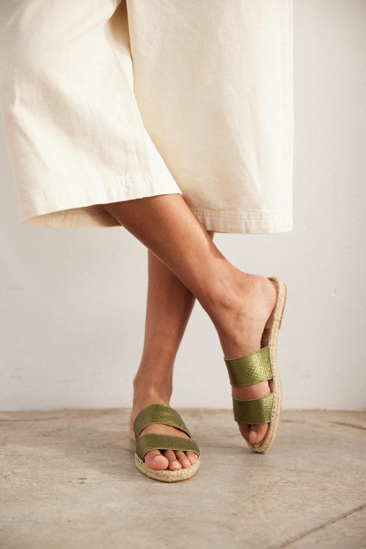 Diseño mediterráneo, producción artesanal y materiales cuidadosamente seleccionados se unen para dar lugar a las alpargatas abiertas Oia. Un clásico minimalista, súper versátil y favorecedor para llevar todo el verano.