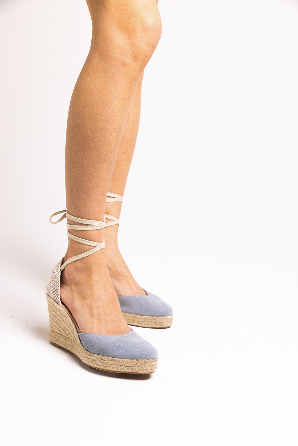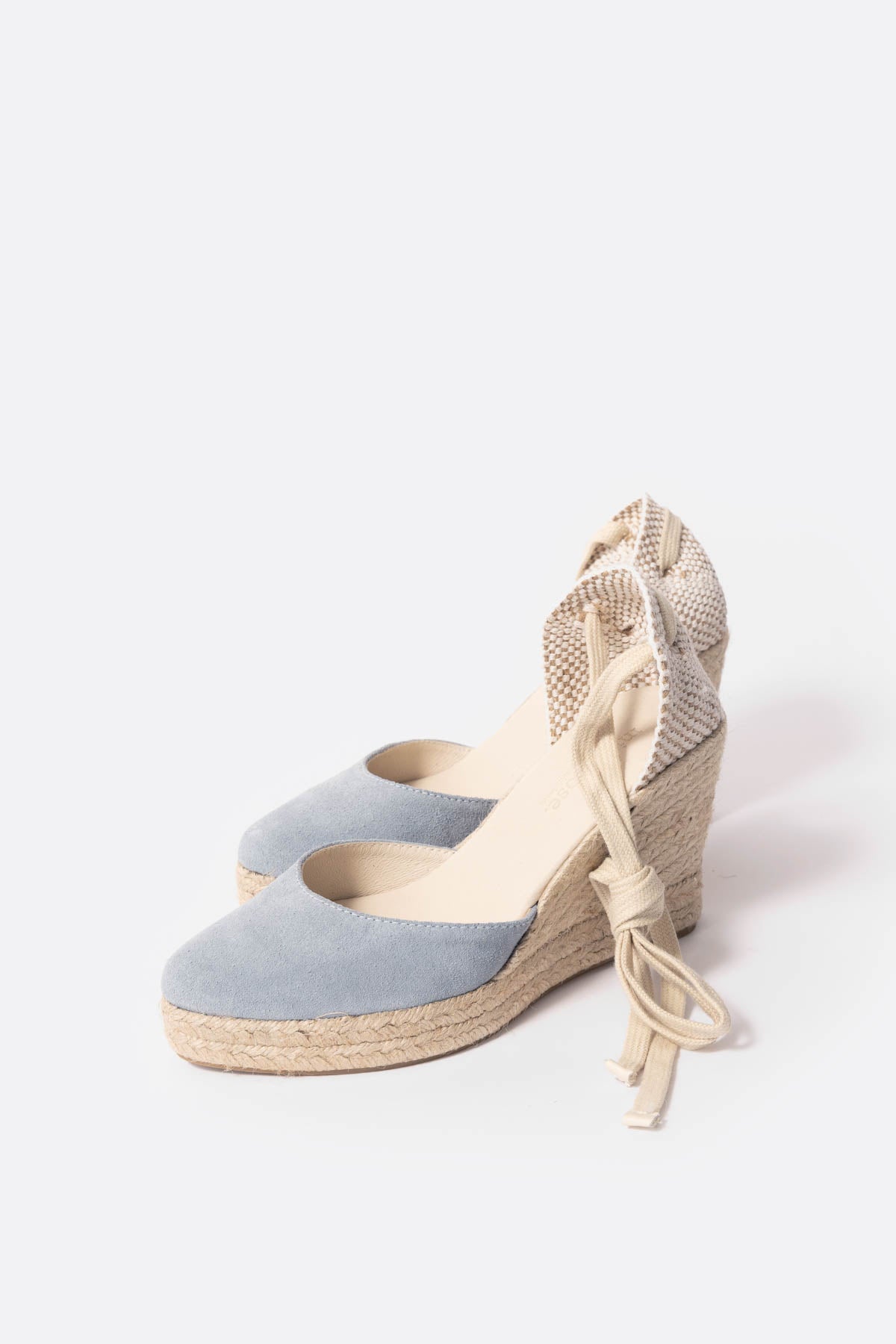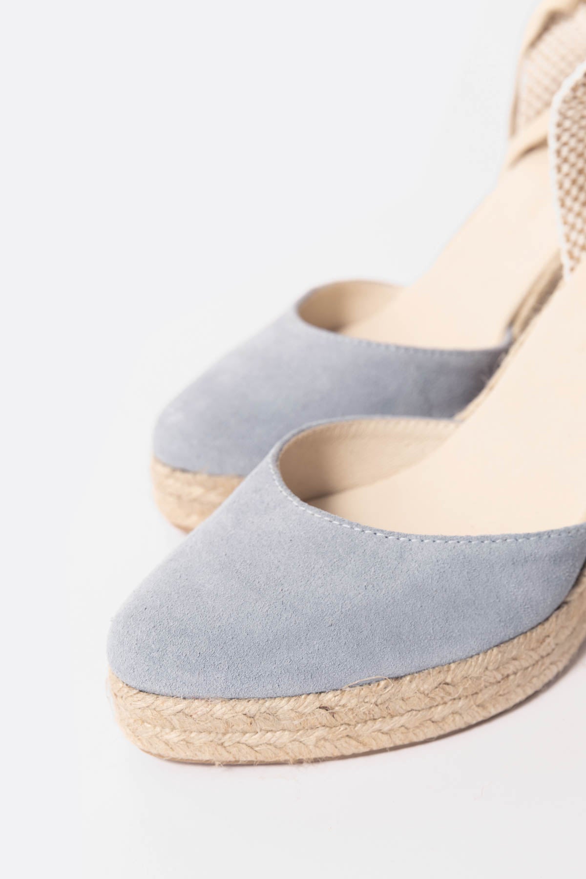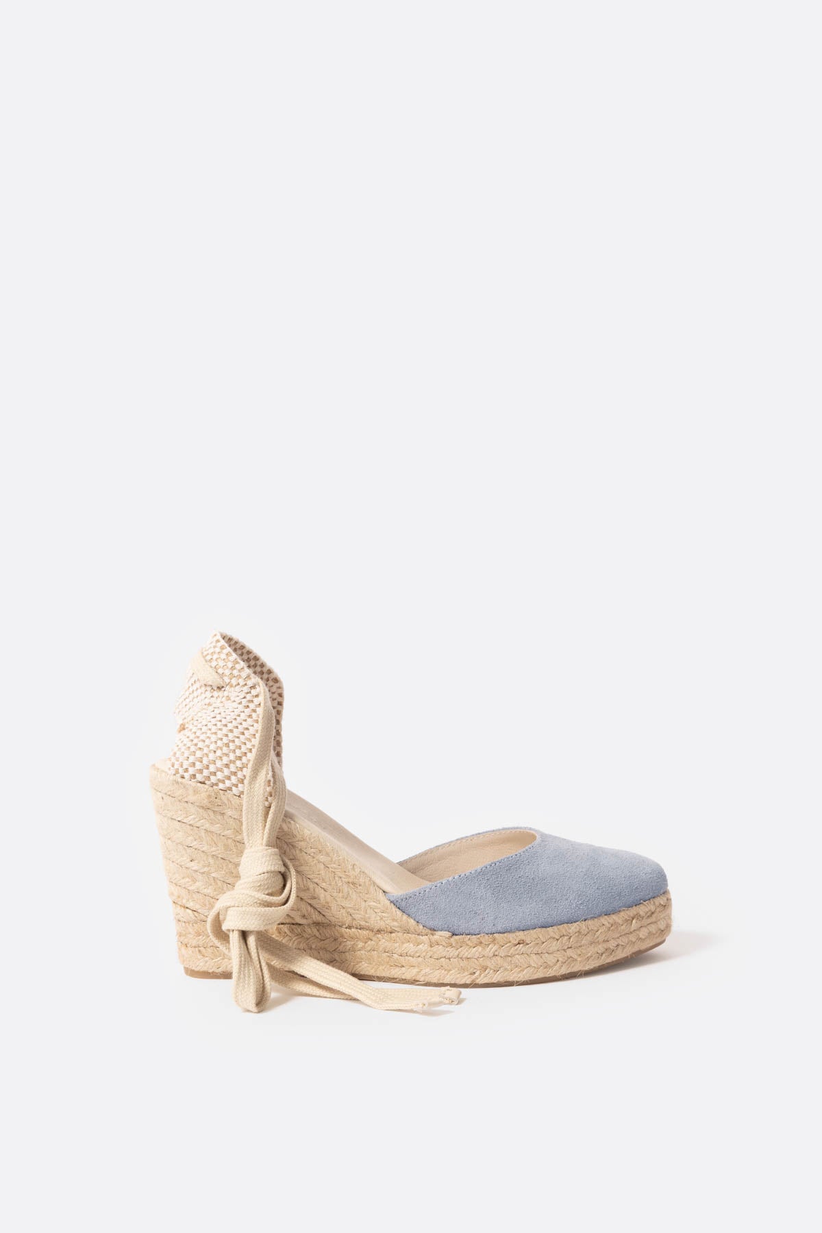 Alpargata cuña alta en piel azul celeste - 9 cm