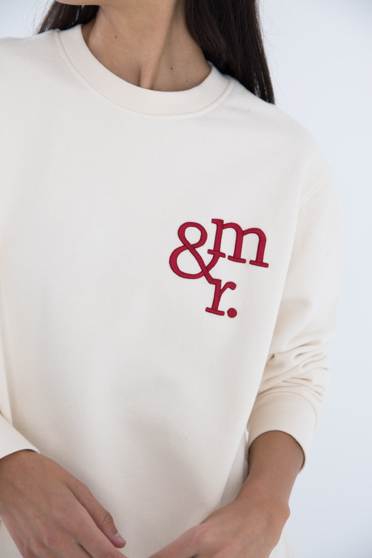 Logo mint&rose brodé ton sur ton. Chaque détail est unique. Sa fabrication est en accord avec les valeurs qui sont chères à mint&rose : artisanat, matériaux de qualité supérieure, production locale et inspiration méditerranéenne.
