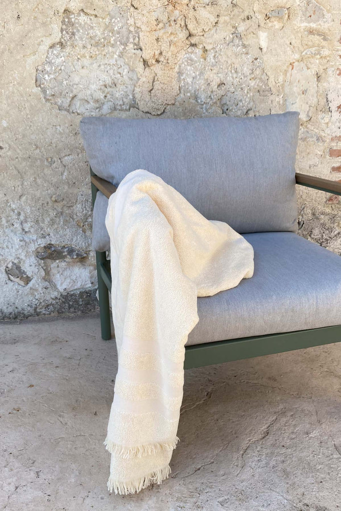Esta toalla, 100% algodón y elaborada en Portugal, ofrece una suavidad y absorbencia excepcional. Su tejido de alta calidad, cuidadosamente seleccionado, garantiza durabilidad y resistencia, mientras que su diseño y color atemporal la convierte en una opción perfecta para cualquier baño. Tamaño XL(100 x 220cm).
