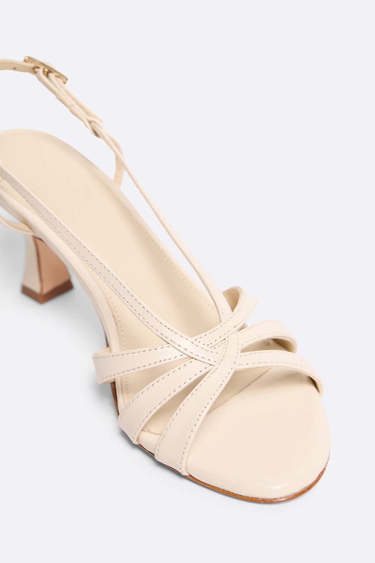 Sandalia de piel color crudo con tacón bajo