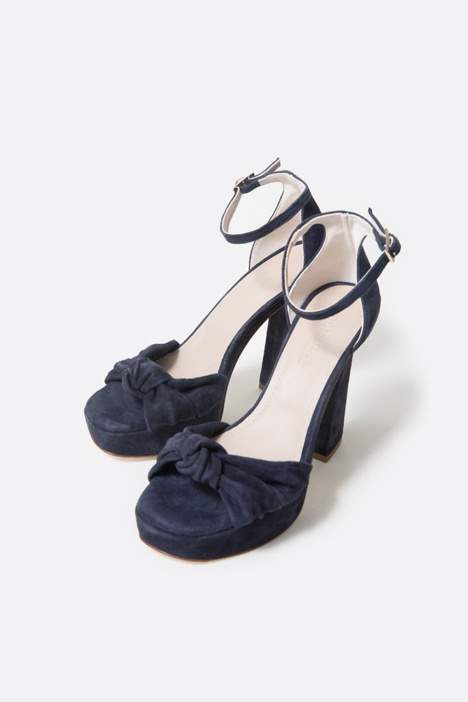 Lo que más nos gusta: su piel de ante color azul marino muy oscuro.