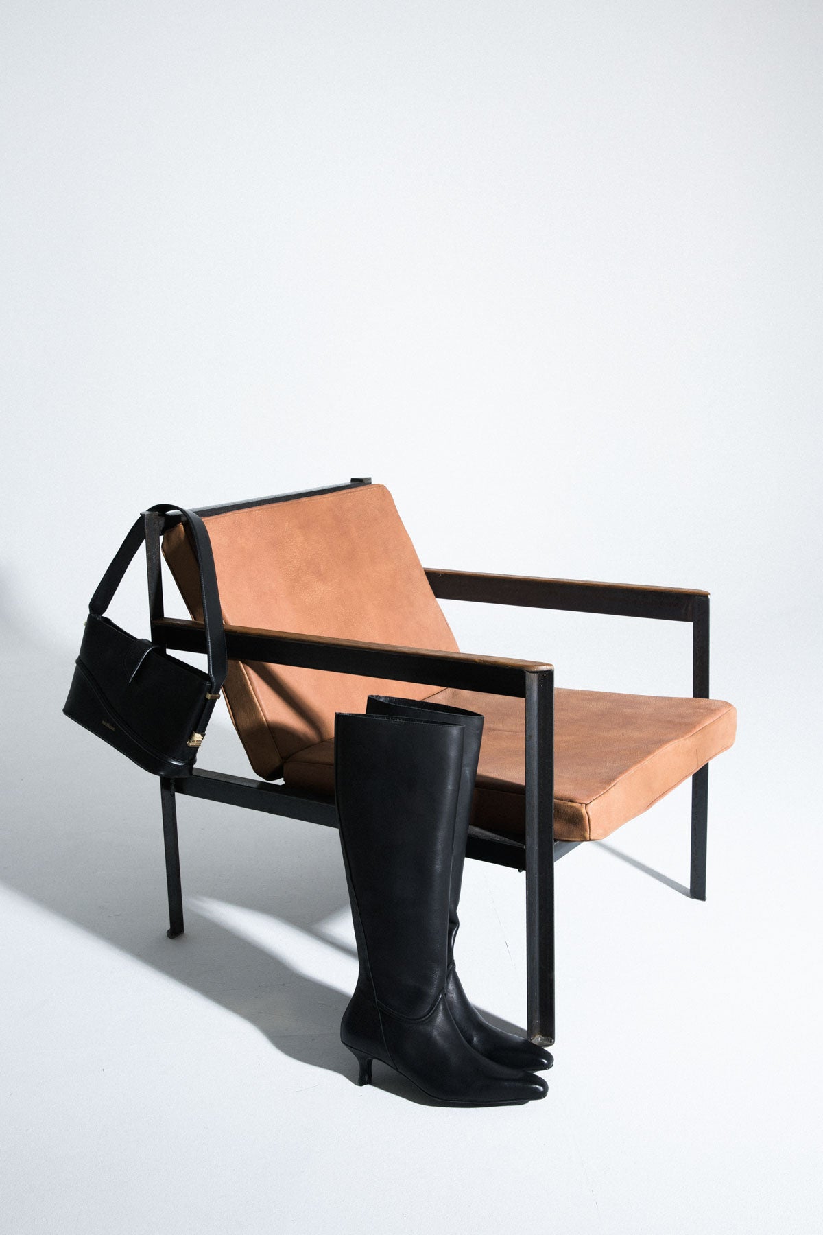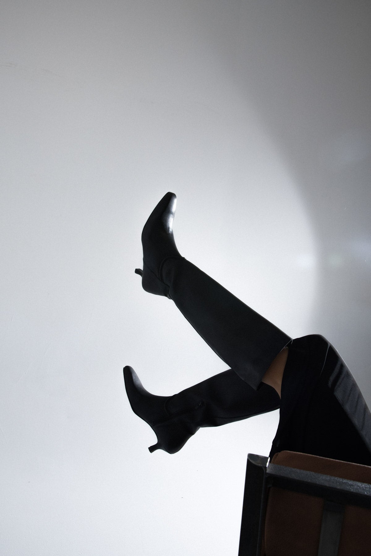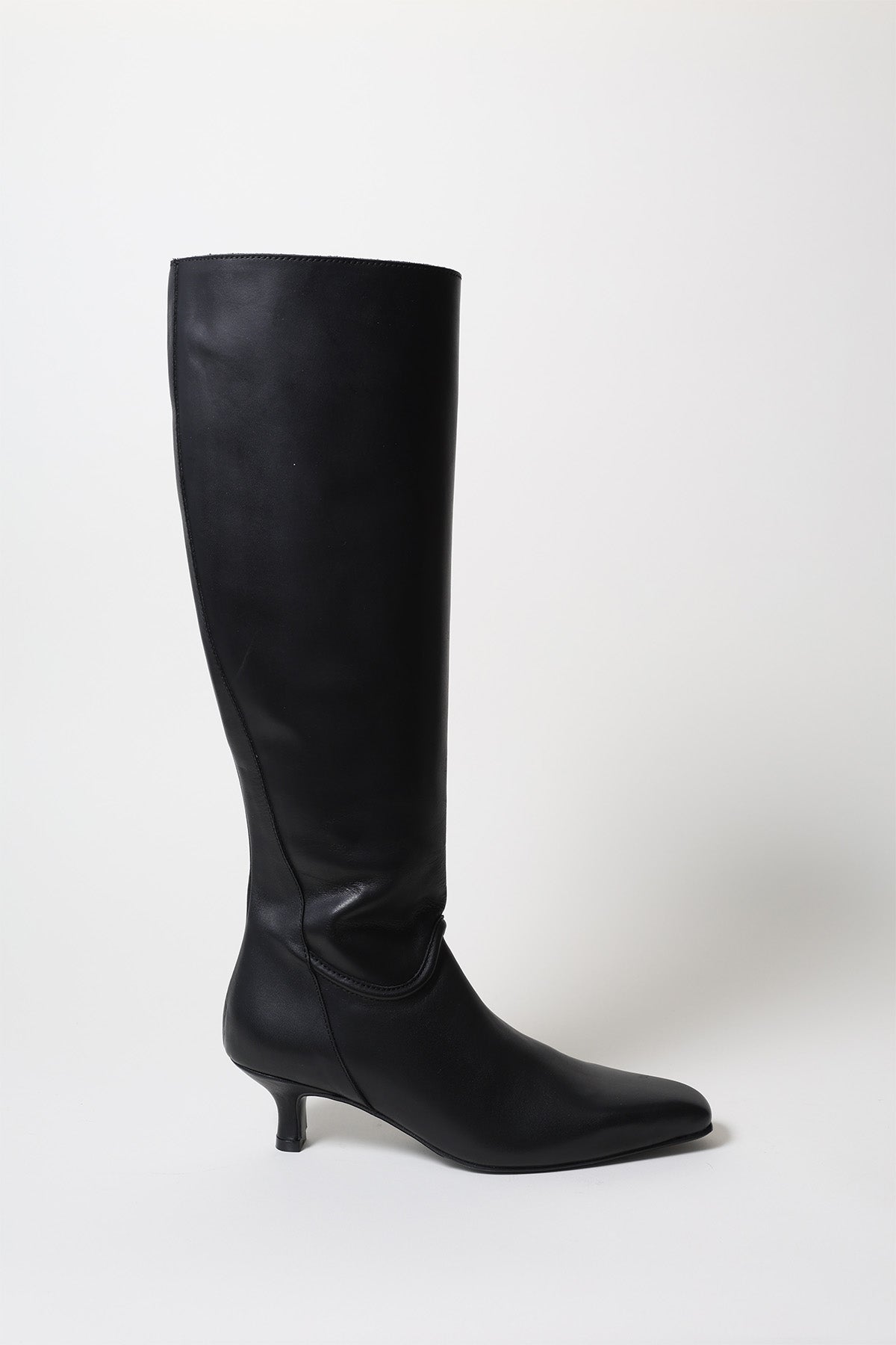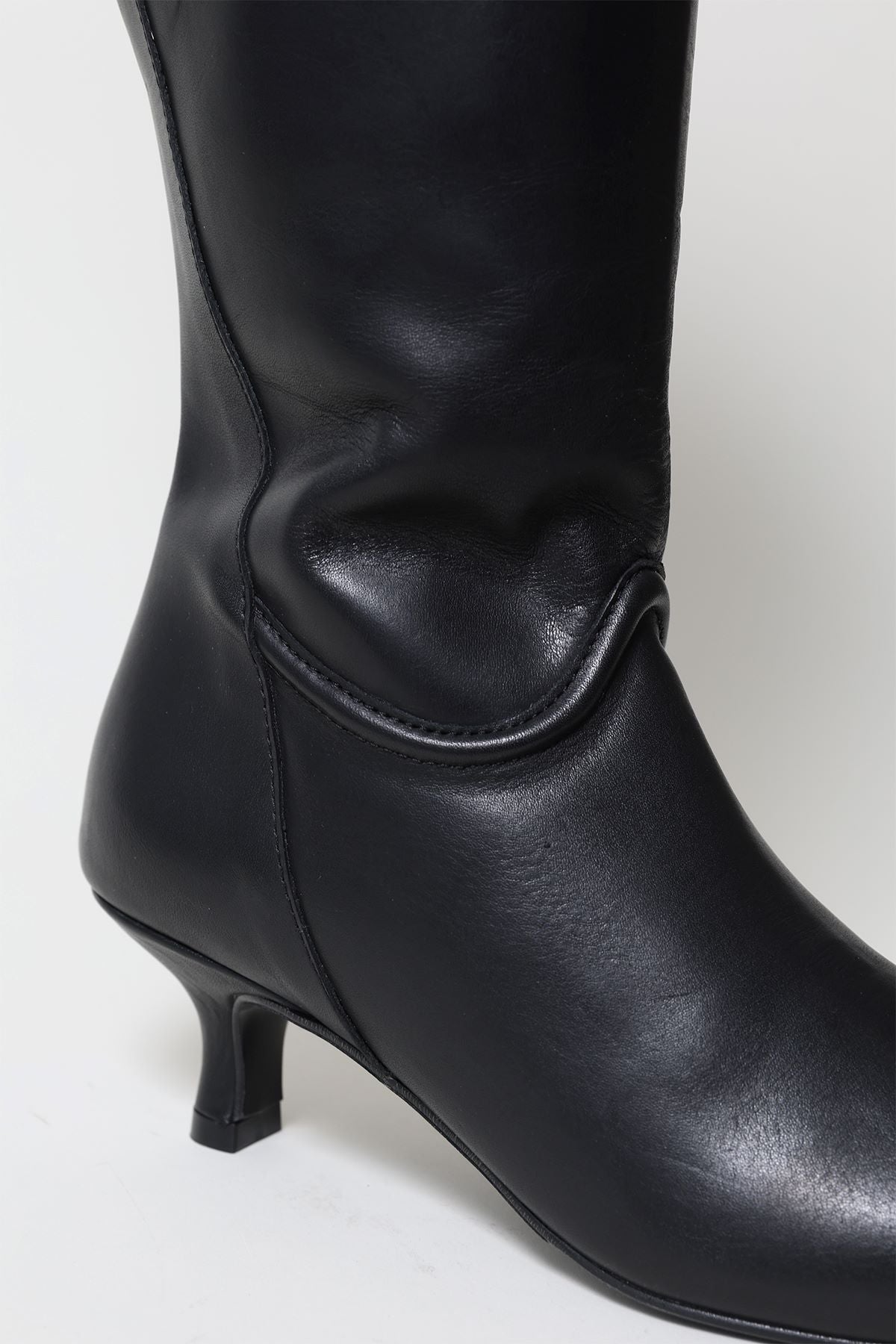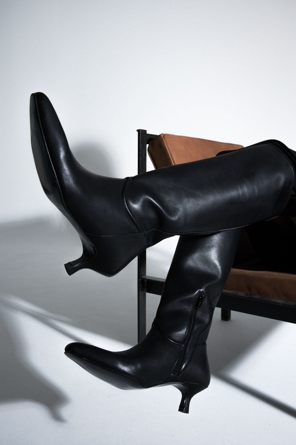 Las botas Bettie están hechas por artesanos españoles a partir de piel de la mejor calidad. Bettie es la versión en bota del botín Bettie. Ambas comparten una puntera alargada con final semi cuadrado y una delicada onda pespunteada decorando la parte delantera, presente en el resto de modelos de la cápsula. Altura de la caña: 16 cm hasta el inicio del tacón. Altura de la caña: 42 cm hasta el empiece del tacón. Anchura de la caña: 16 cm (parte alta) a 12 cm (tobillo). Cremallera al tono. Tacón de 5 cm.