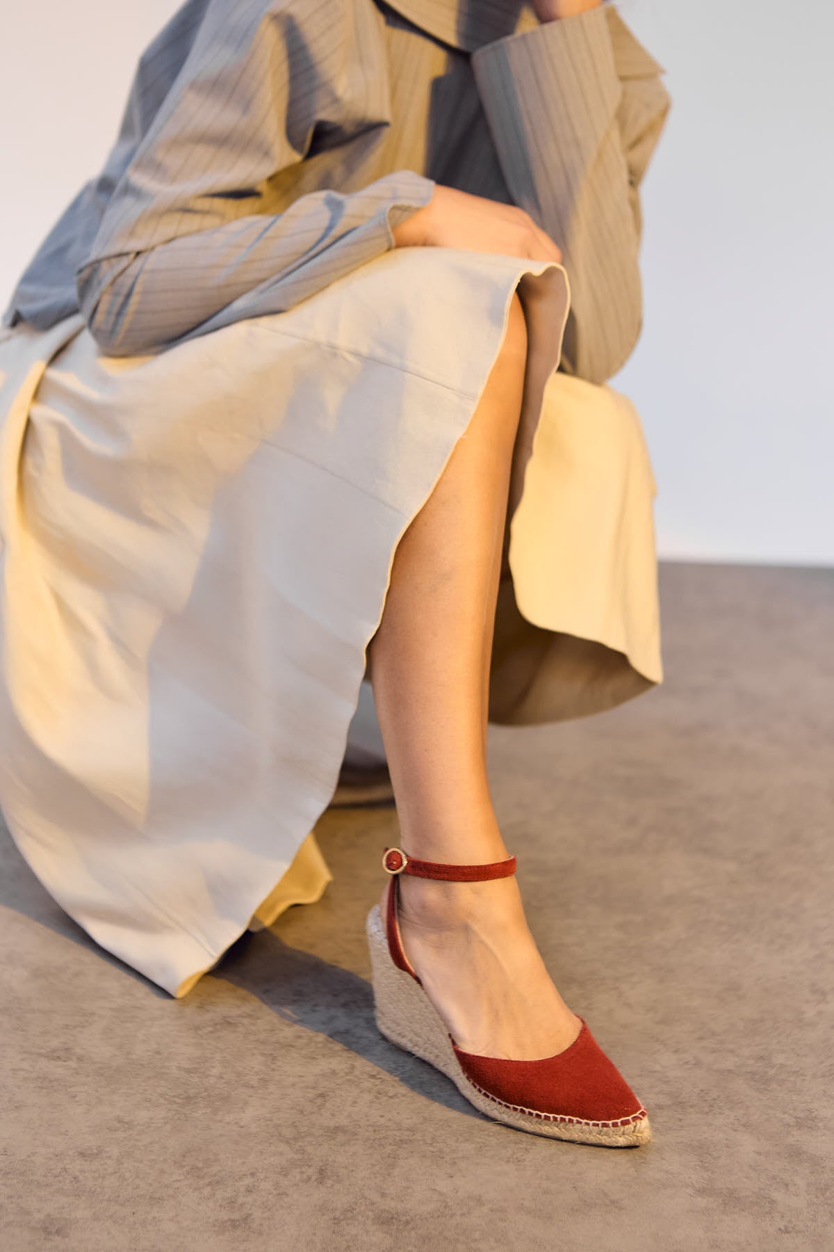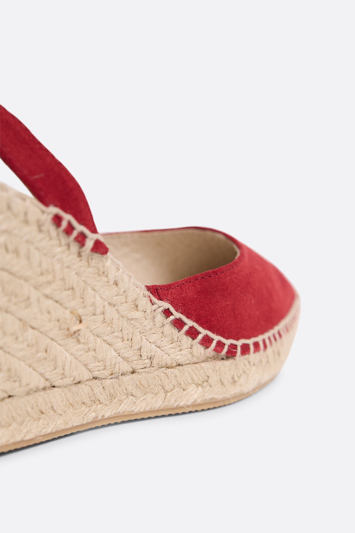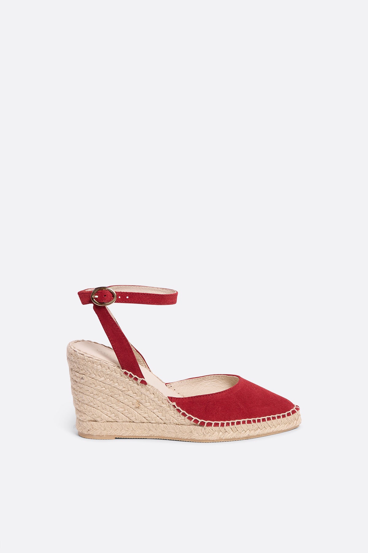 Alpargata de serraje rojo cereza con cuña alta