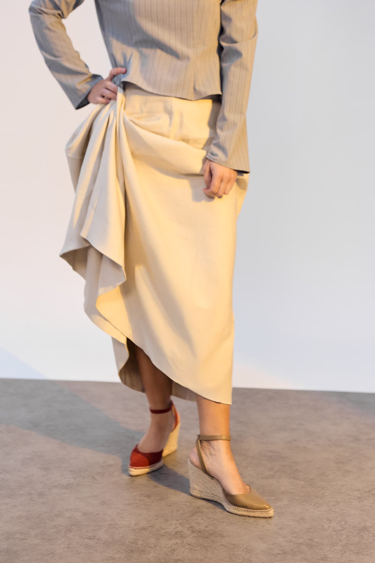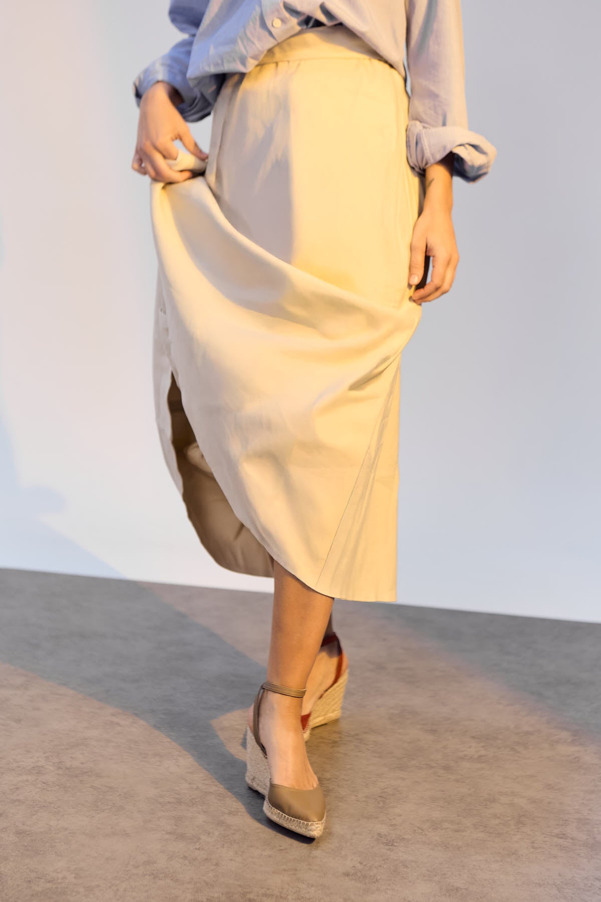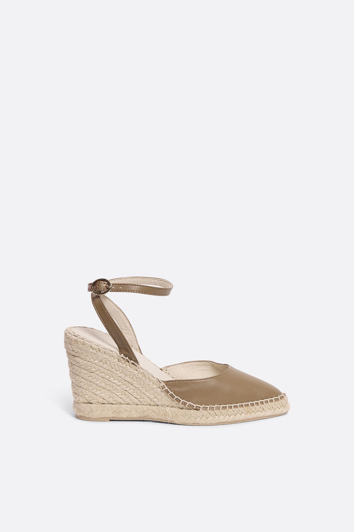 Alpargata de piel beige con cuña alta