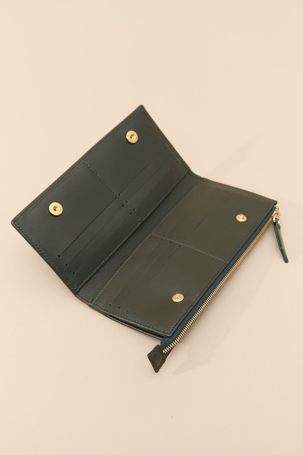 Hecha por artesanos españoles, siguiendo técnicas de tradición centenaria. Cartera de piel resistente, doble bolsillo con cremalleras doradas. Tiene varios compartimentos para tarjetas. Tiradores y lujados laterales al tono y logo grabado a fuego. Medidas: 12,5 x 17,5 cm.