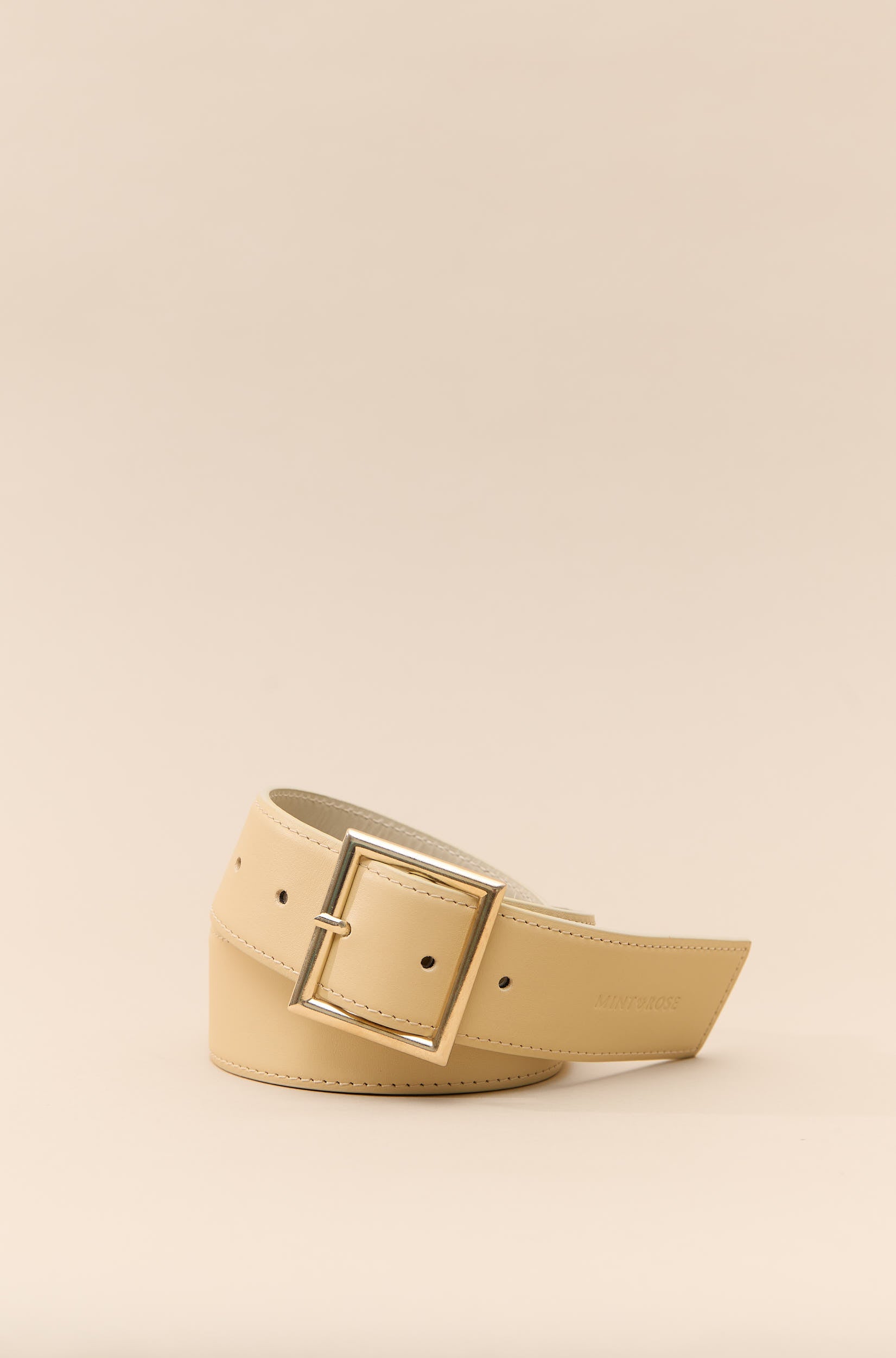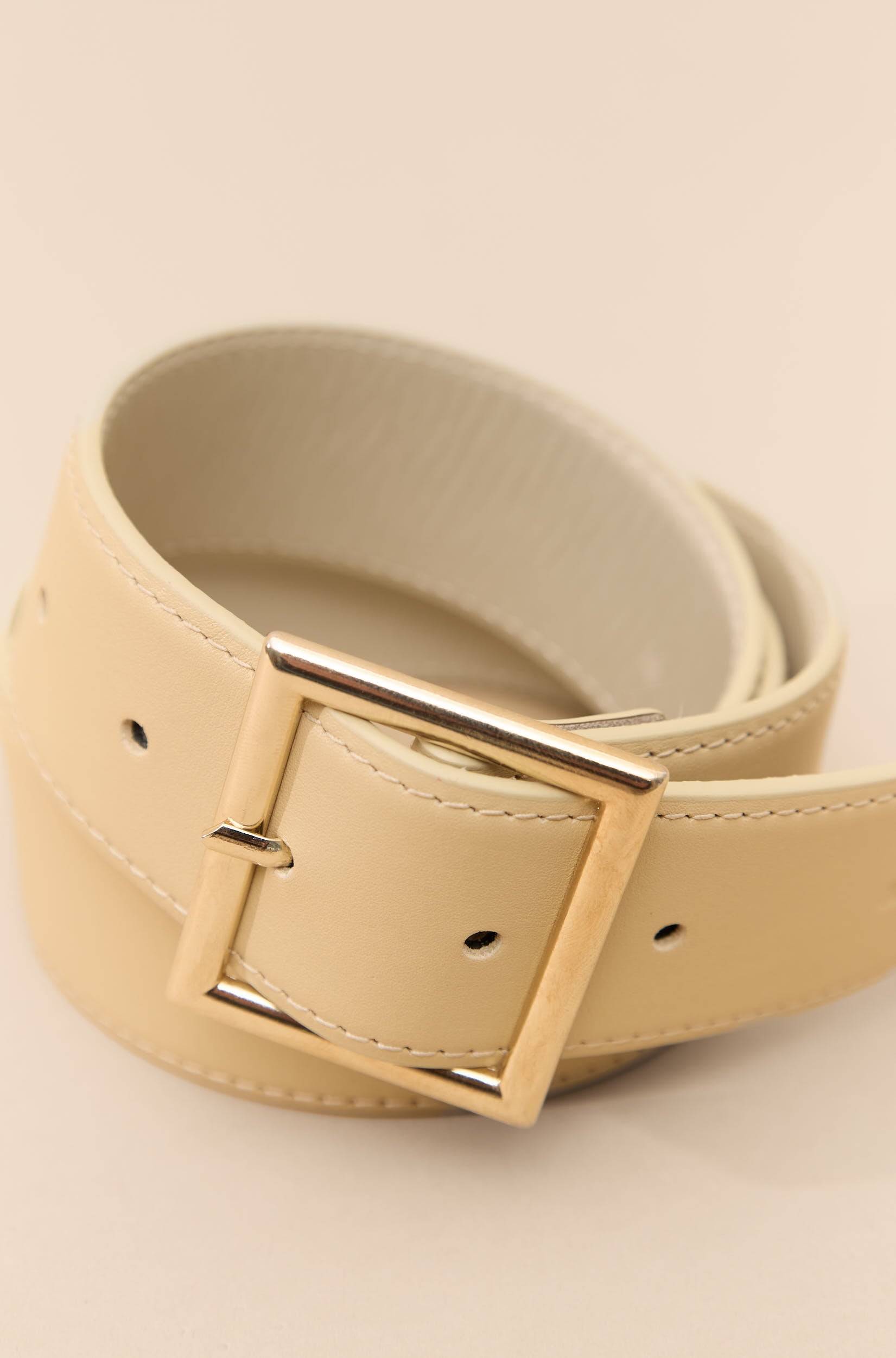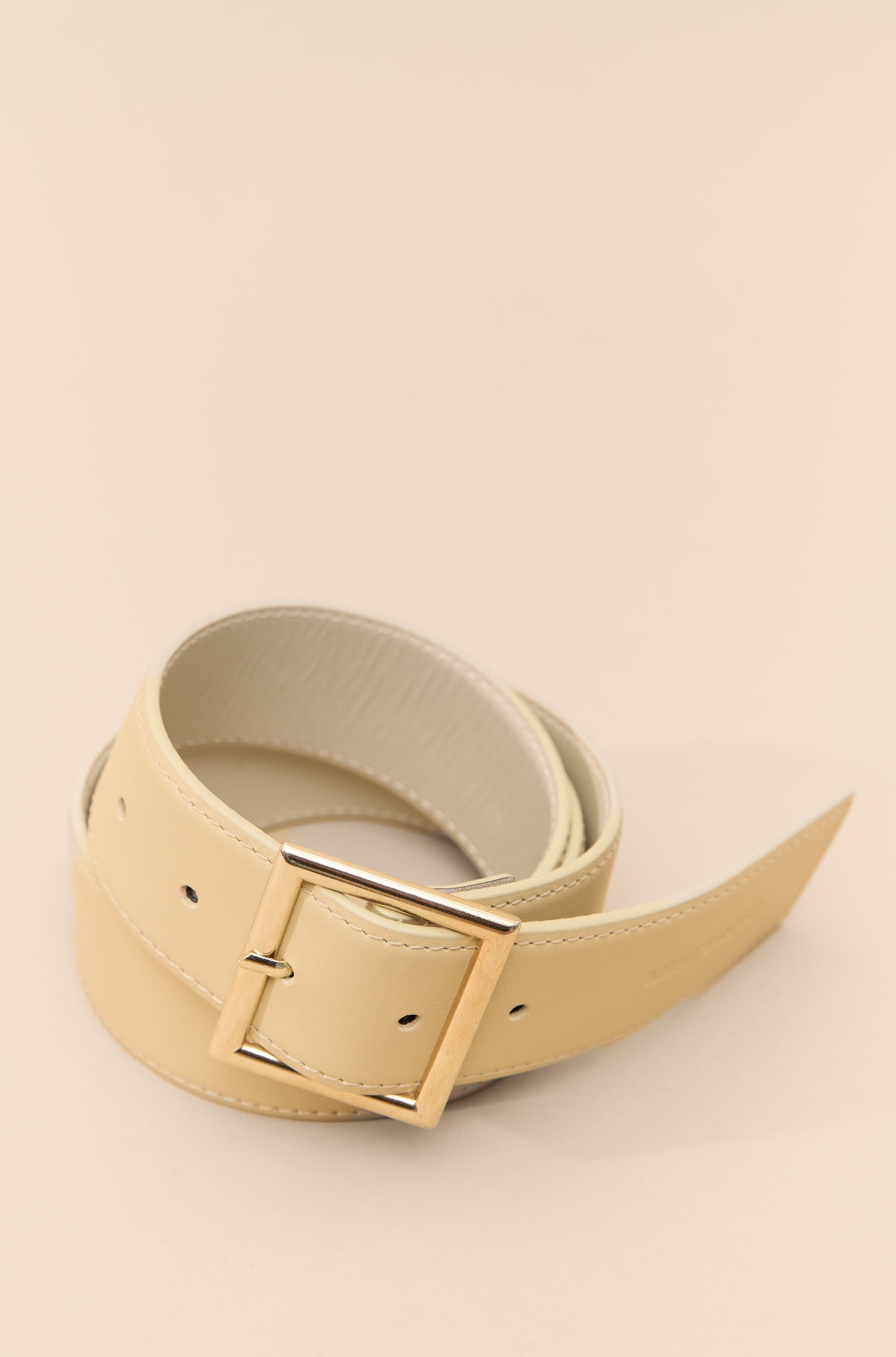 Cinturón de piel beige con hebilla dorada