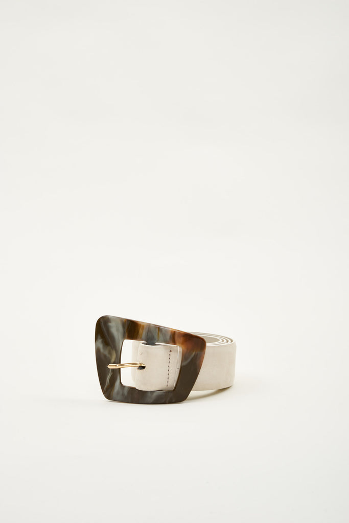 Cinturon ancho de piel blanca con hebilla efecto marmol