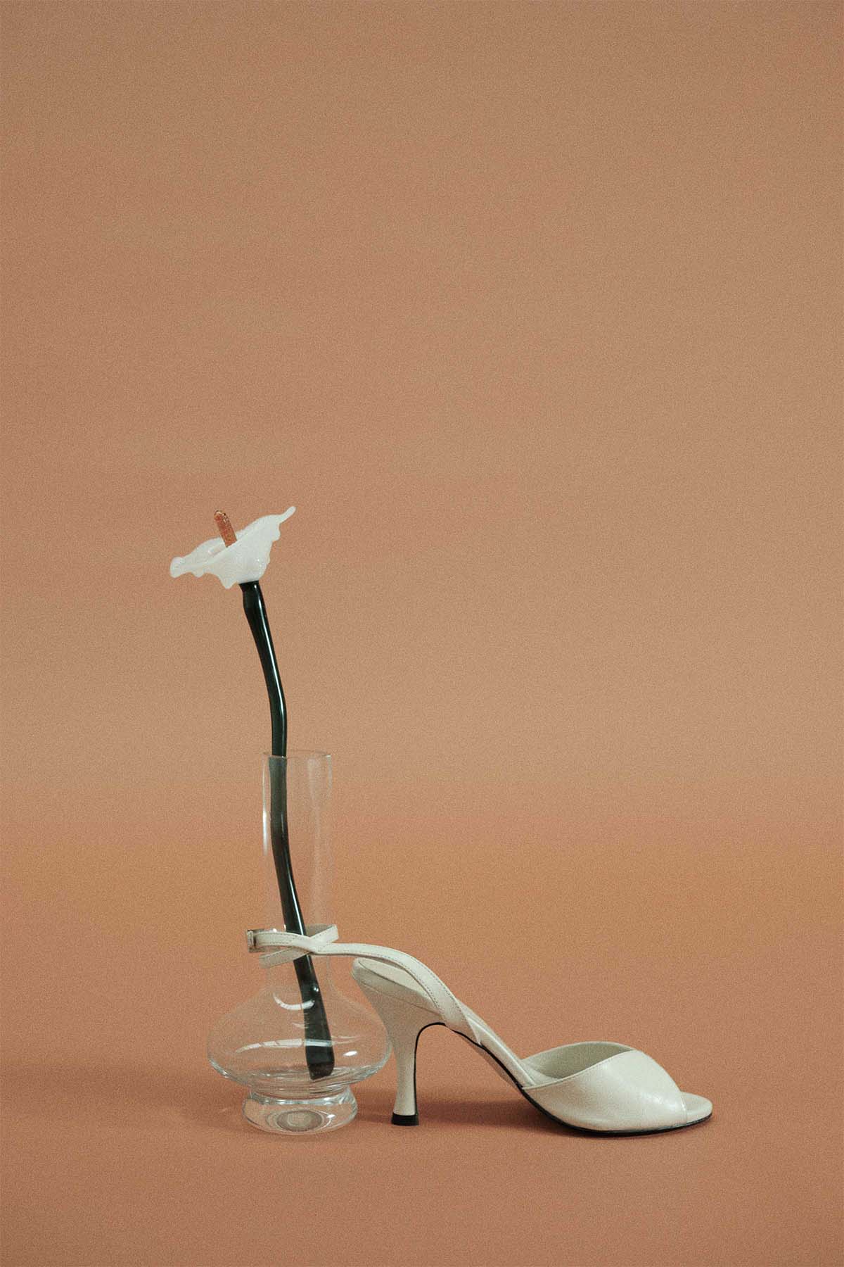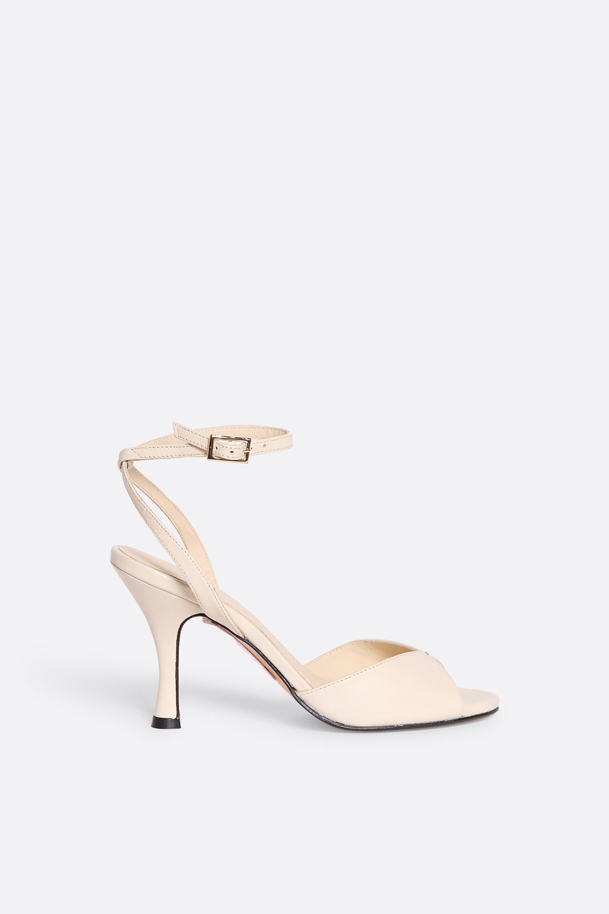 Sandalia de piel color crudo con tacón alto