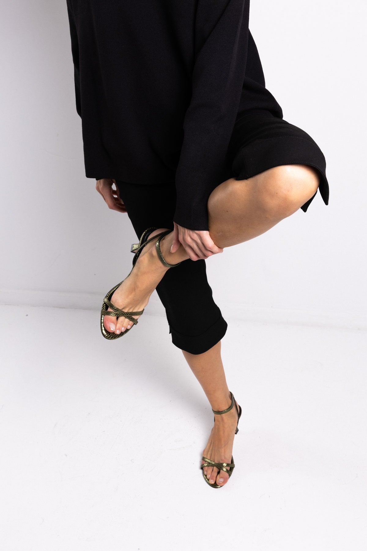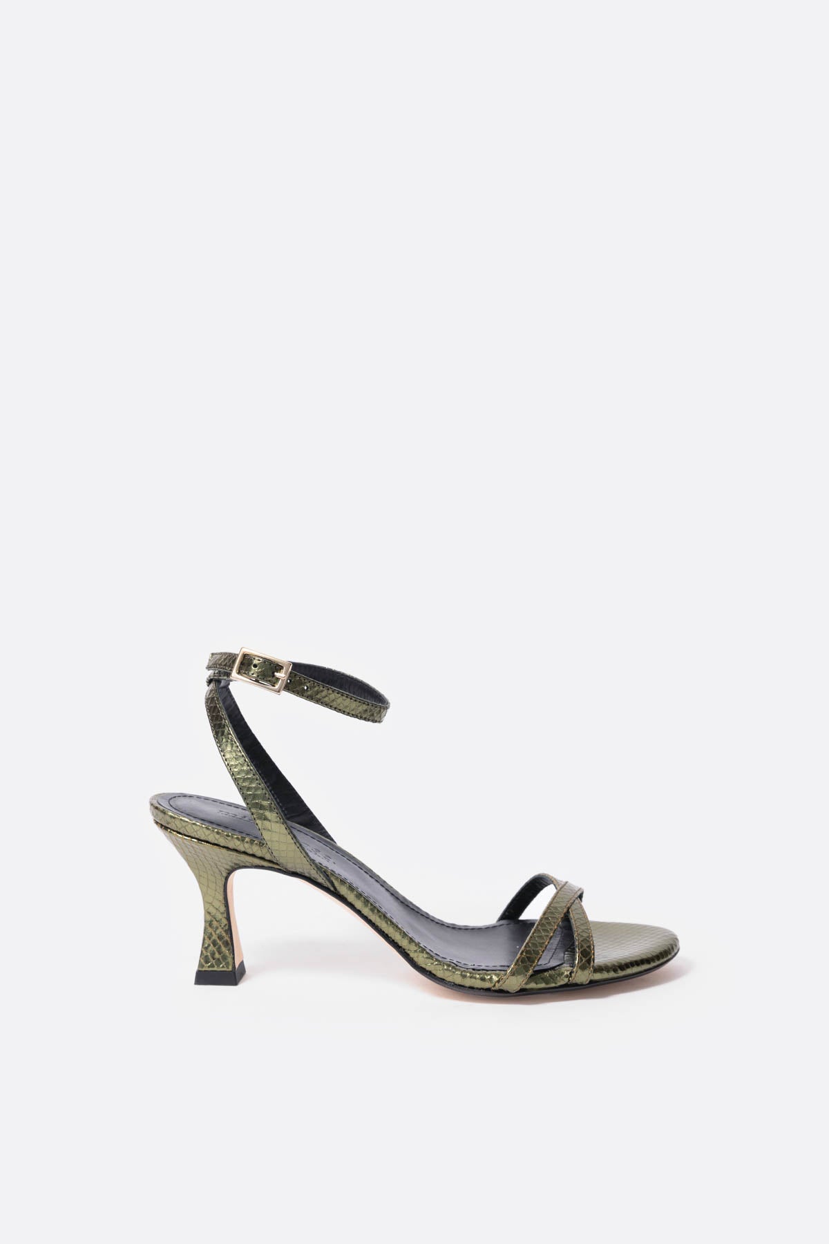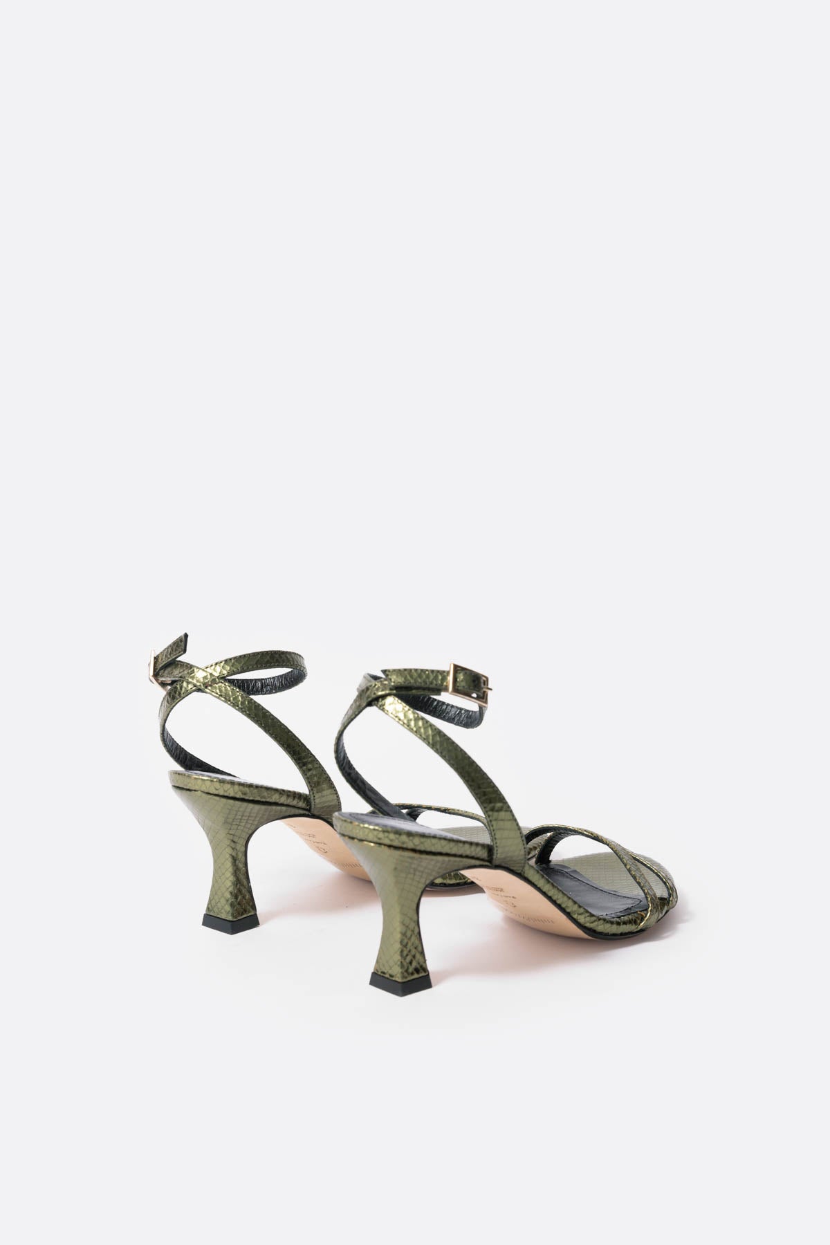 Sandalia baja en piel verde metalizada