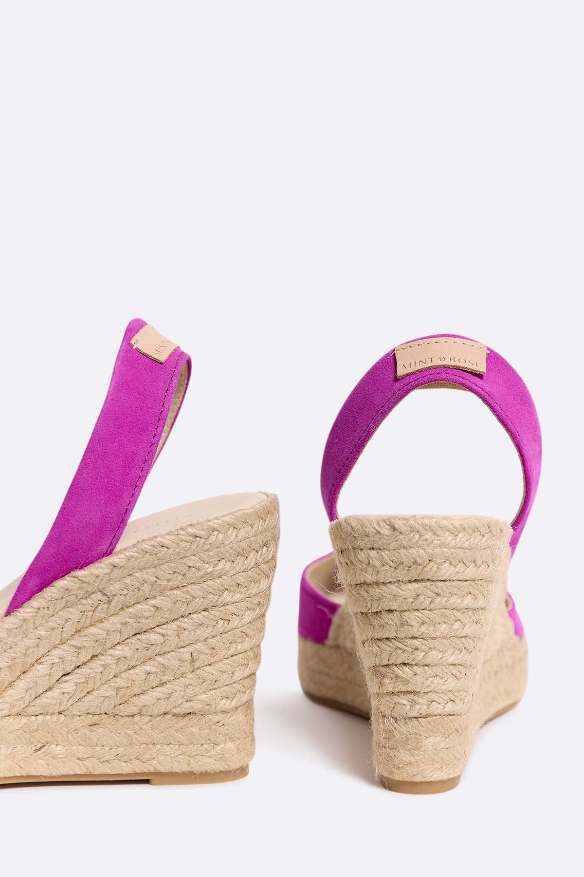 Lo que más nos gusta: la combinación del serraje rosa fucsia con el yute.