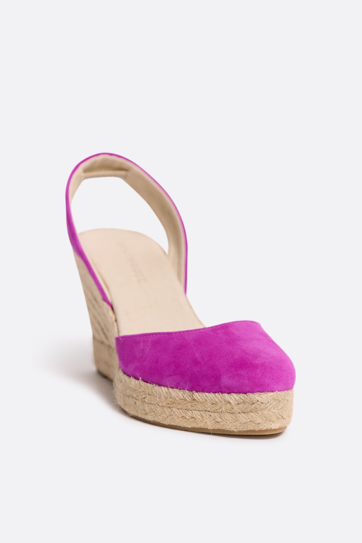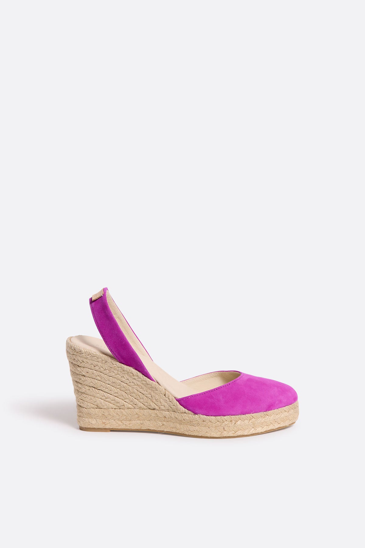 Alpargata de serraje fucsia con cuña media